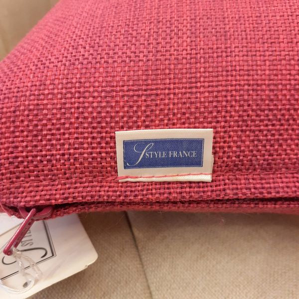 赤ワインの様なフランスの赤い色のシンプルでお洒落な生地のクッションカバー。