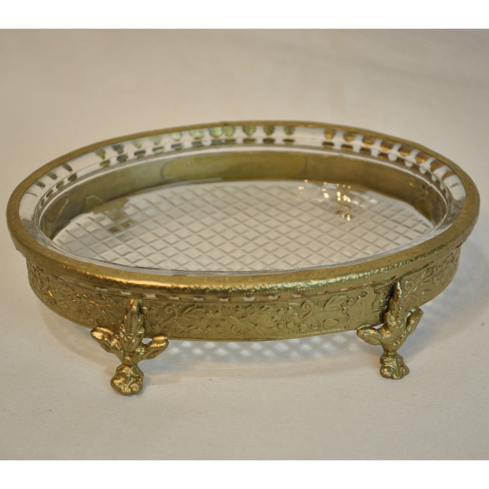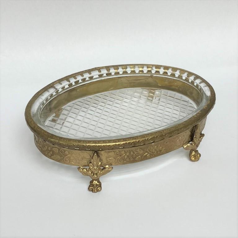 ソープディッシュ 石鹸置き グラスボウル 真鍮製 トレイ ガラストレイ 小物入れ アンティーク風ガラス器 真鍮雑貨 7347065