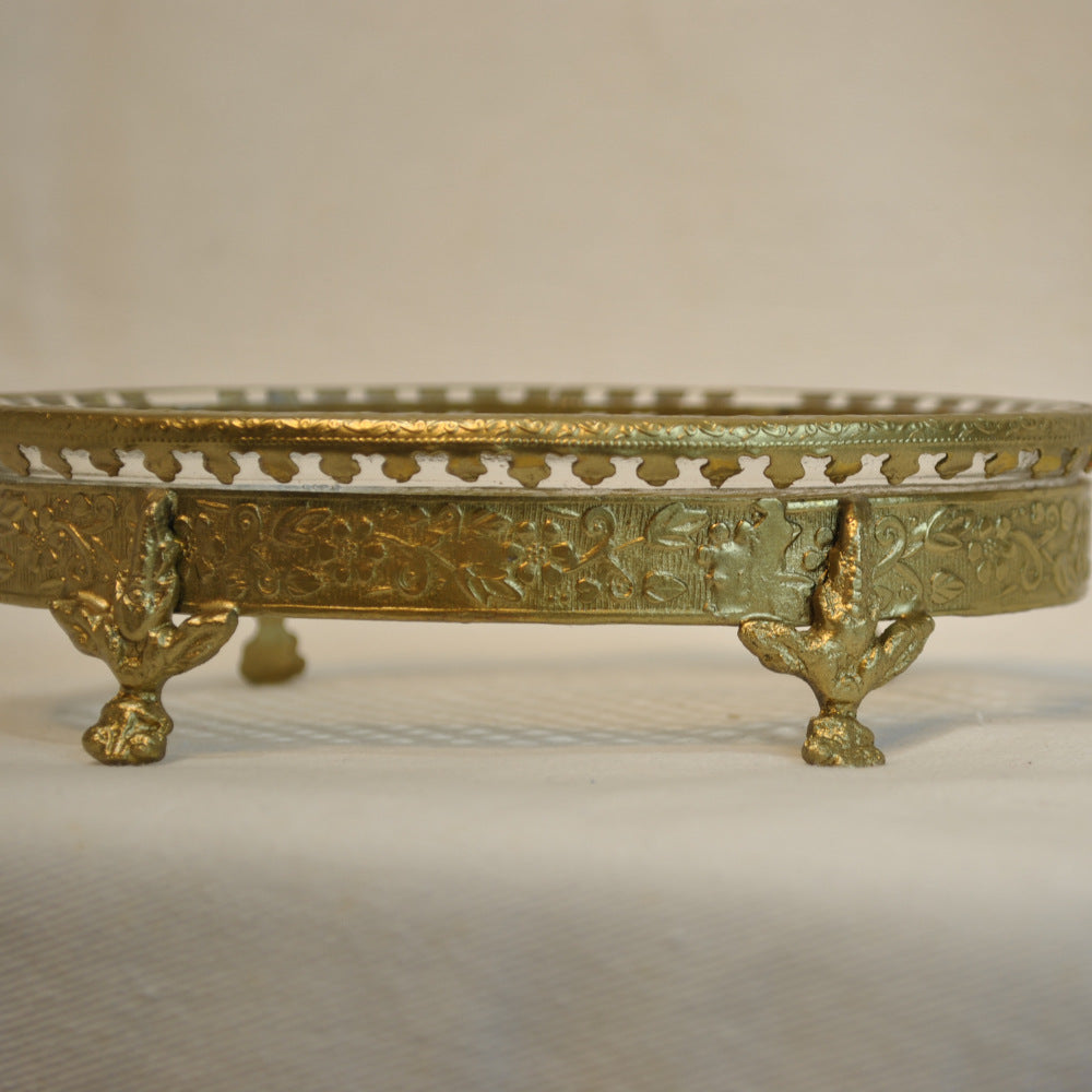 真鍮製のベースにガラストレイを埋め込ませた高級感のある小物入れです。