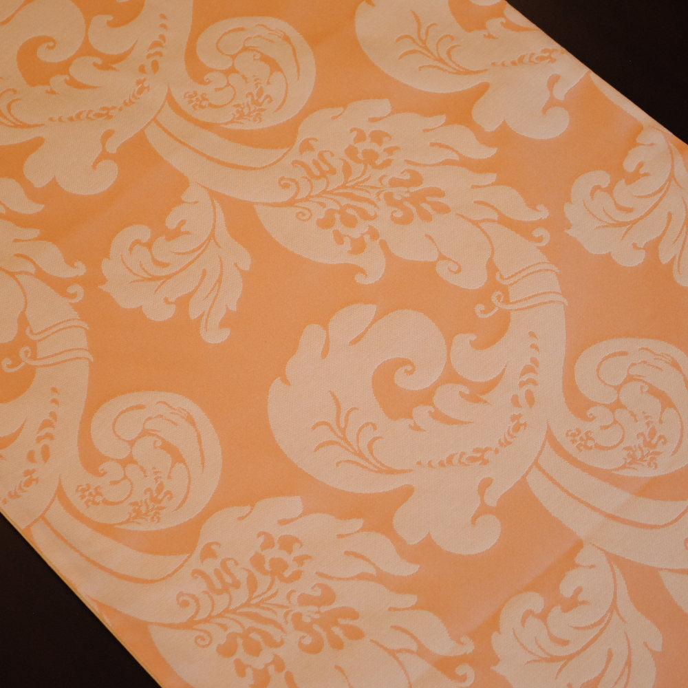フランスの老舗ヴァン・ラテム社のデザインにより、古典的なダマスク柄をピンクカラーで織り上げられた特殊な光沢のある上品なフランス製生地を使用して、国際的に定評のある京都で縫製してあります。