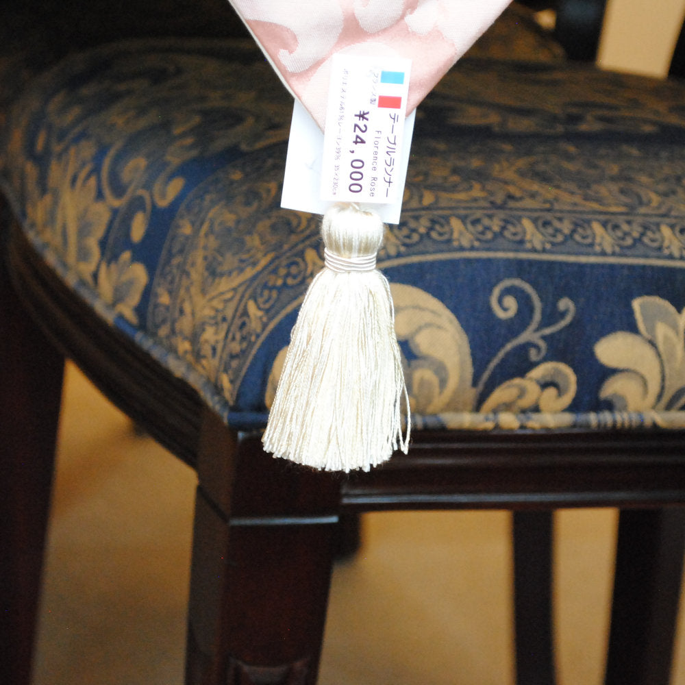 テーブルライナーの両端にはヴァン・ラテム社が作るフランス製タッセルがパスモントリーされています。