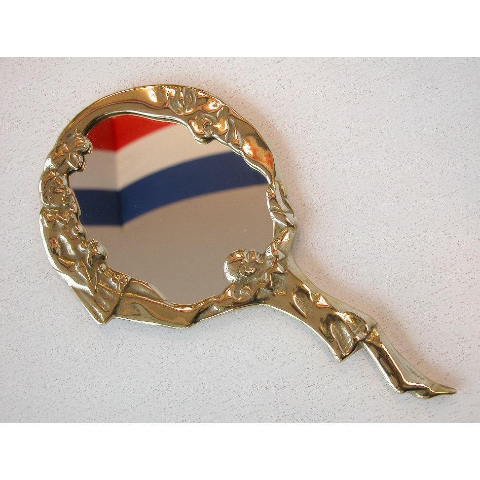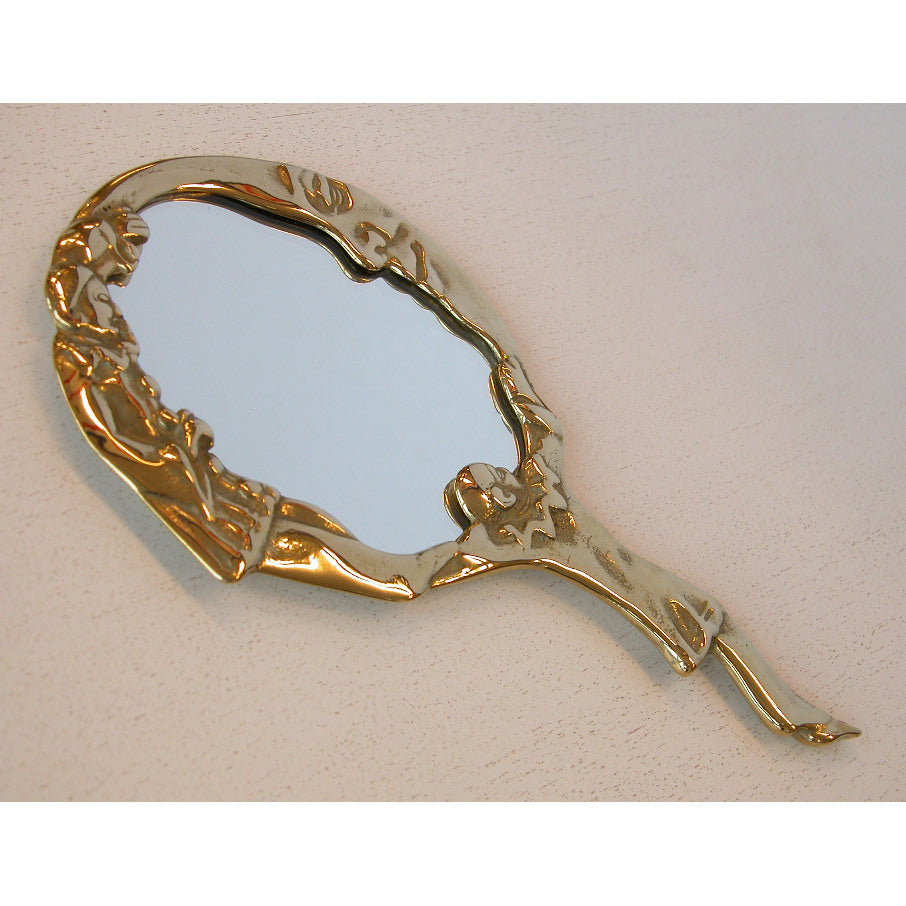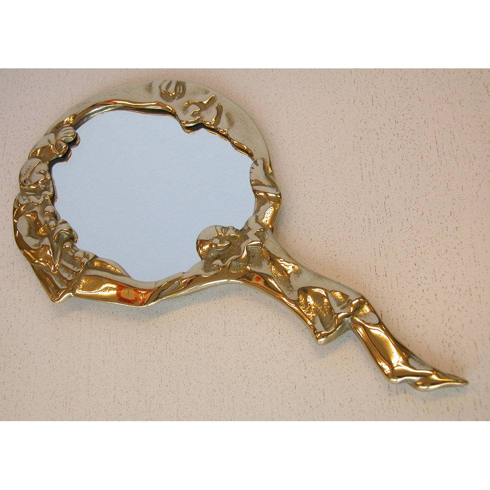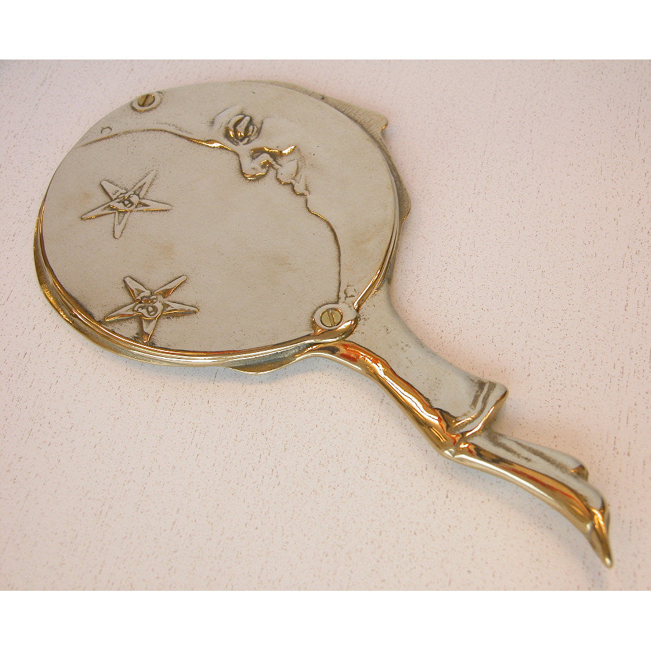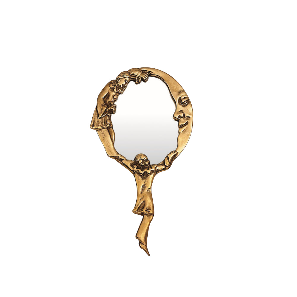ピエロと月と星がデザインされた美しい真鍮製のハンドミラー(手鏡)です。