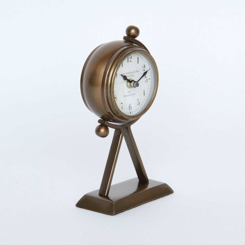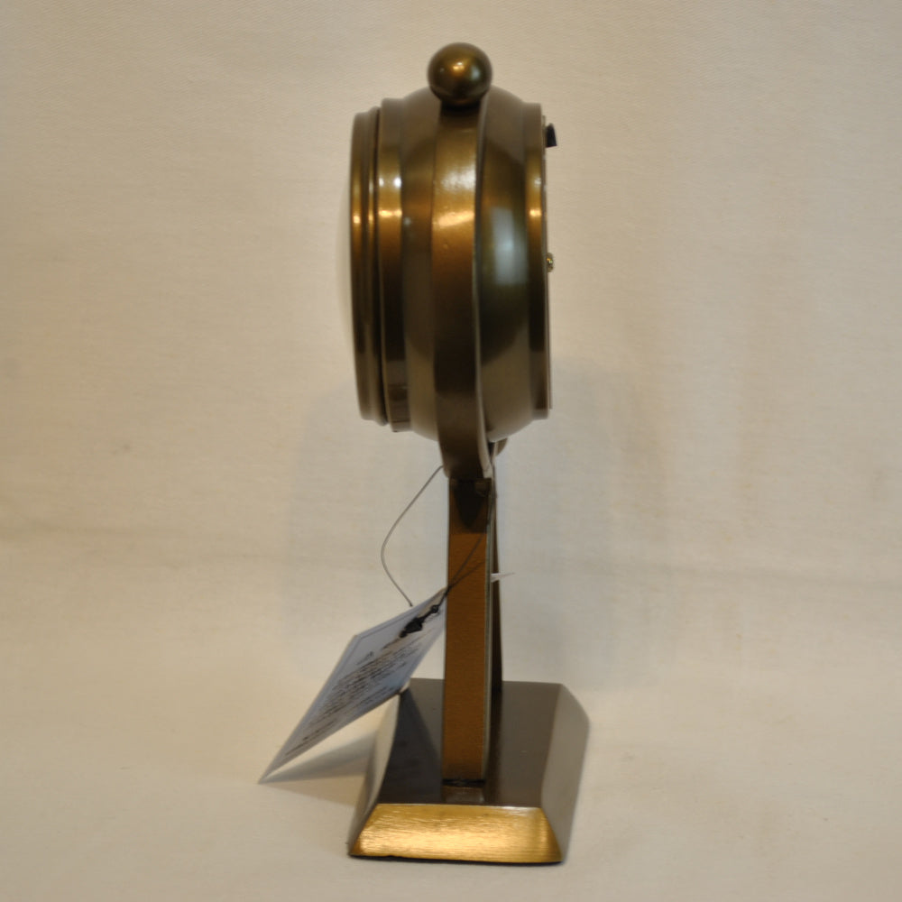 レトロティックな雰囲気漂うアンティーク調の時計、落ち着いたブロンズ色に輝くおしゃれなテーブルクロック(置時計)です。