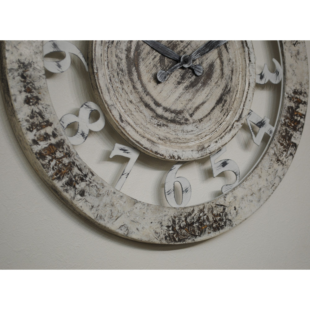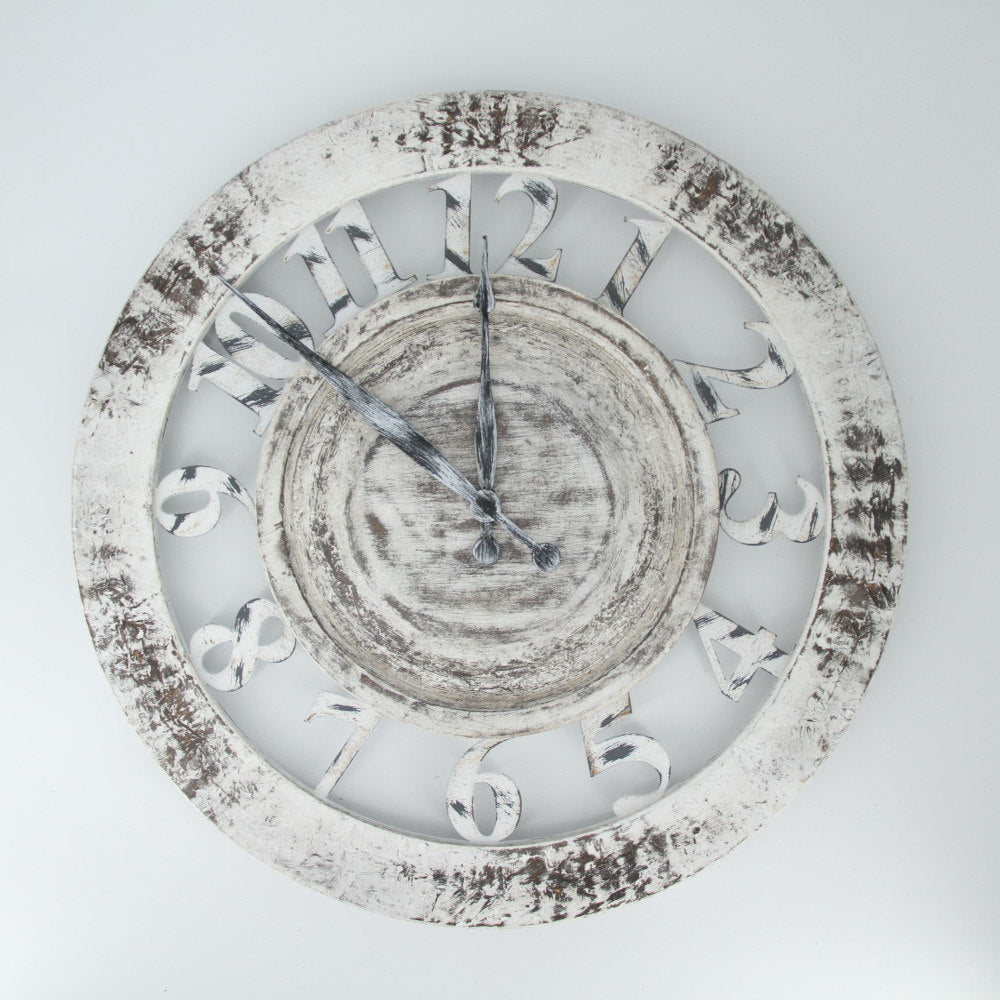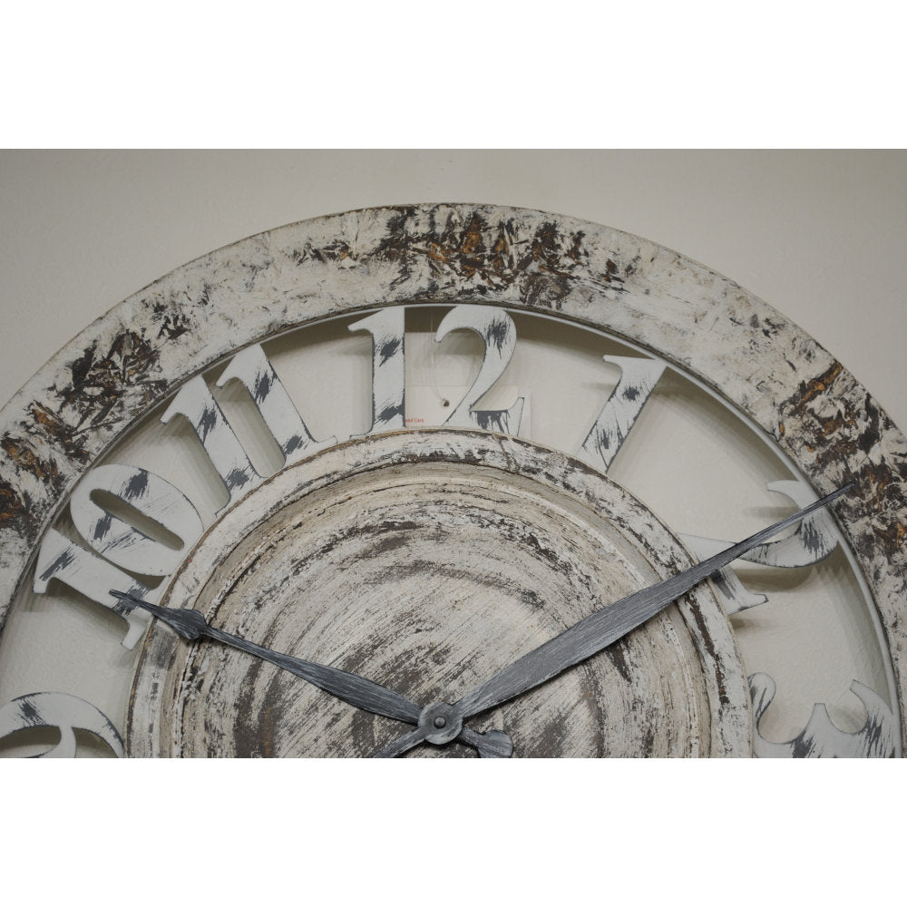アンティークホワイトのシャビーシックなアイアン製掛け時計です。