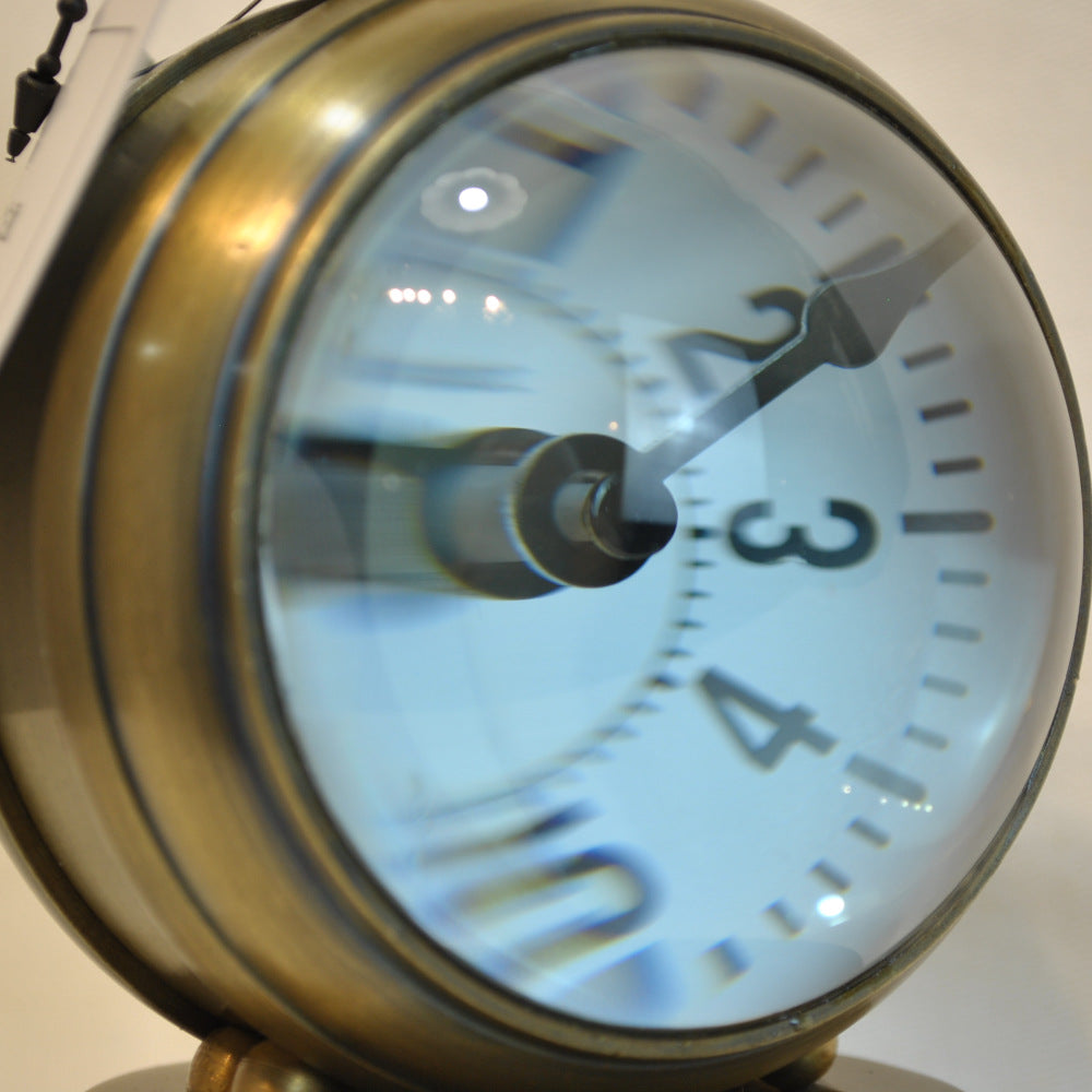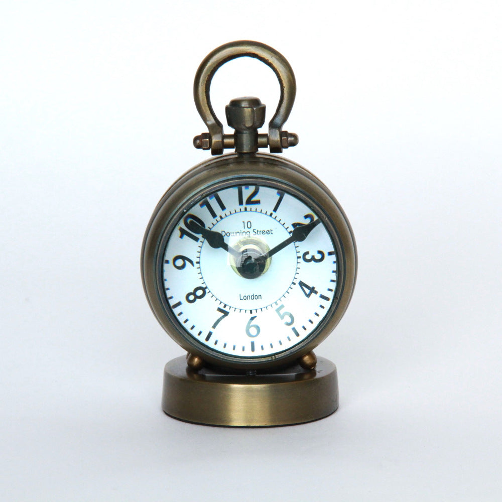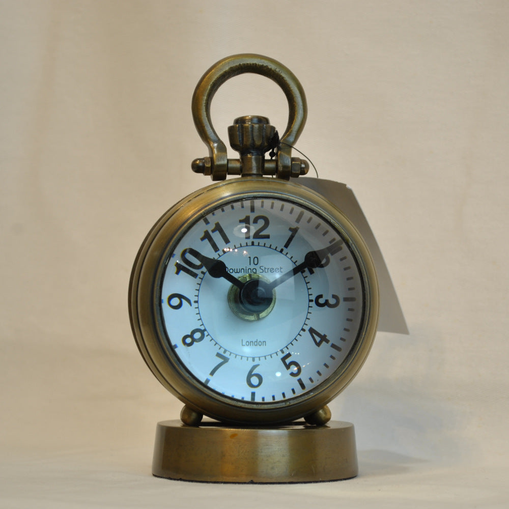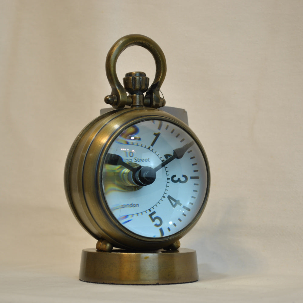実はフランスで始まった「インダストリアルインテリア」スタイルで登場して人気を博したテーブルクロックの再入荷アイテムです。真鍮製の本体に球型レンズと特徴的デザイン装飾が奇をてらうこだわりの逸品です。