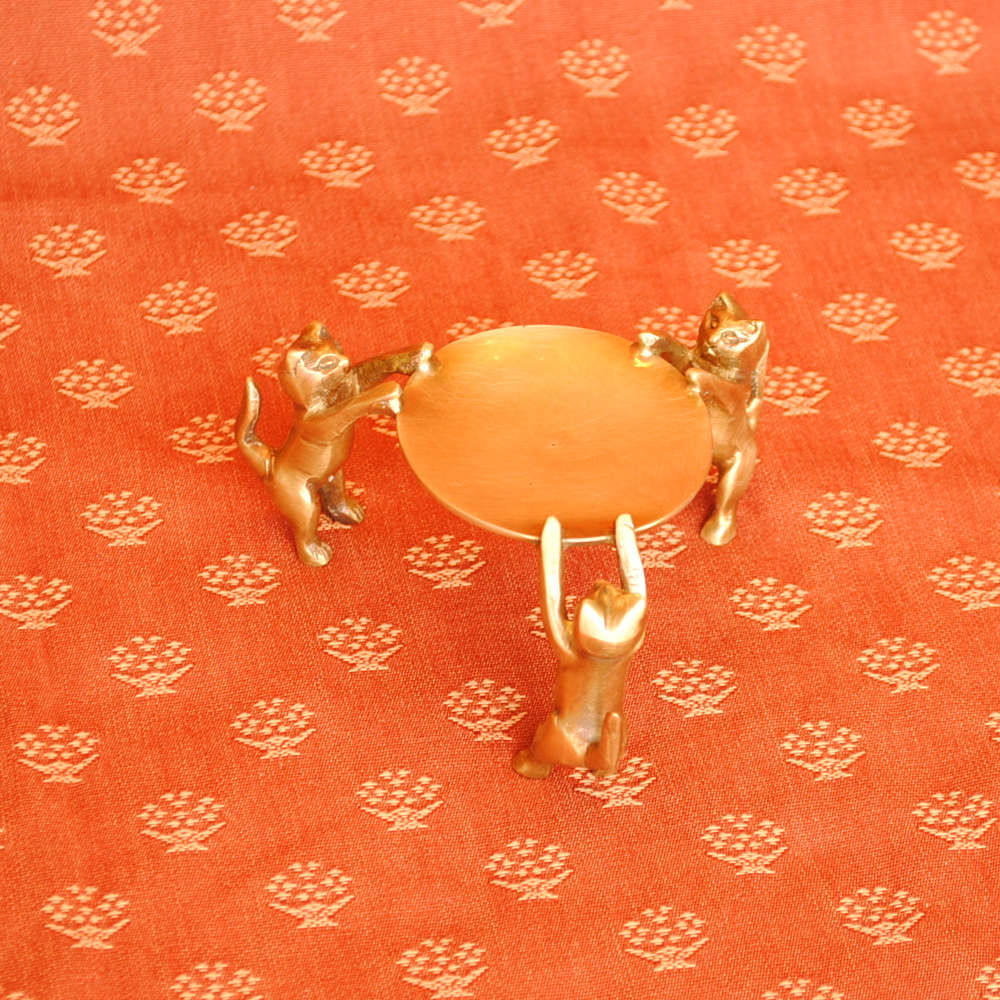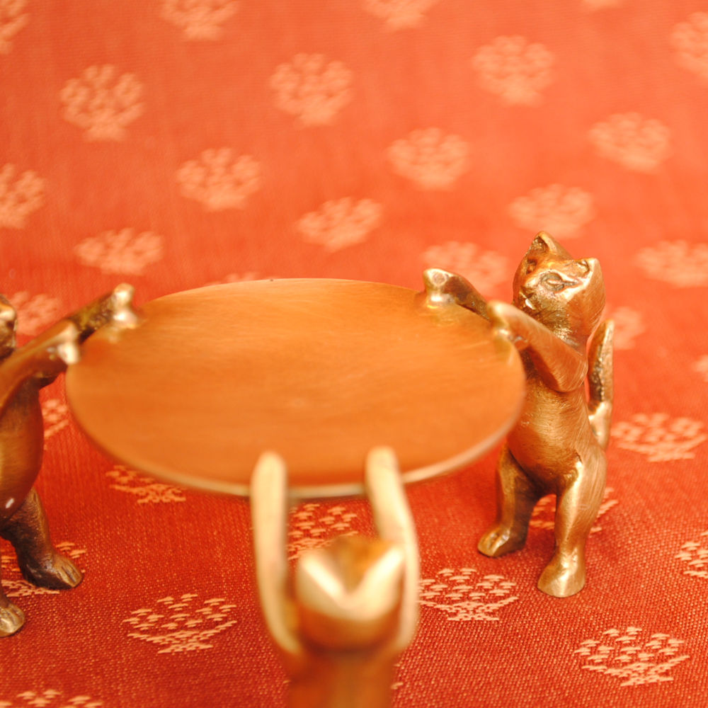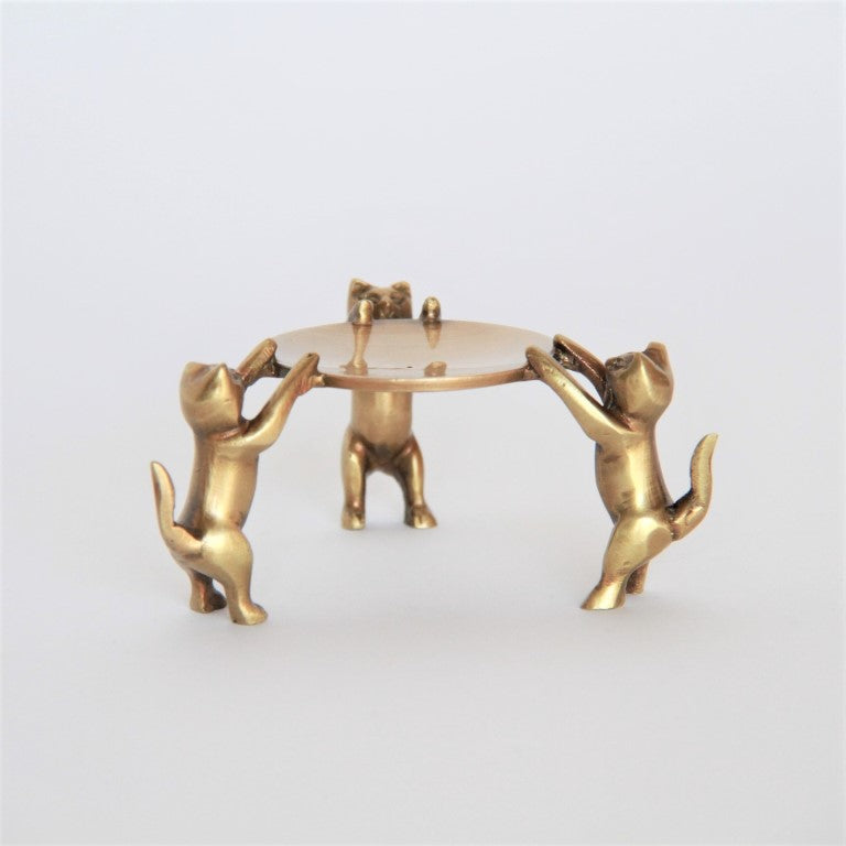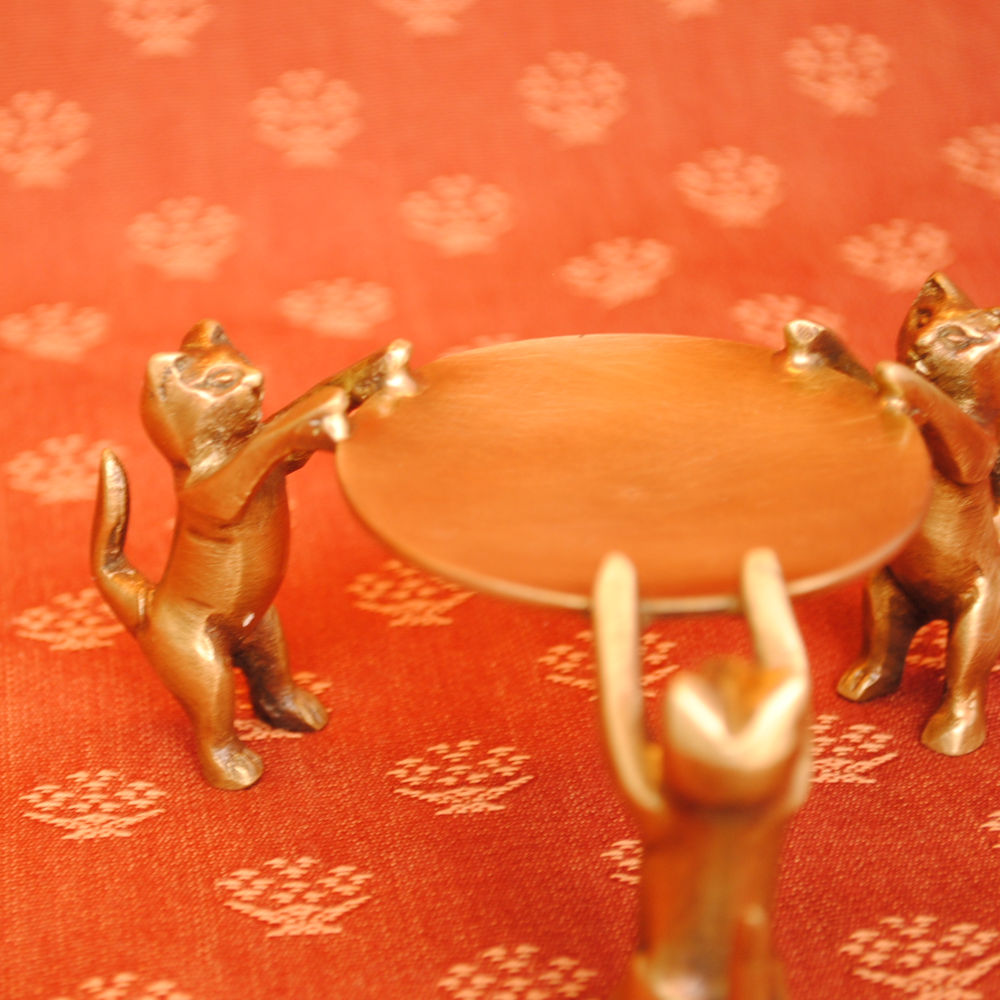 三匹の猫が捧げ持つお皿に指輪やピアスを置いたりするものですが、高級な素材の真鍮製なのでお部屋のオブジェとしてのインテリアにも最適です。