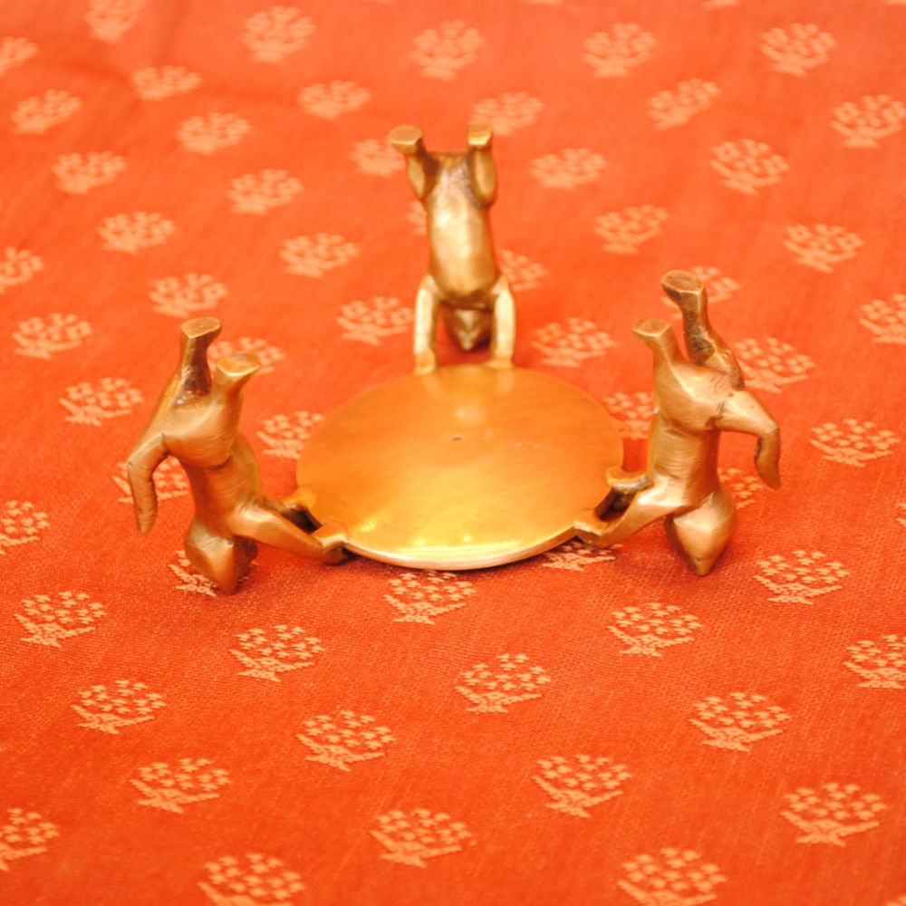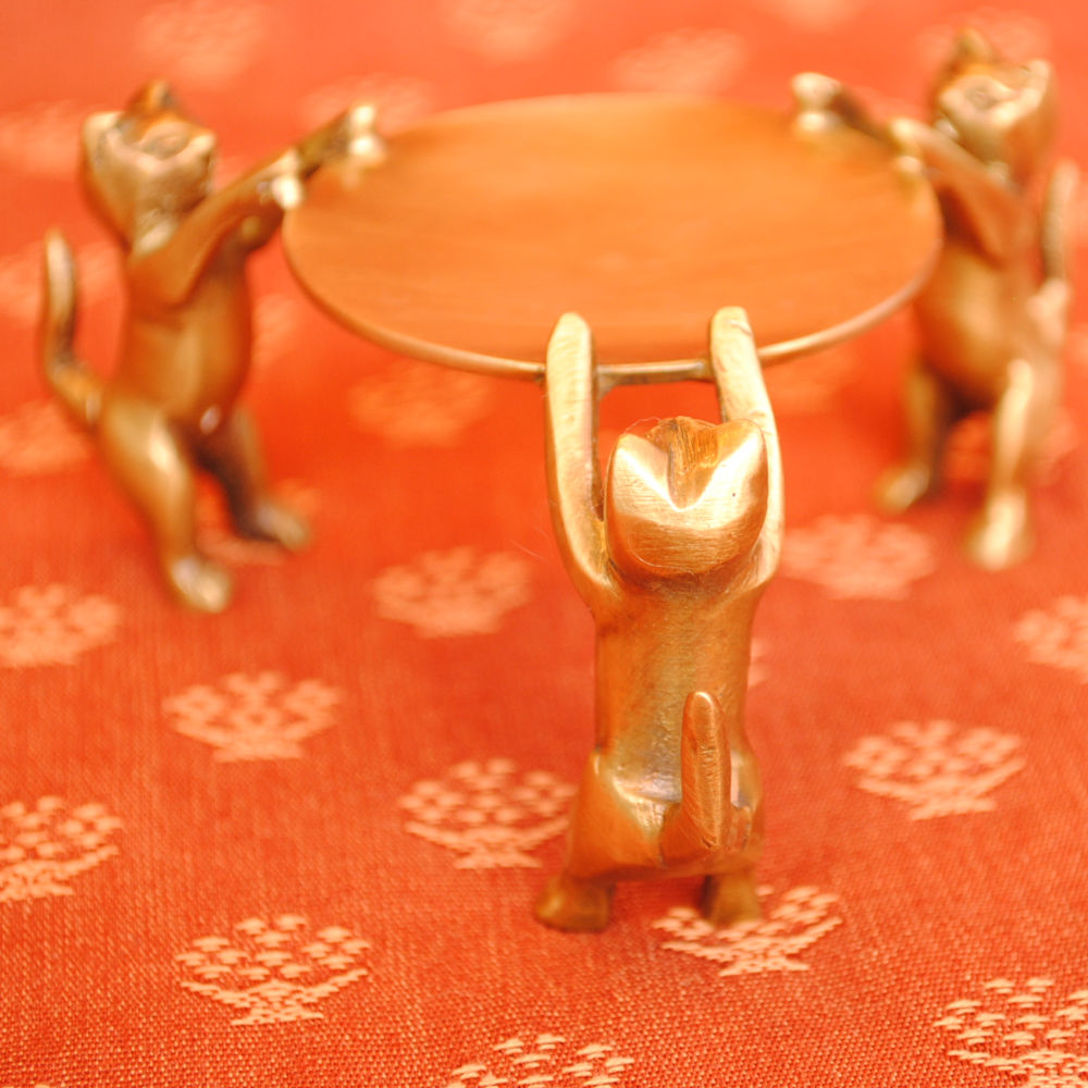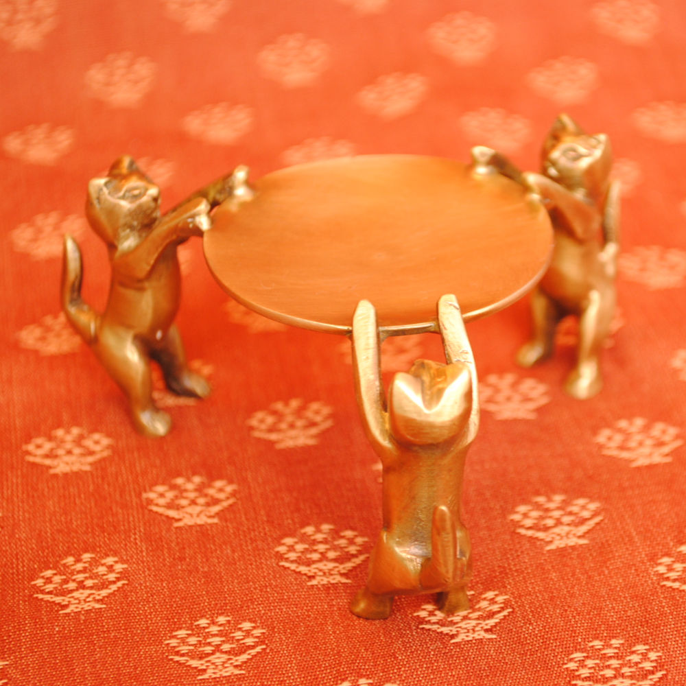 三匹の猫が捧げ持つお皿に指輪やピアスを置いたりするものですが、高級な素材の真鍮製なのでお部屋のオブジェとしてのインテリアにも最適です。
