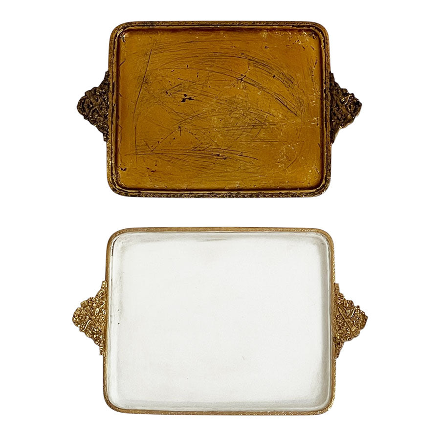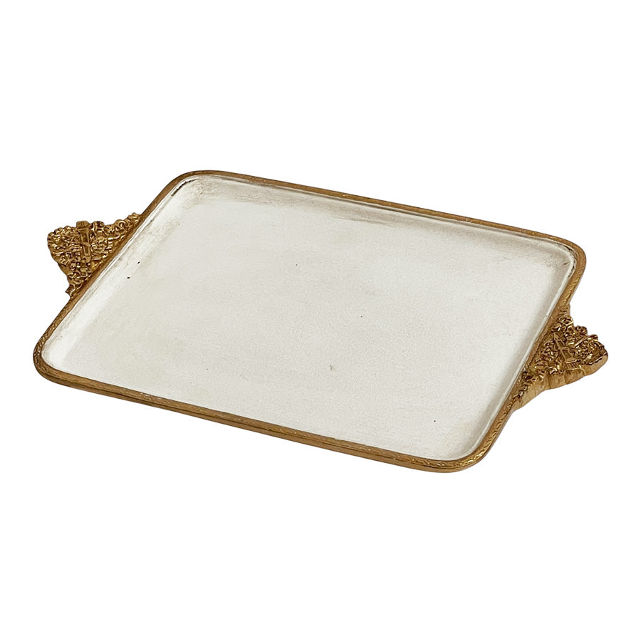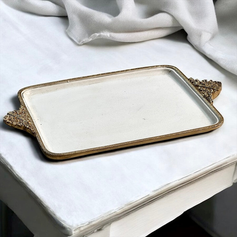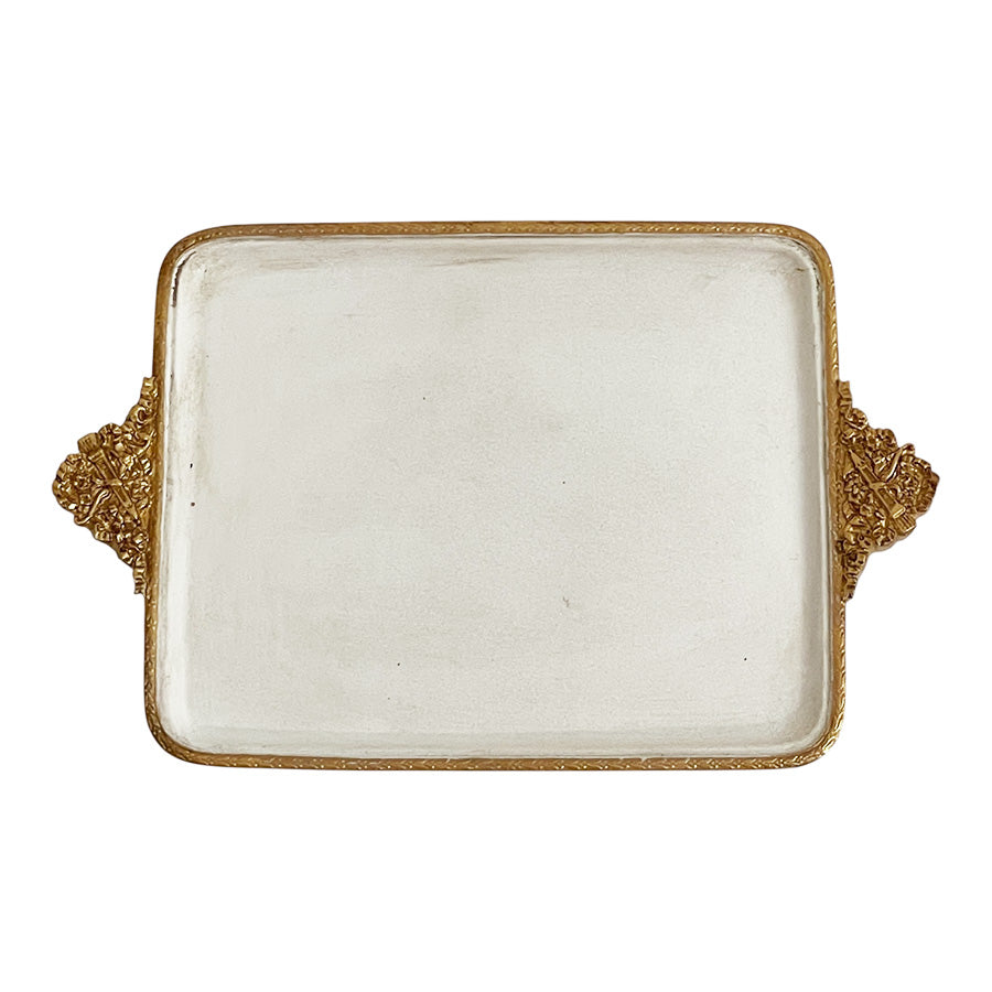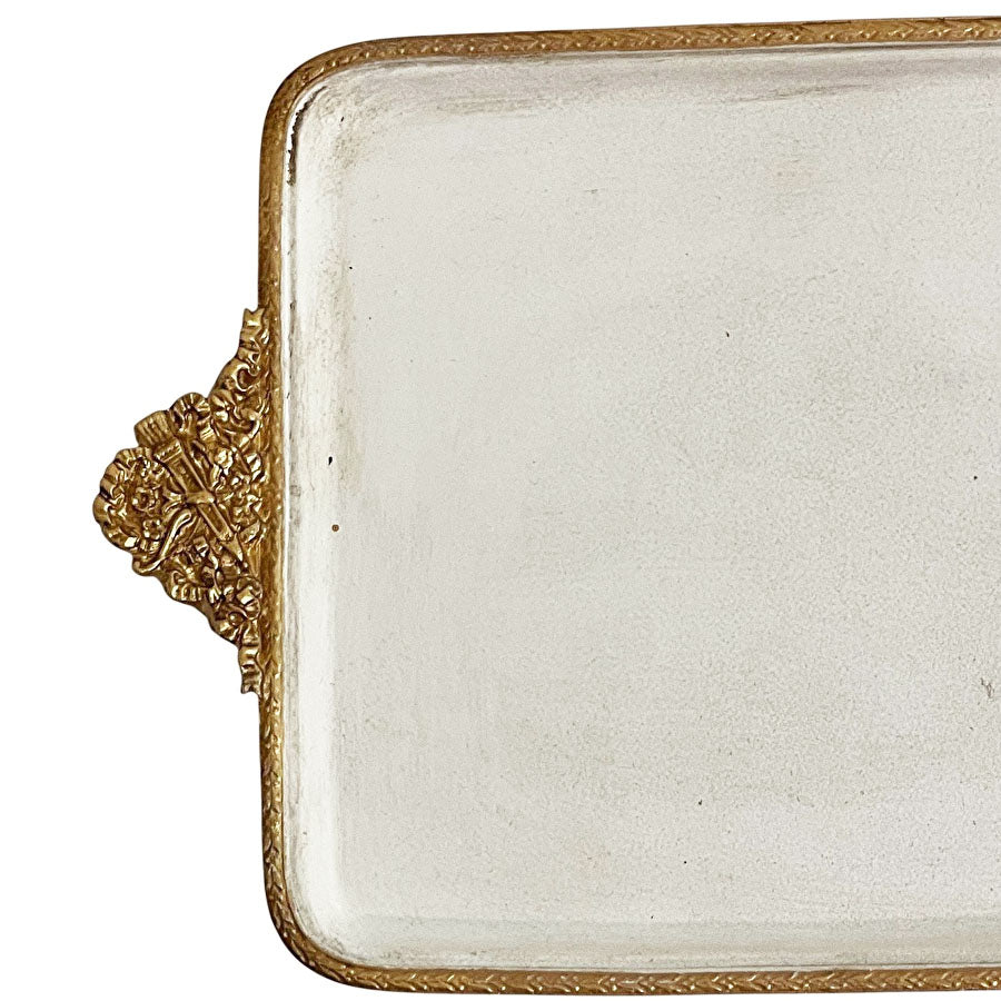 取っ手に細かいレリーフが施されたアンティーク風に仕上げられたトレイです。