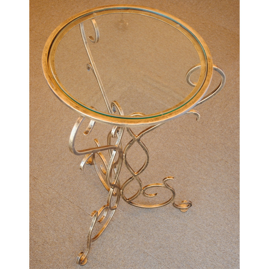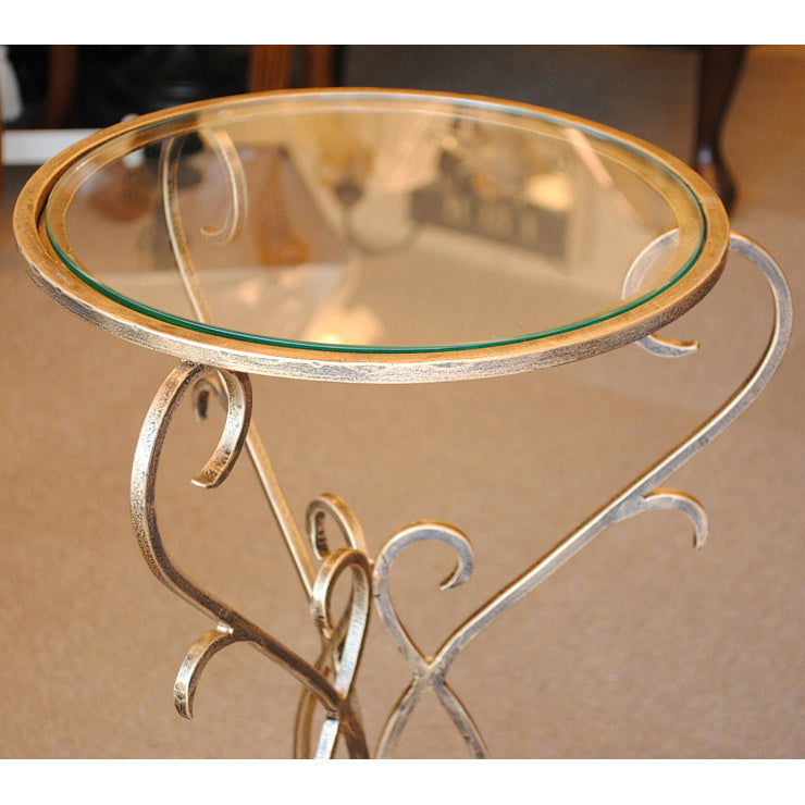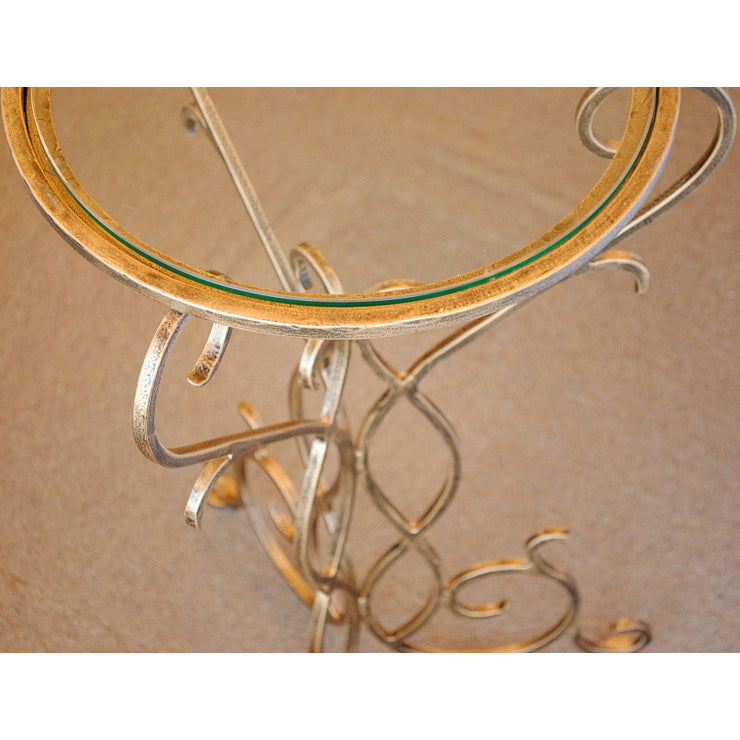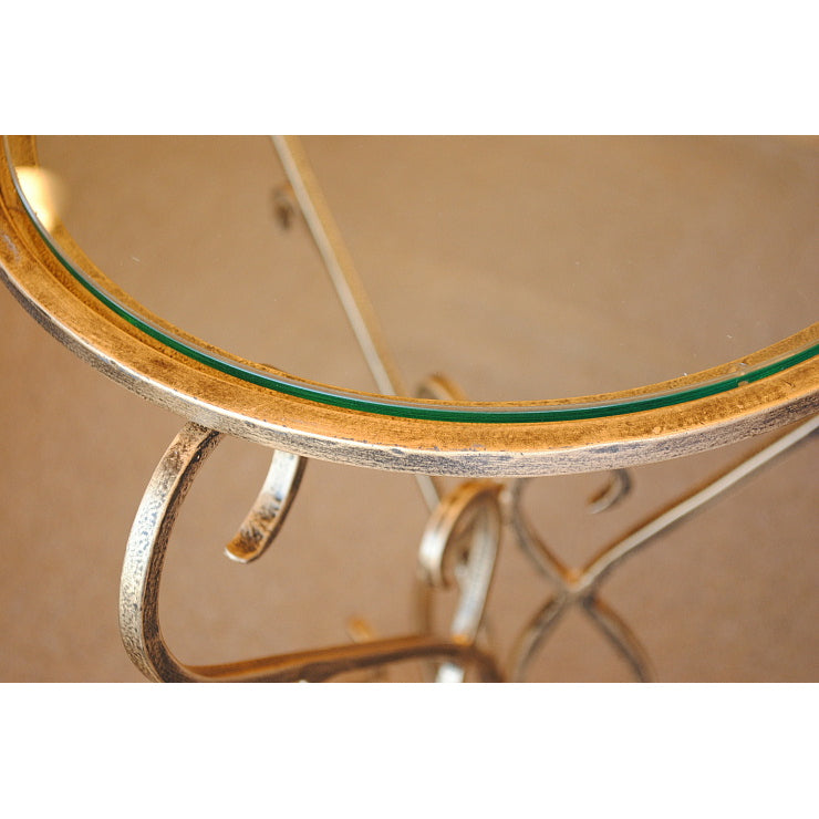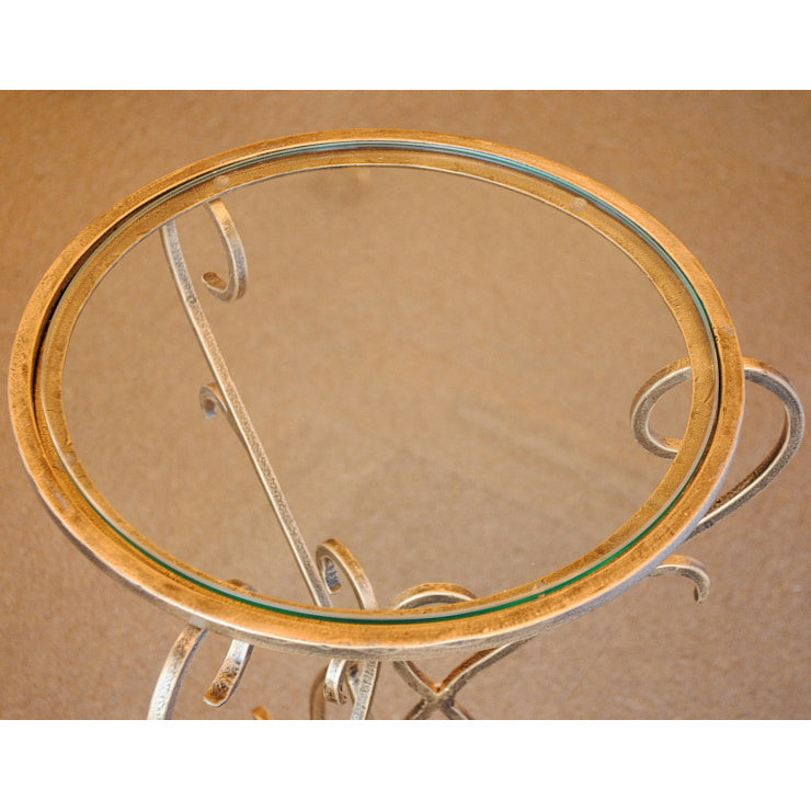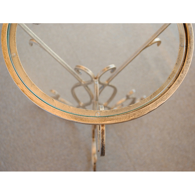 アクセントテーブル エンドテーブル ランプテーブル サイドテーブル ガラス天板 ラウンドテーブル 丸テーブル アイアン 7135001