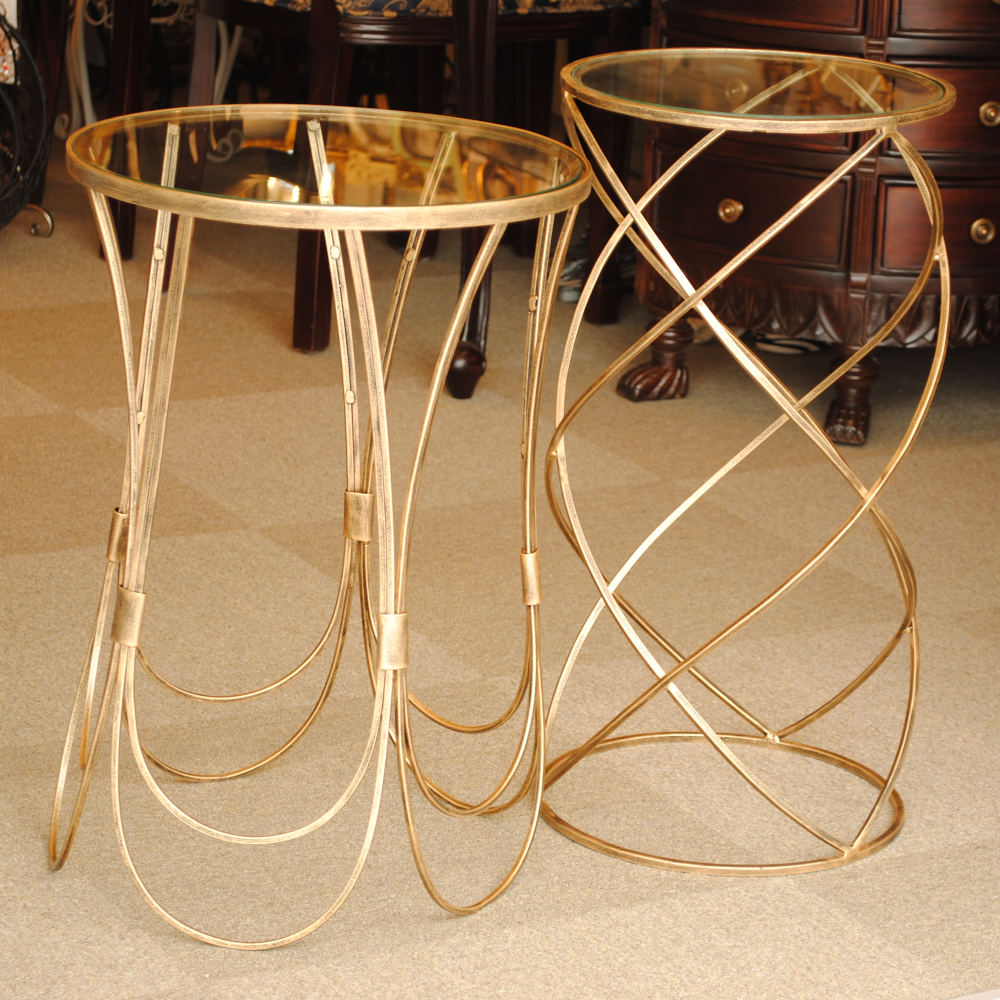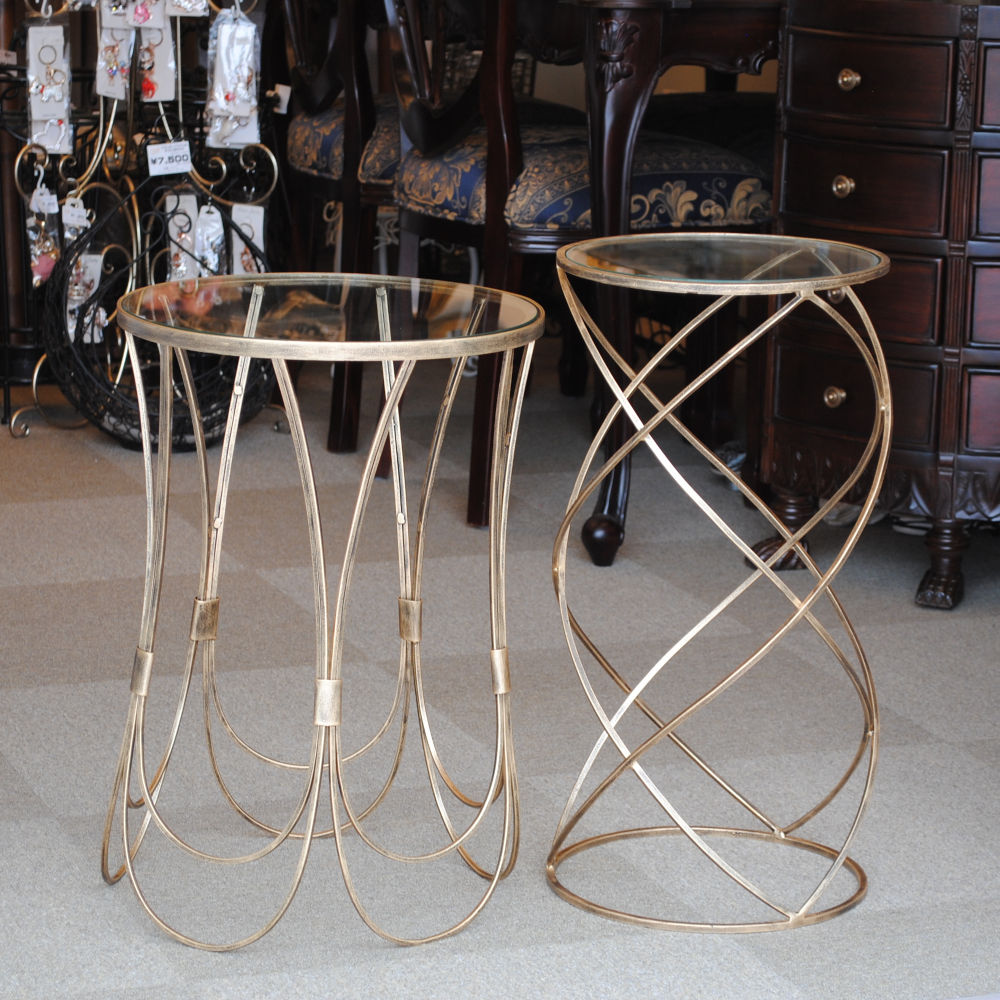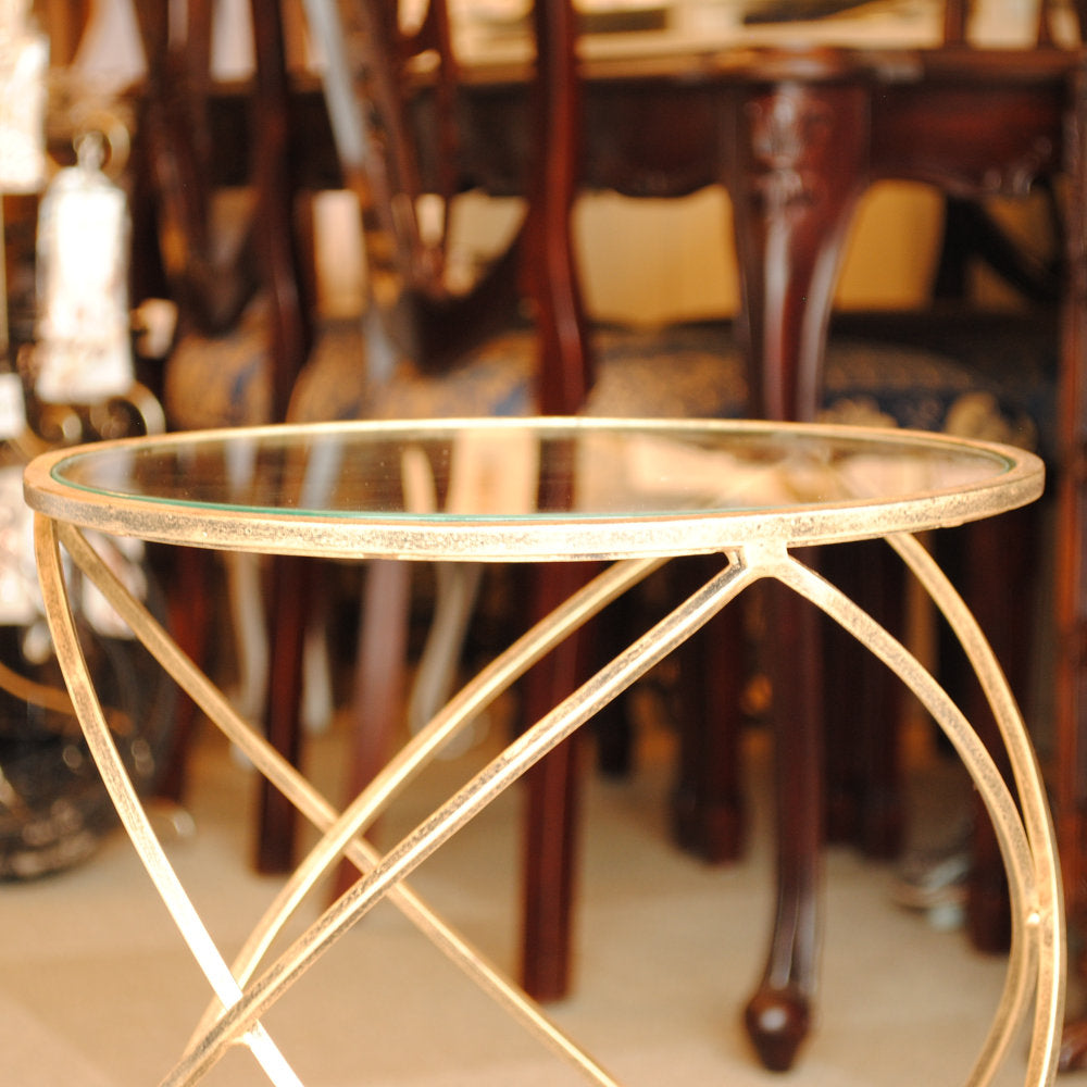 アクセントテーブル コーヒーテーブル アイアン アンティークゴールド ガラストップ メトロポリタンスタイル 7135004