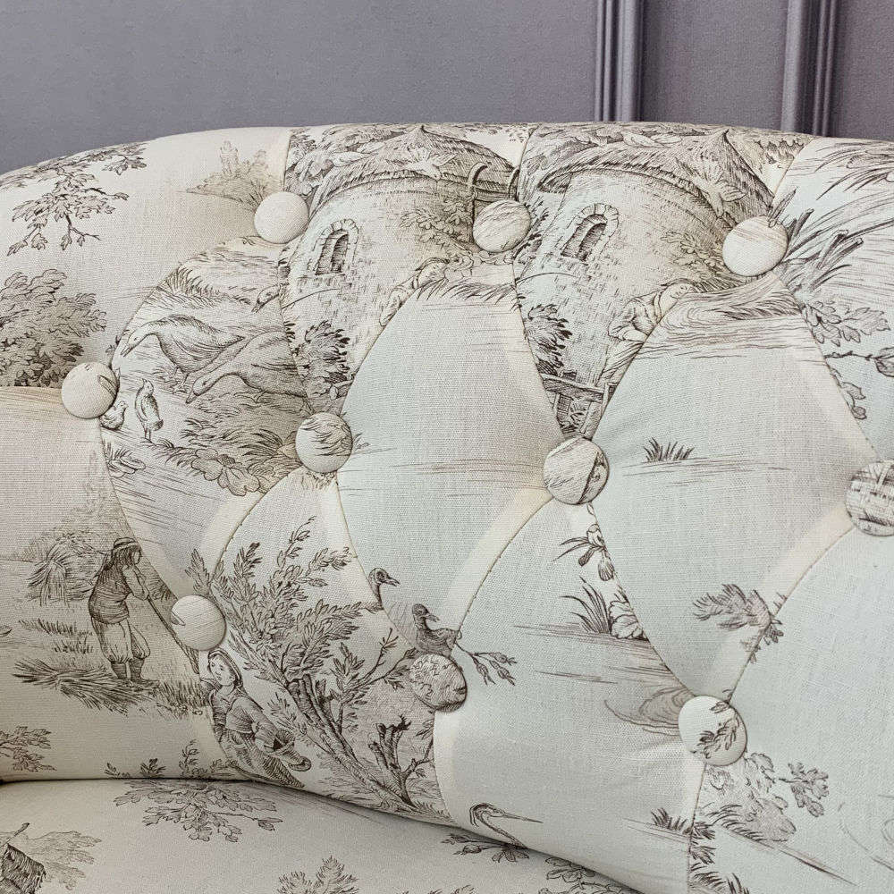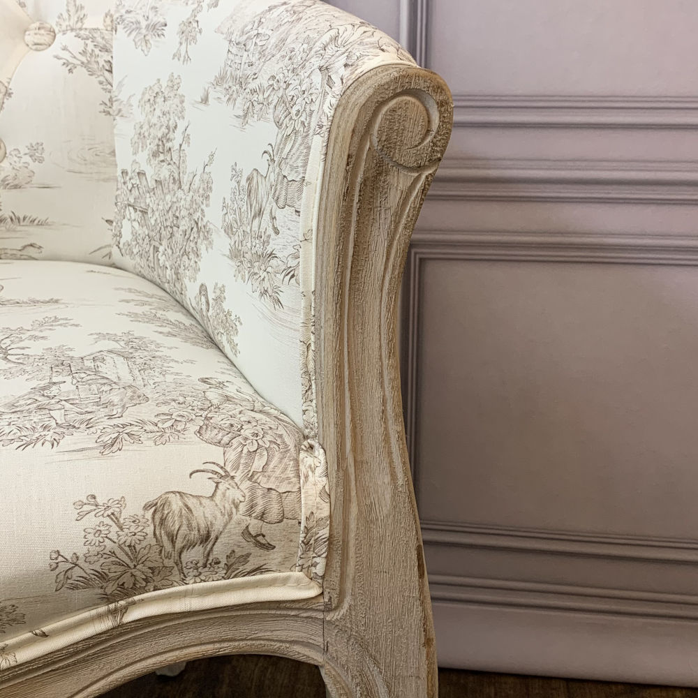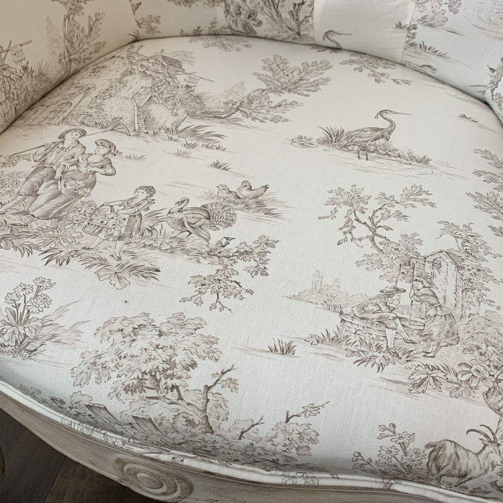 こちらは猫脚が素敵なフレームに田園風景で暮らす日常の人々を描いた素敵なトワル・ド・ジュイのフランス製生地が張り込められています。