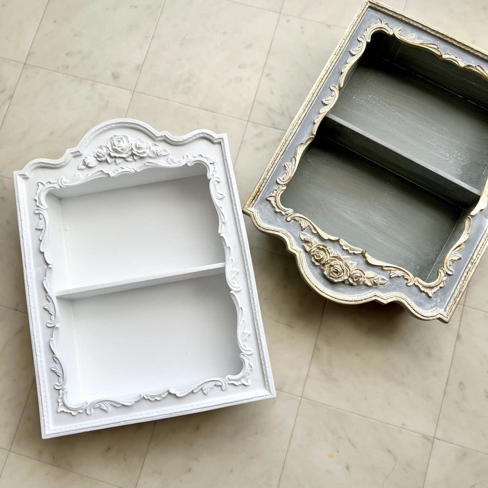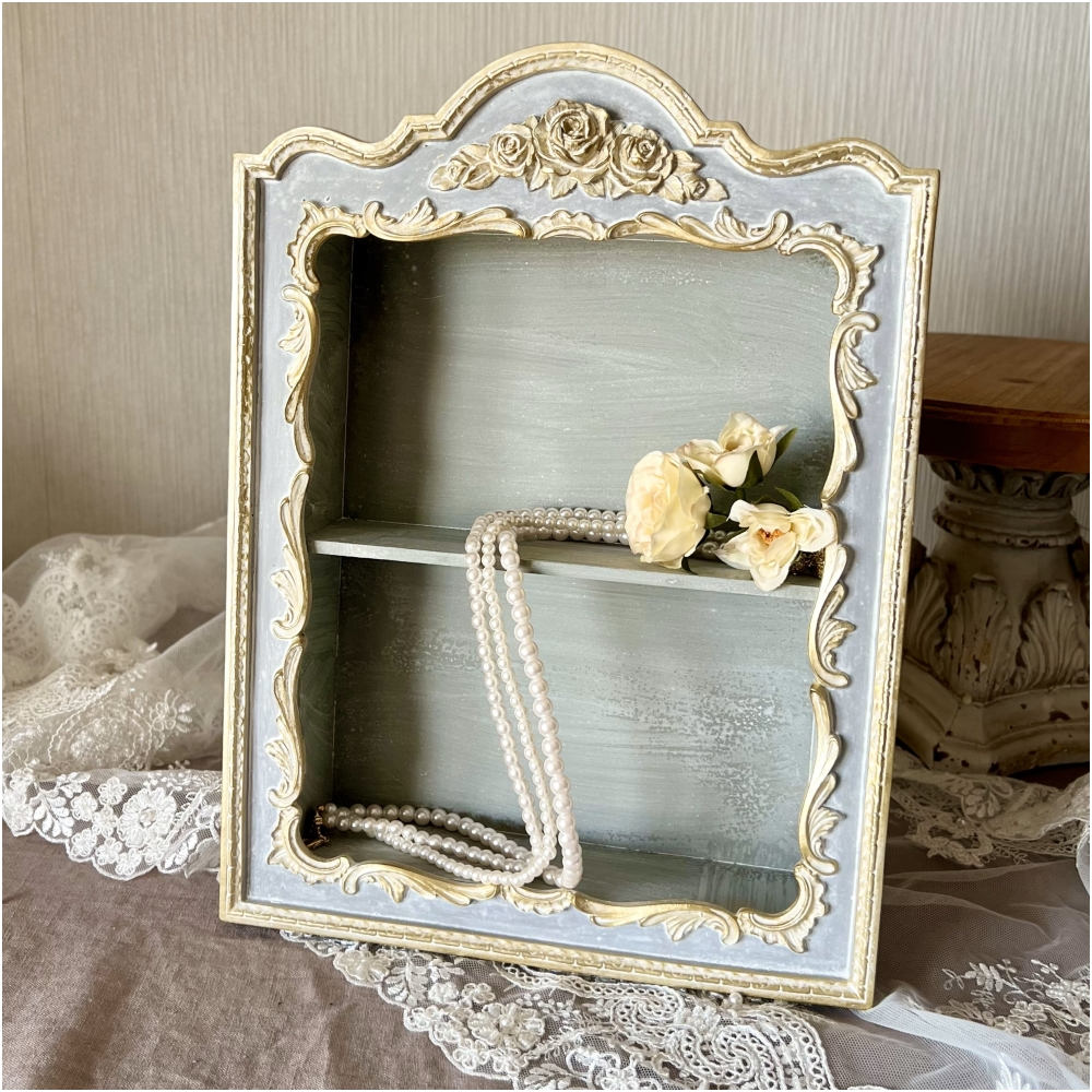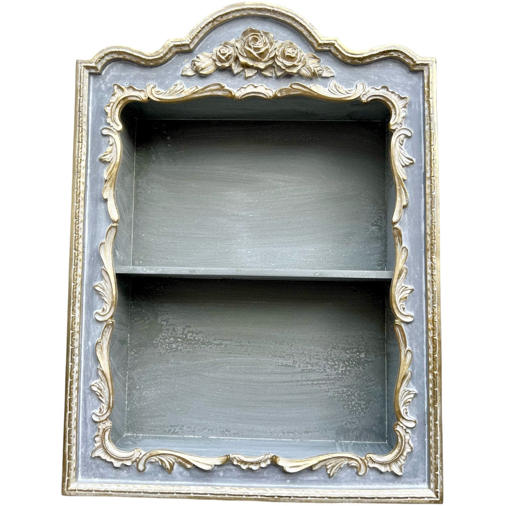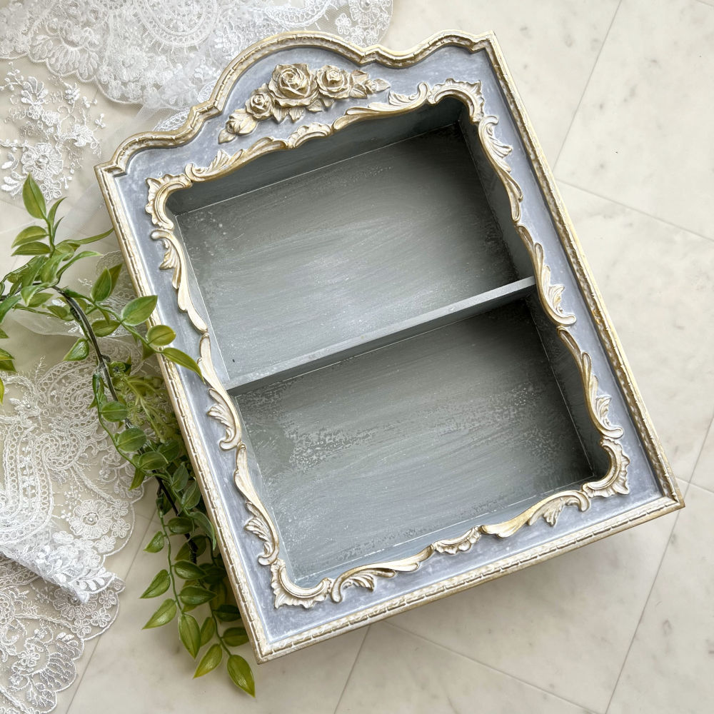 ウォールシェルフ 壁掛け飾り棚 壁掛け飾り棚 グレージュ ブルーグレー プリンセスインテリア アンティーク調 壁掛け棚 シャビシックインテリア 77161WS-GG