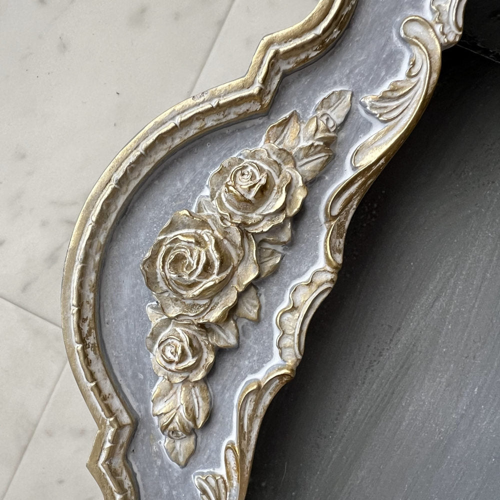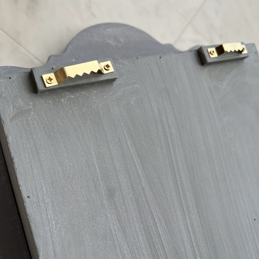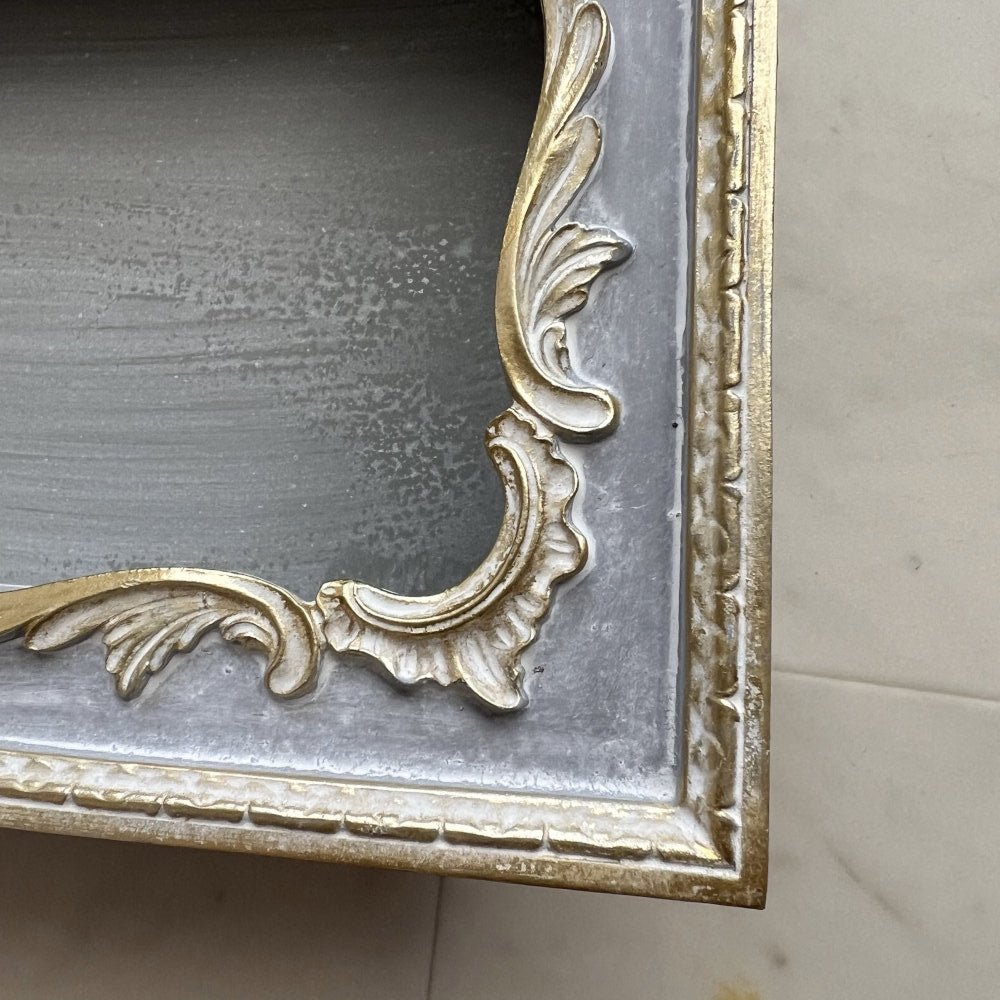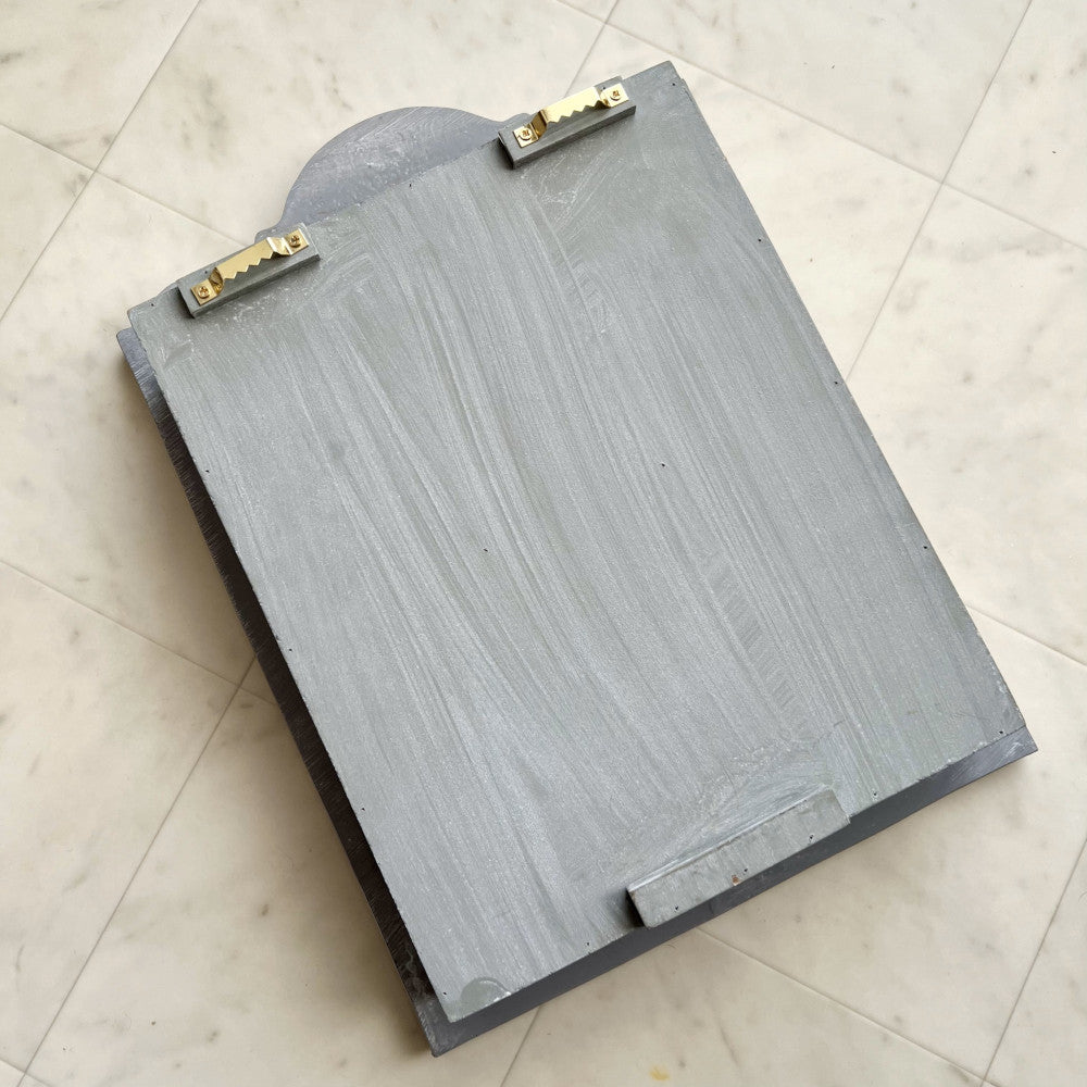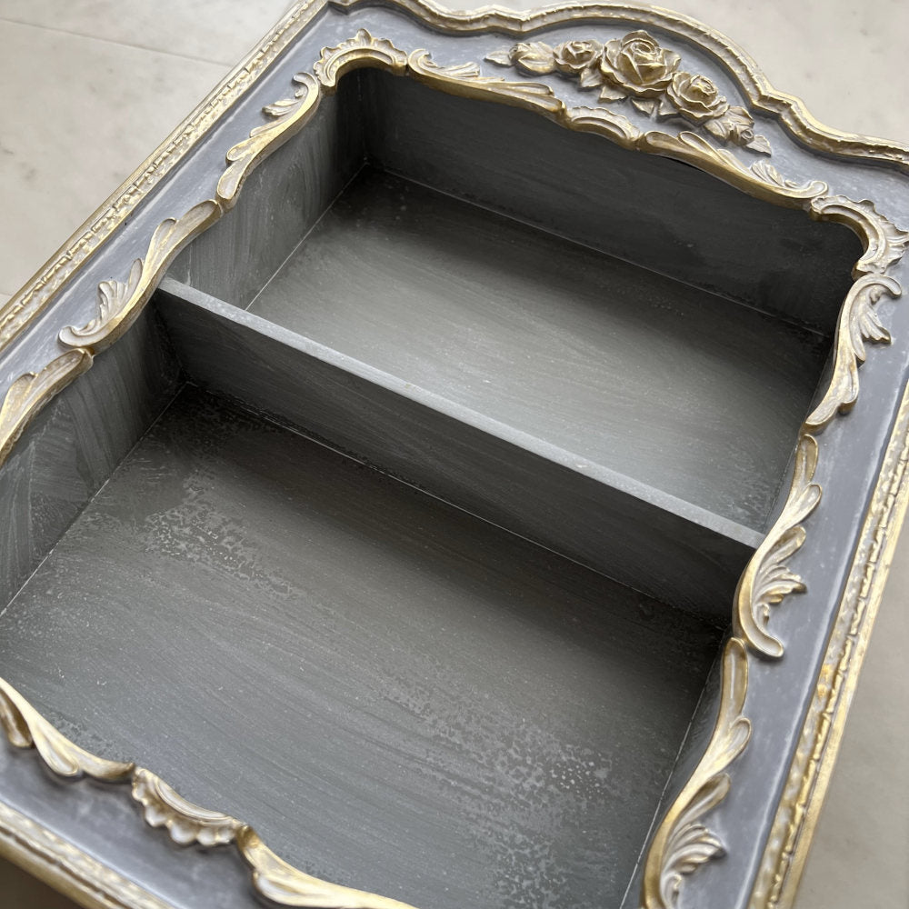 シャビーなブルーグレーにゴールドの縁取り。
