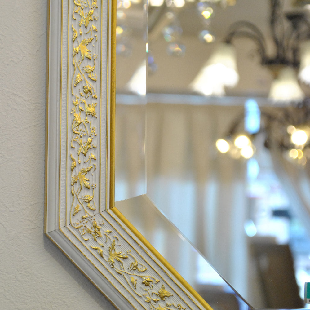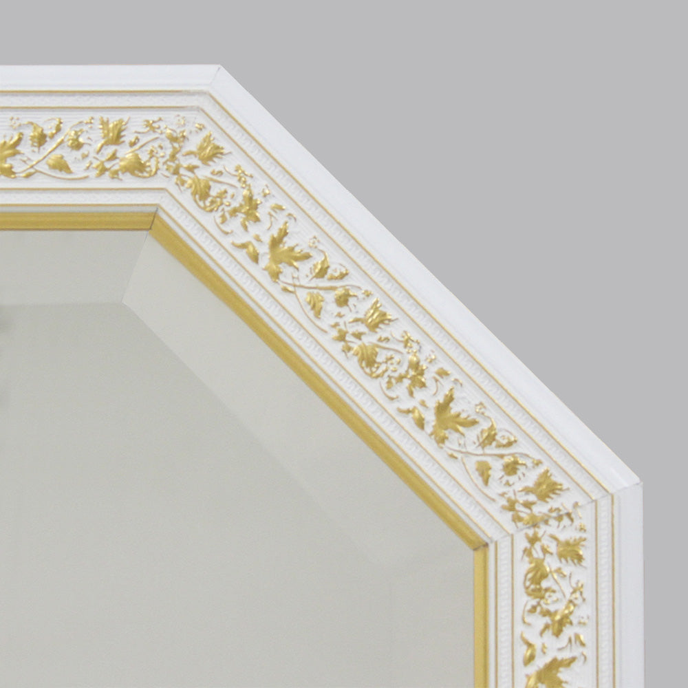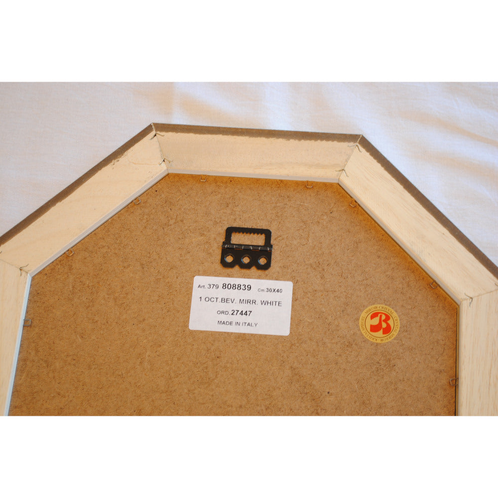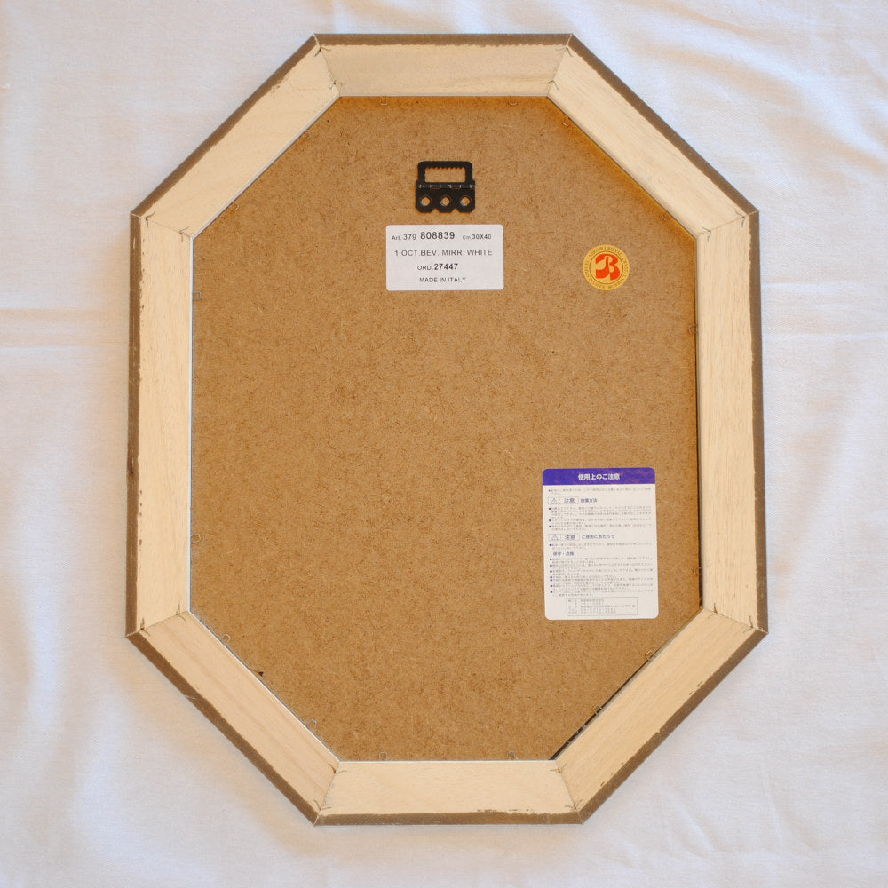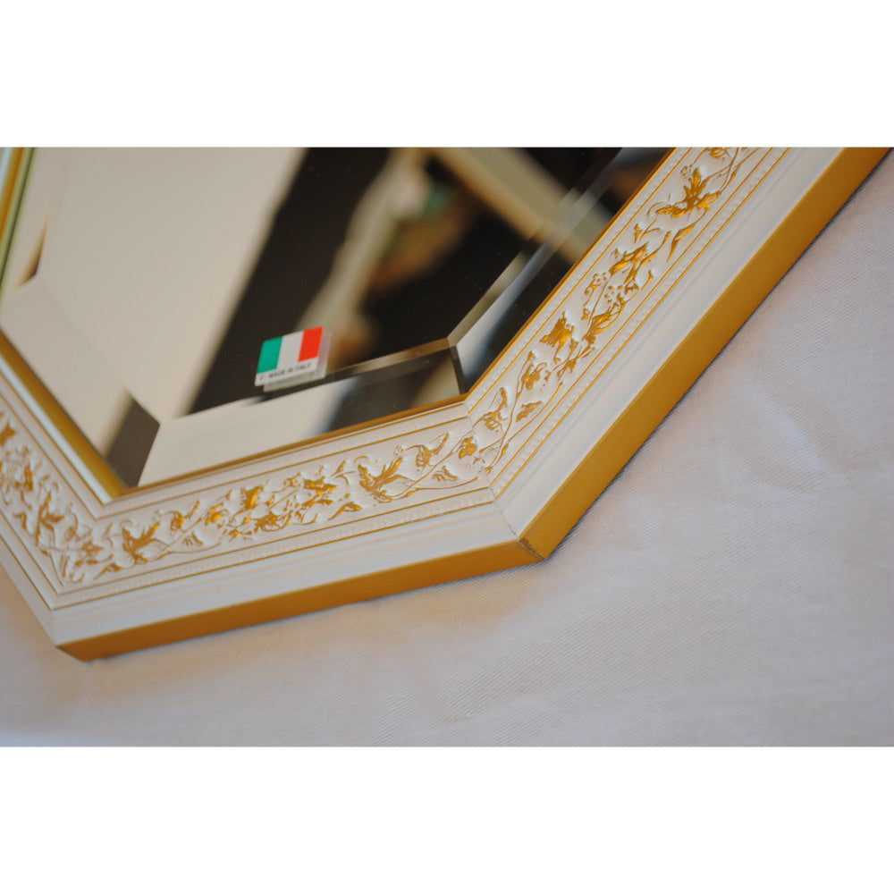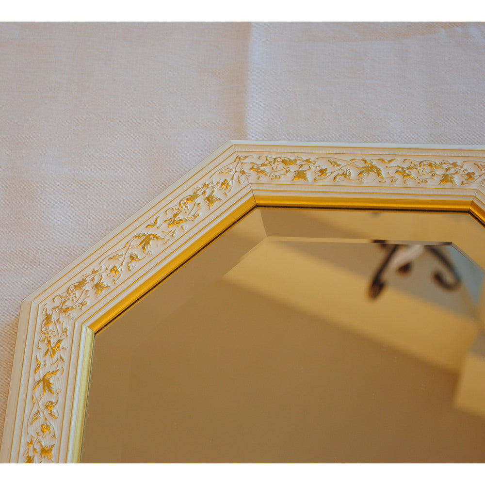 イタリアンホワイトの彩りがイタリアのクラシックらしい額縁老舗メーカーの人気定番の八角隅切り壁掛け鏡です。