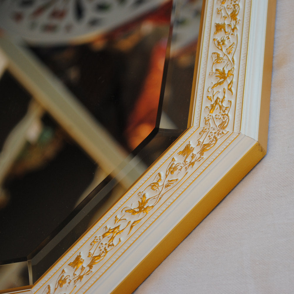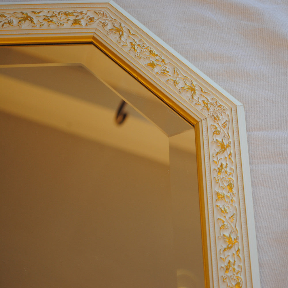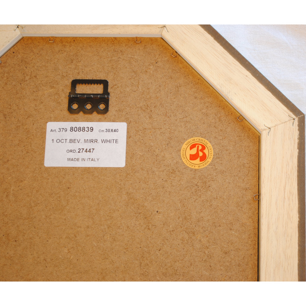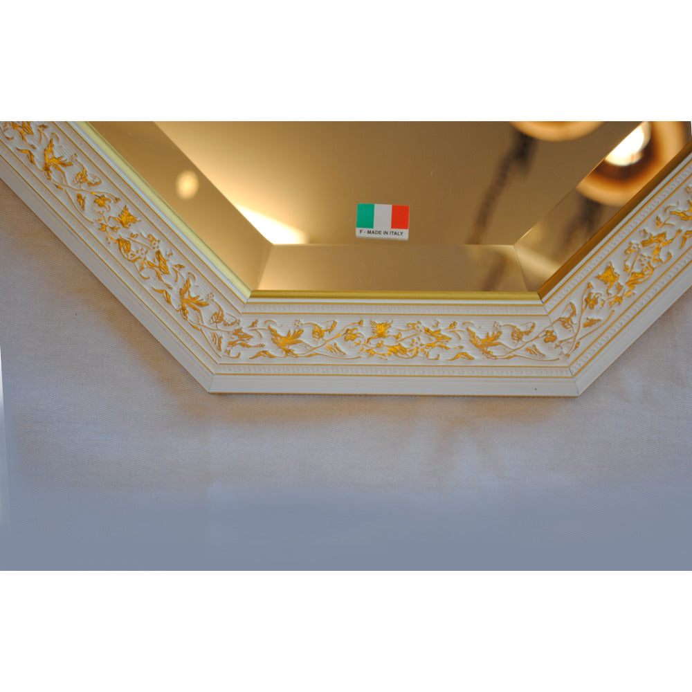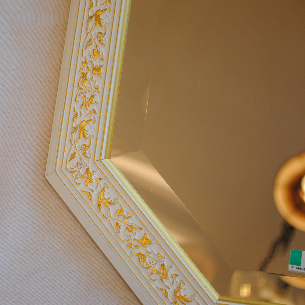 イタリアンホワイトの彩りがイタリアのクラシックらしい額縁老舗メーカーの人気定番の八角隅切り壁掛け鏡です。