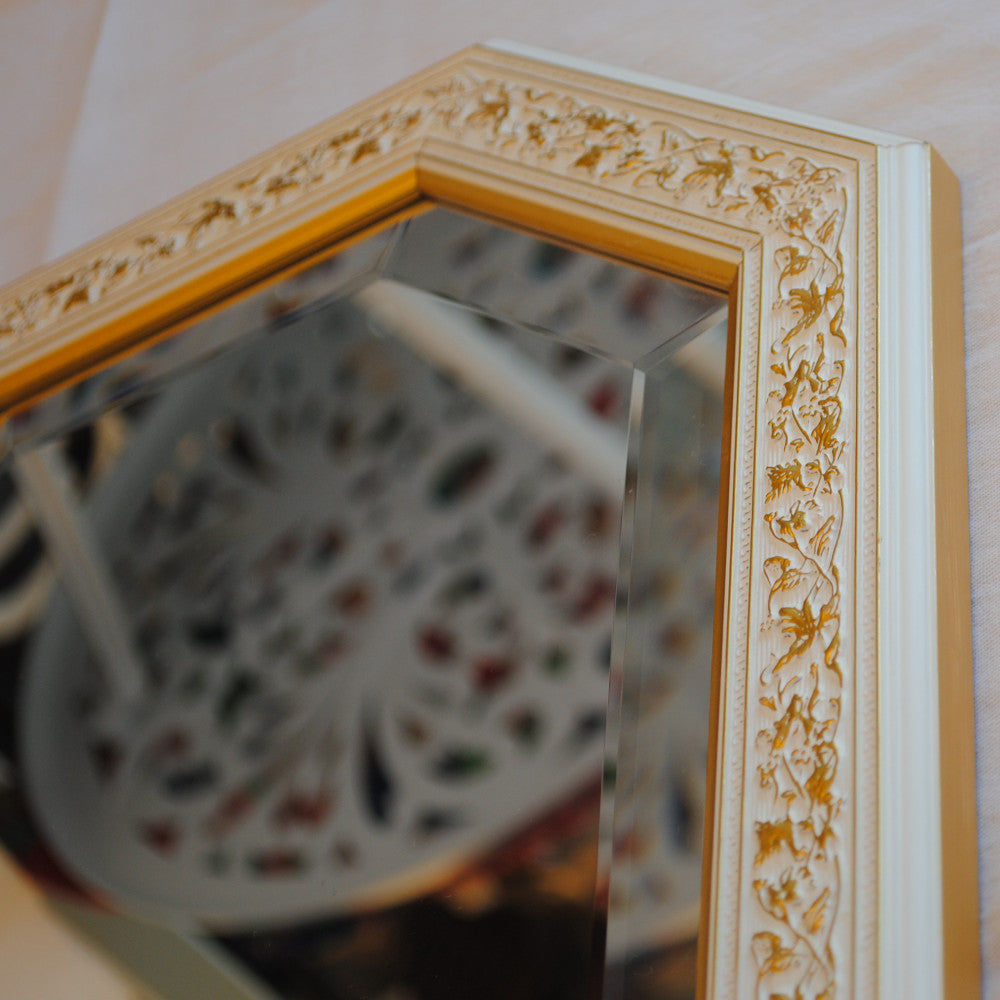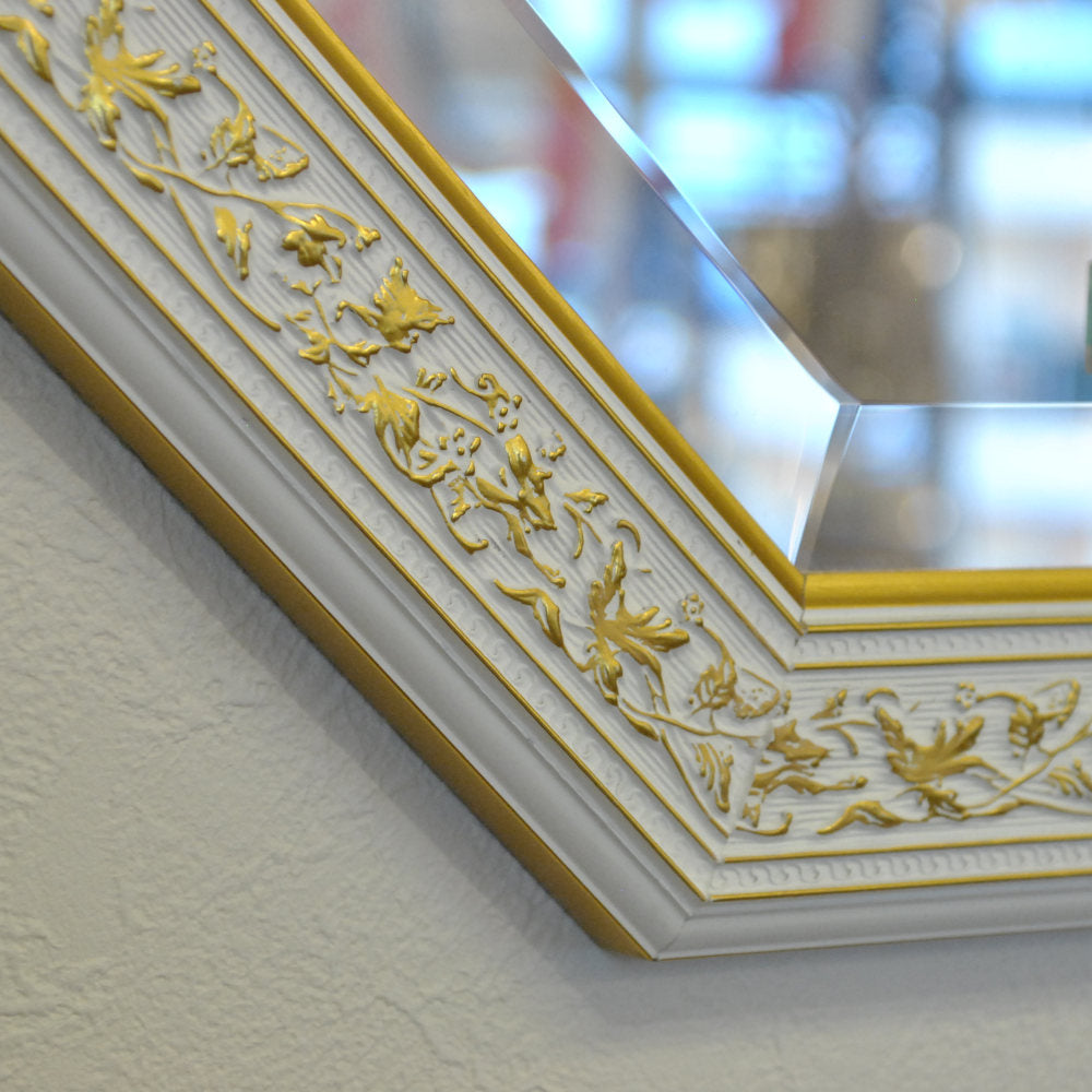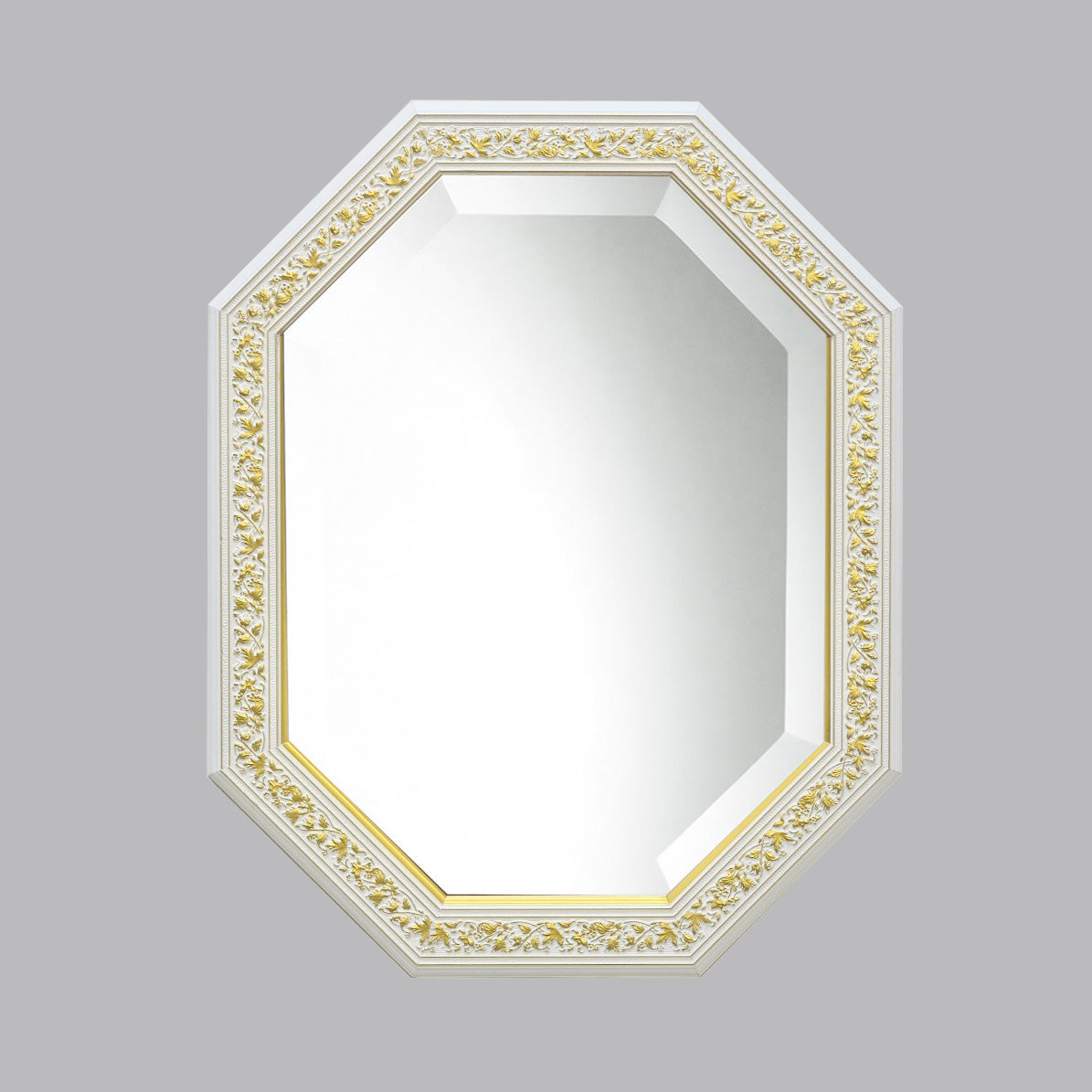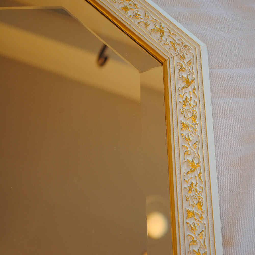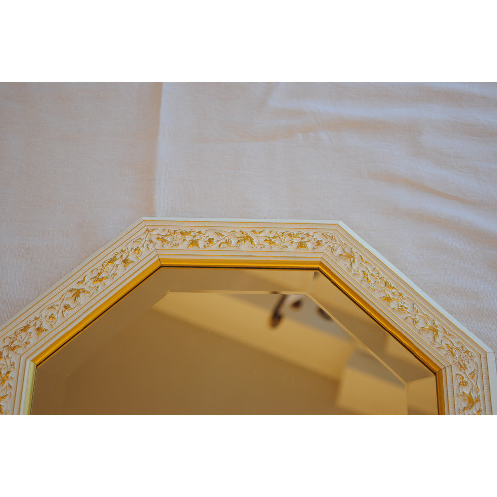 イタリアンホワイトの彩りがイタリアのクラシックらしい額縁老舗メーカーの人気定番の八角隅切り壁掛け鏡です。