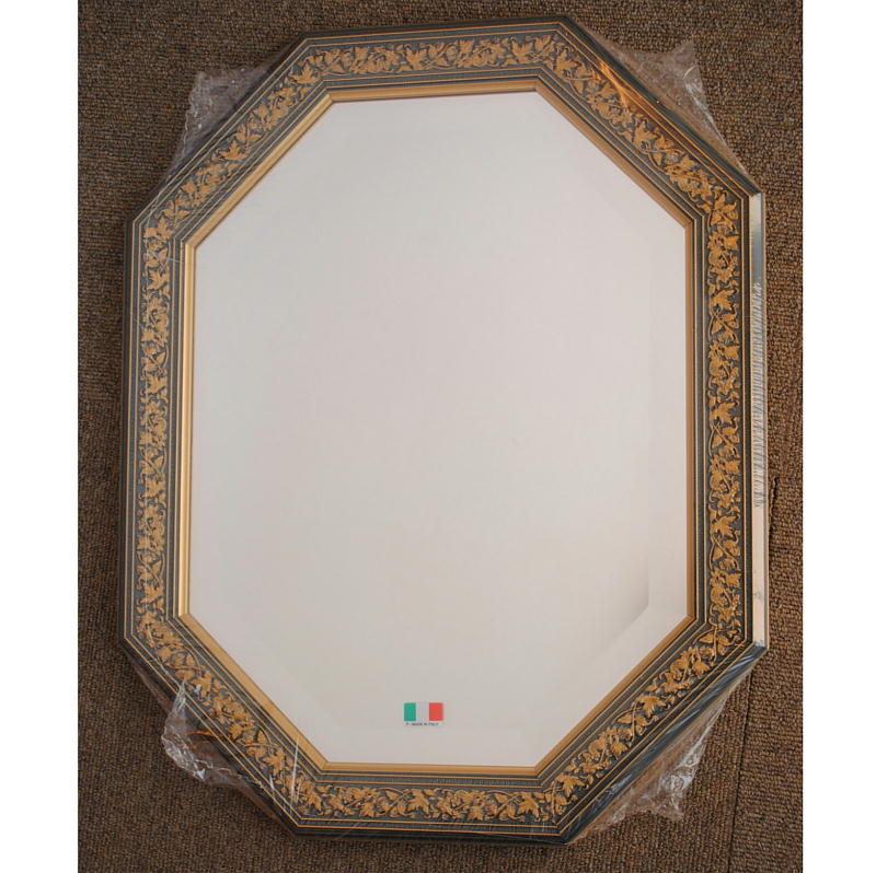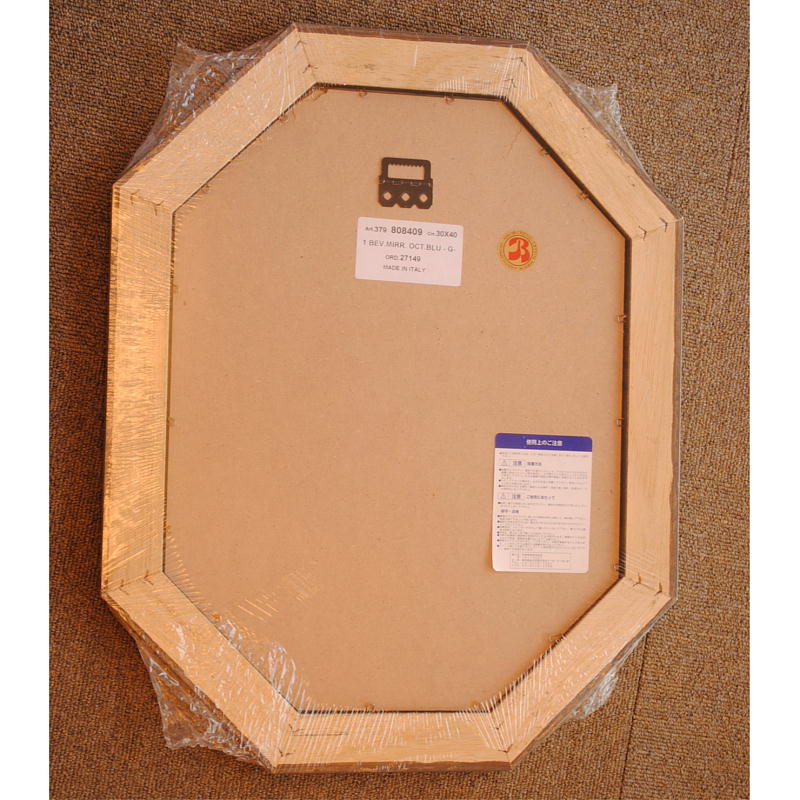 イタリアンブルーの彩りがイタリアのクラシックらしい額縁老舗メーカーの人気定番の八角隅切り壁掛け鏡です。