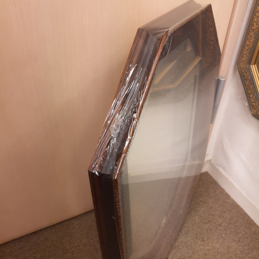 落ち着いた雰囲気が漂う、アンティーク調の八角形のおしゃれなウォールミラーです。
