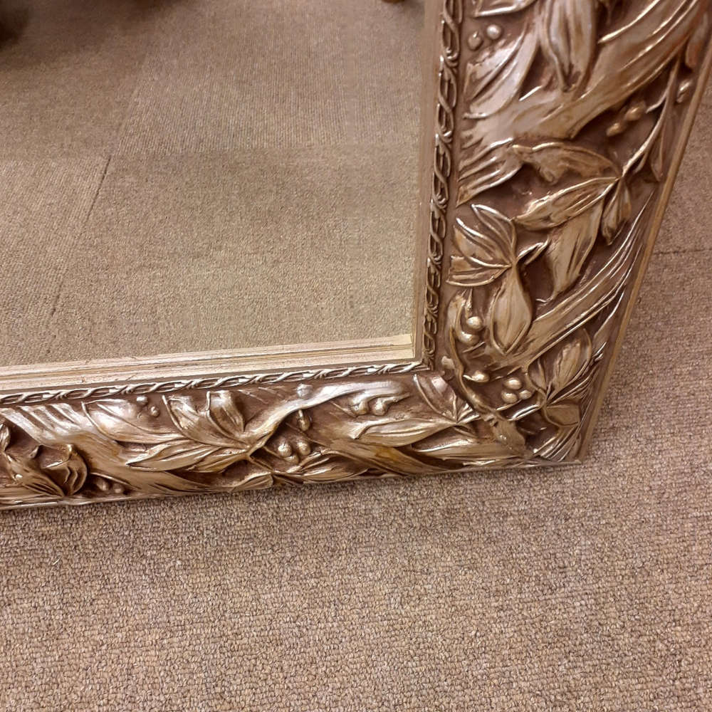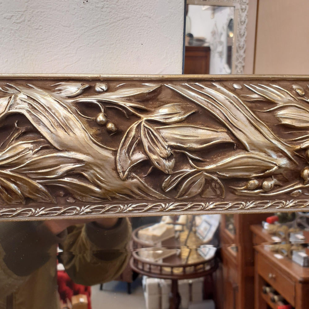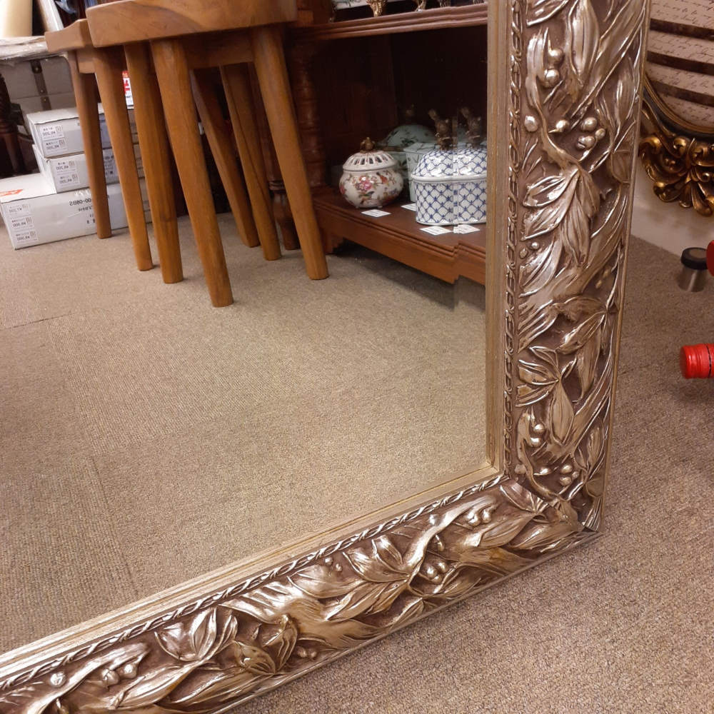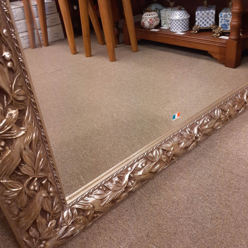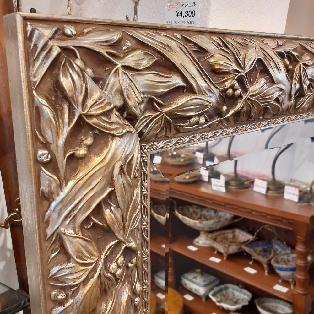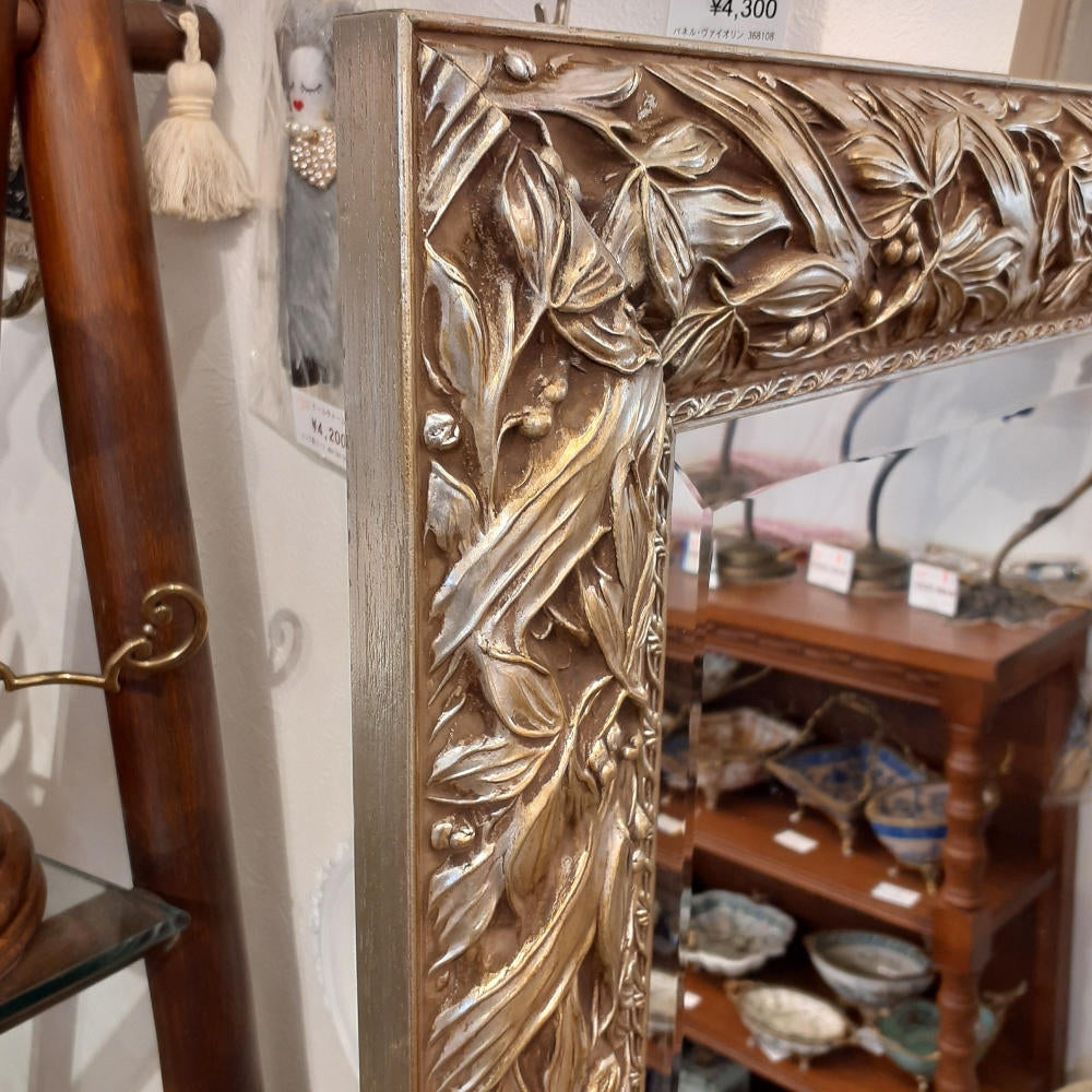 アンティークシルバーのフレームがゴージャスな縁取りが高級感を醸し出す木製額に厚みのある上質なカットガラスをはめ込んだ超逸品です。
