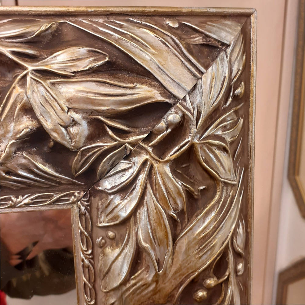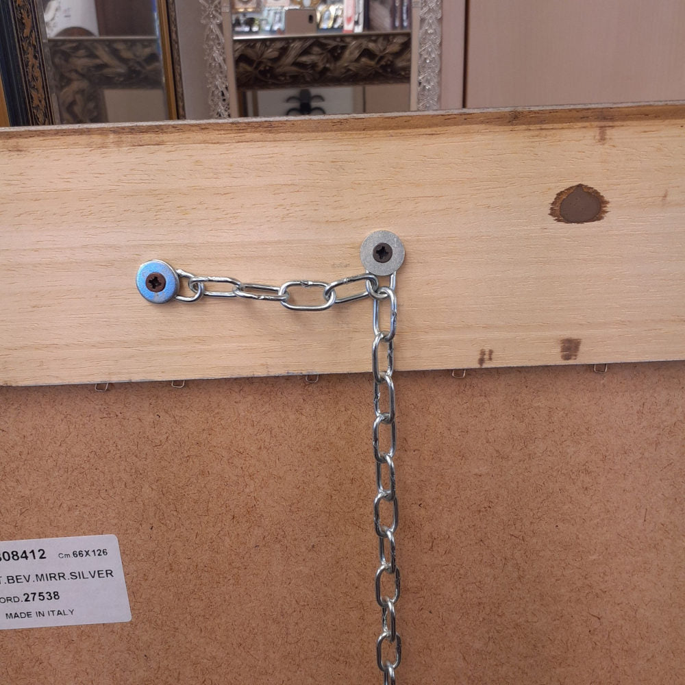 ウォールミラー 特大ミラー おしゃれ 鏡 壁掛け 縦横可 銀 シルバー 木製 アンティーク仕上げ ミラー 長方形鏡 イタリア製 ベルトーチ BERTOZZI 808412