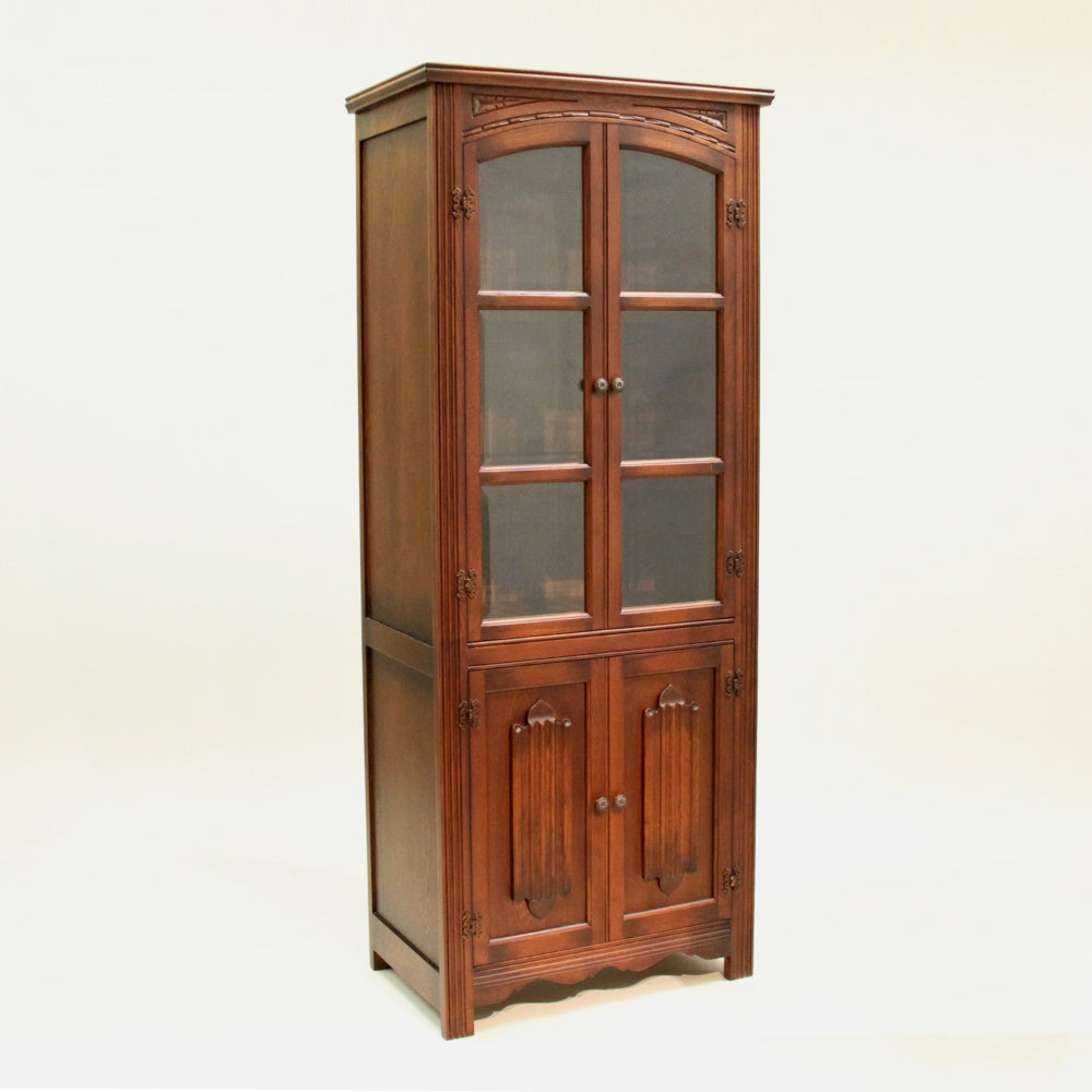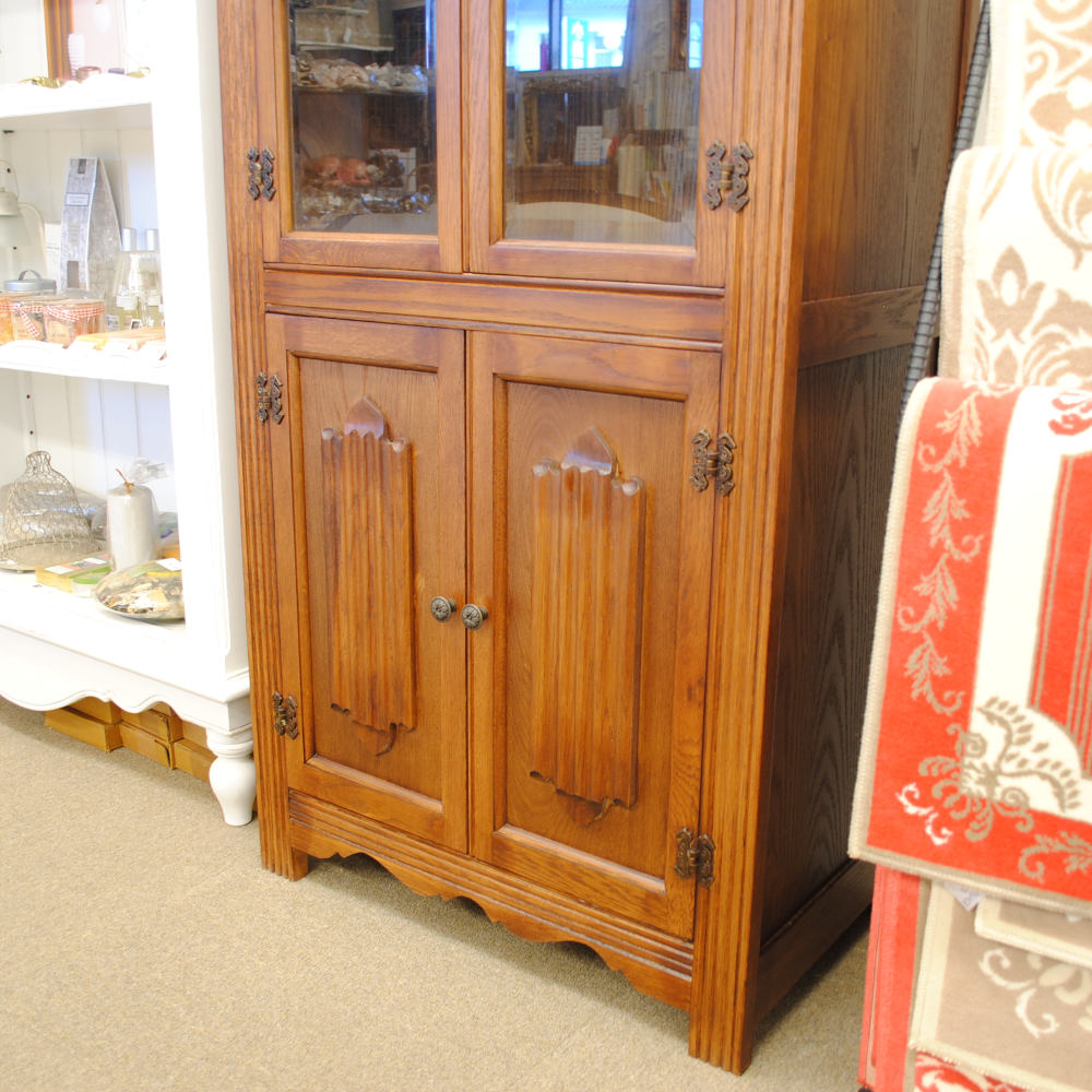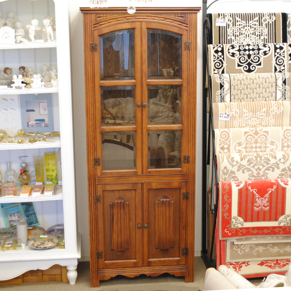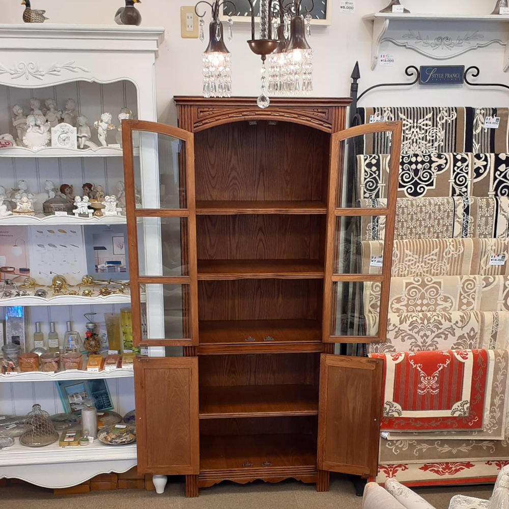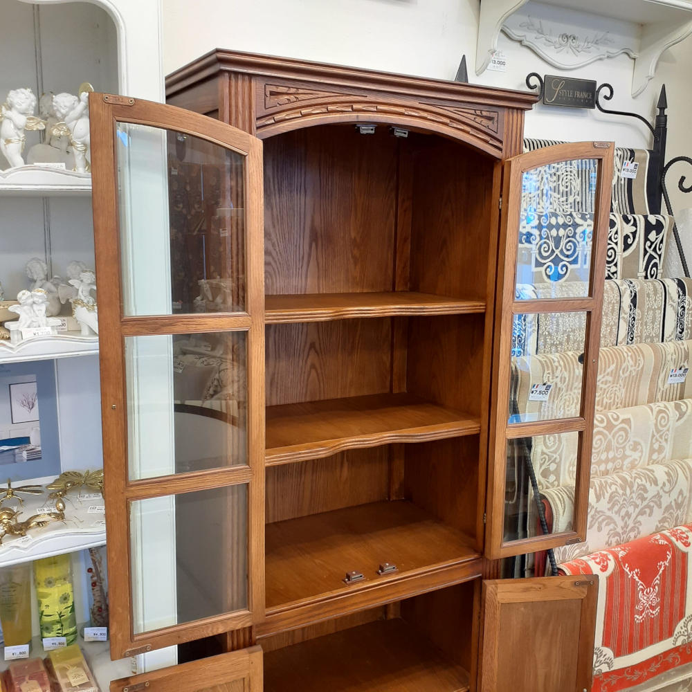 カップボード キャビネット ガラスドアキャビネット 食器棚 ブックケース 本棚 オーク材家具 オーク無垢材 アンティーク風家具 177006