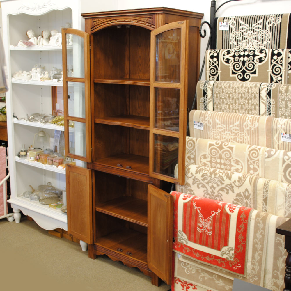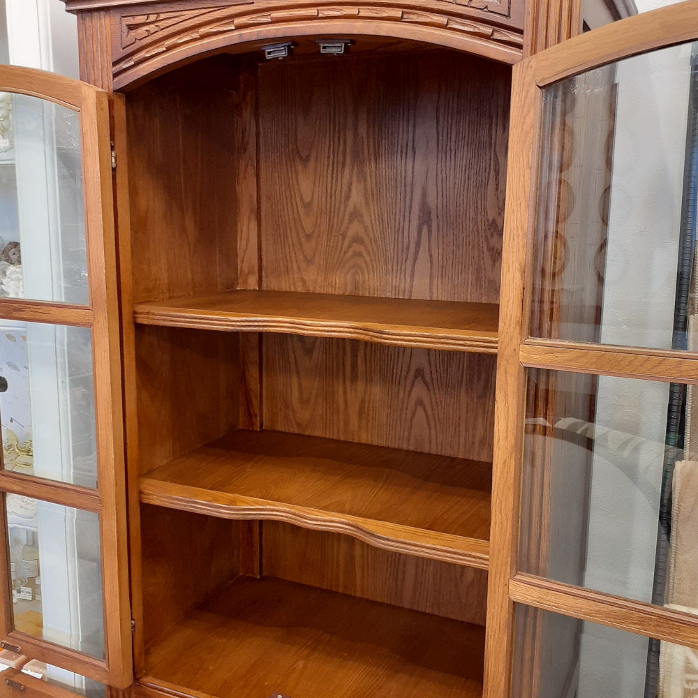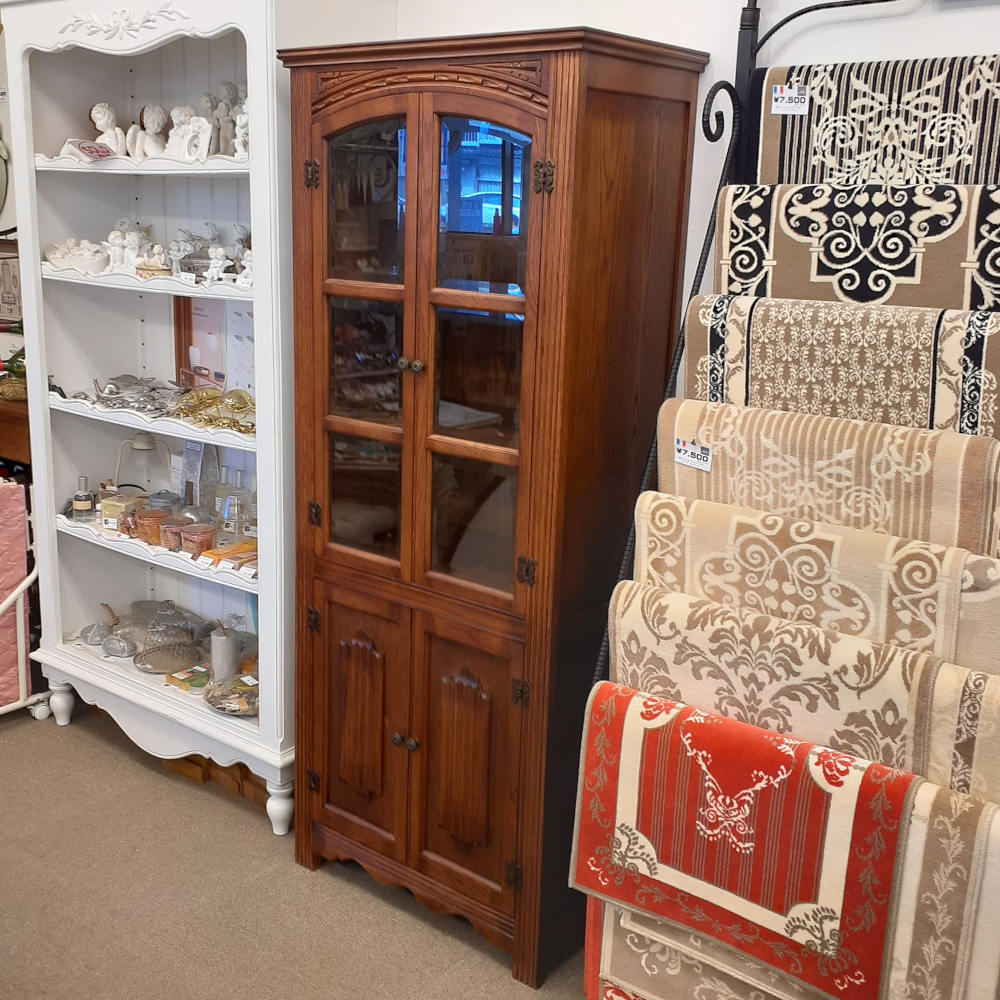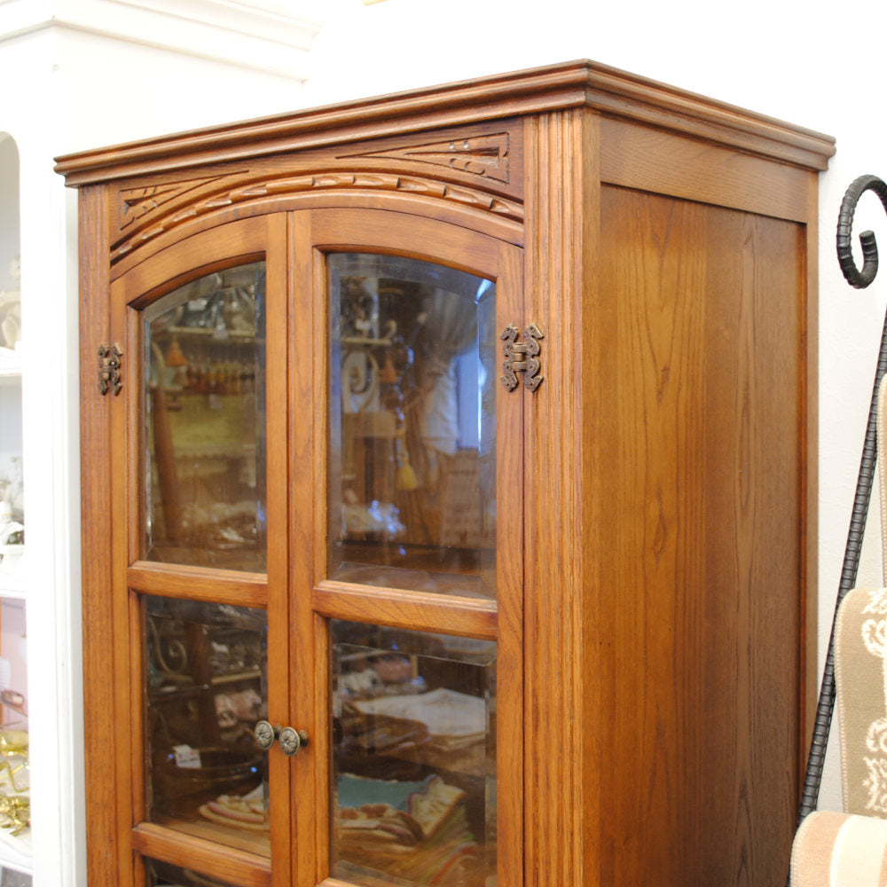 カップボード キャビネット ガラスドアキャビネット 食器棚 ブックケース 本棚 オーク材家具 オーク無垢材 アンティーク風家具 177006