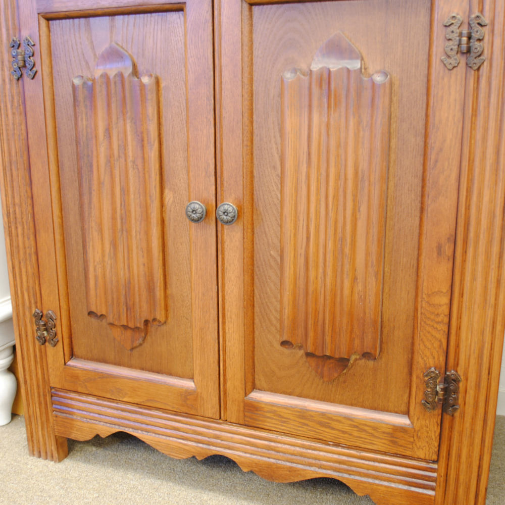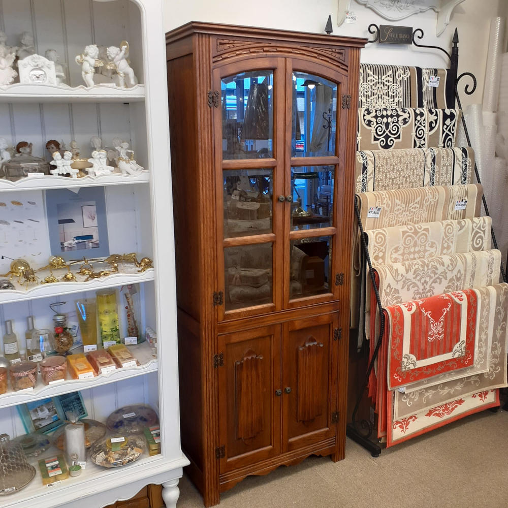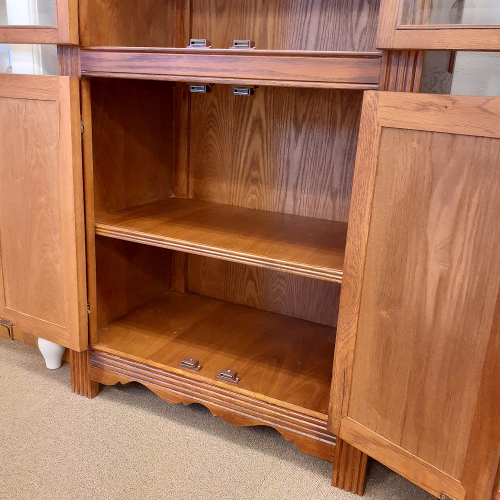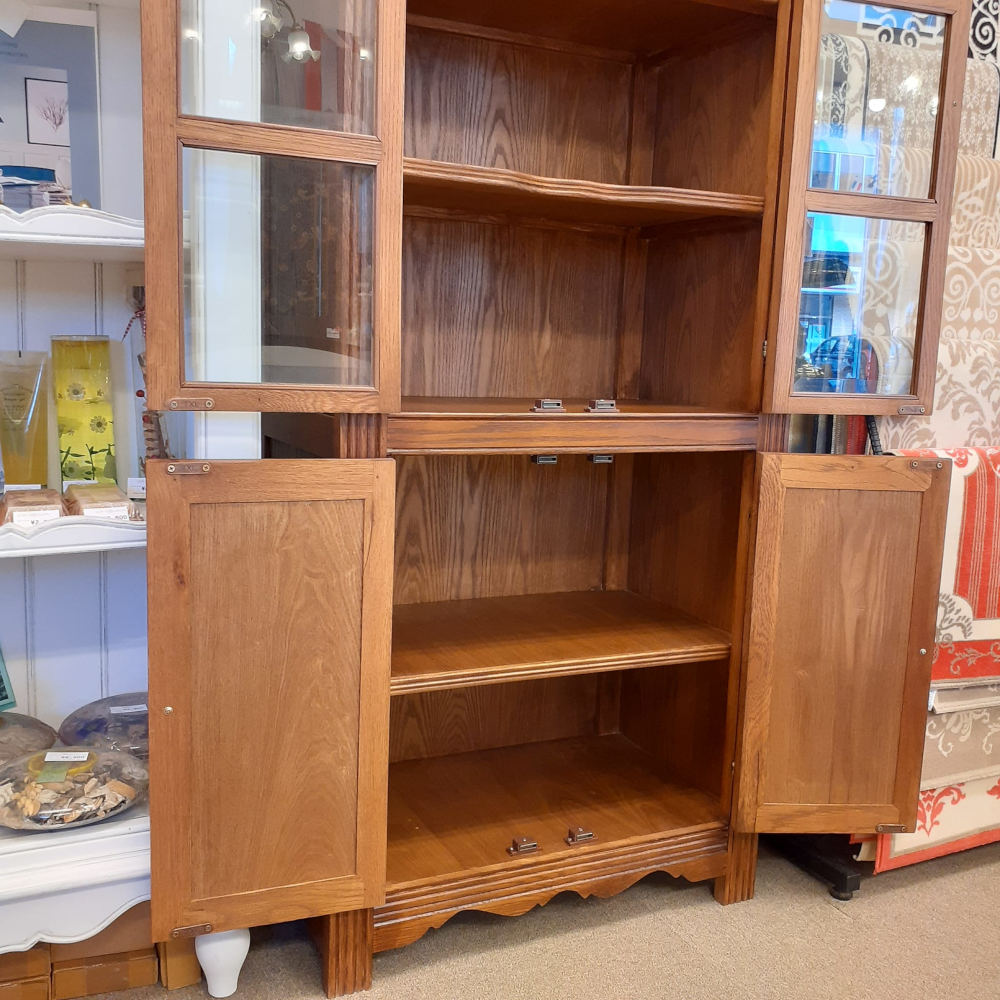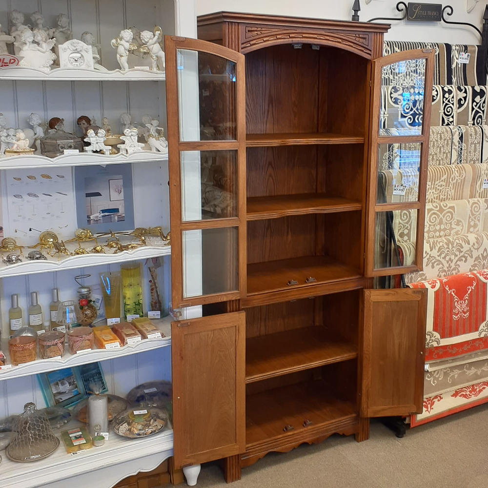カップボード キャビネット ガラスドアキャビネット 食器棚 ブックケース 本棚 オーク材家具 オーク無垢材 アンティーク風家具 177006