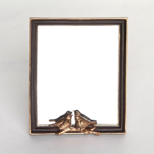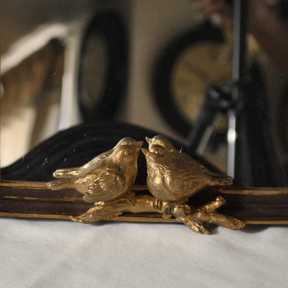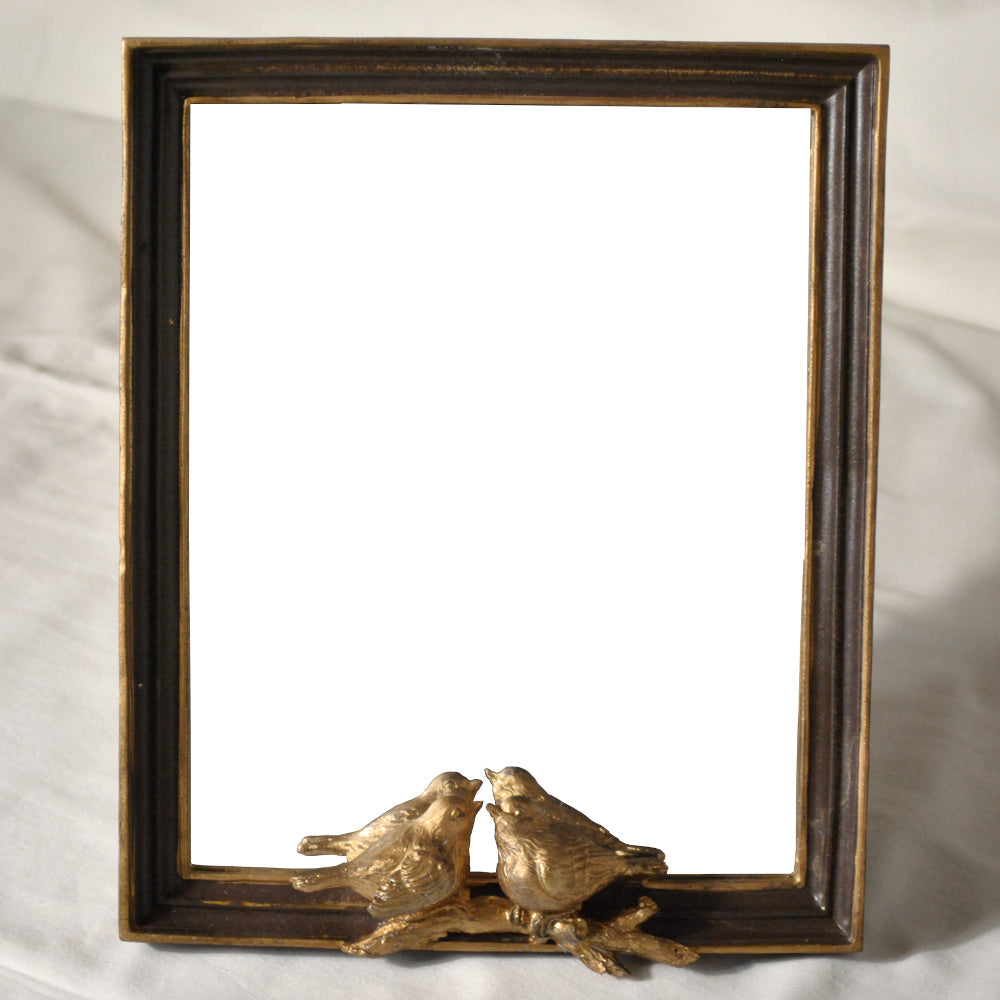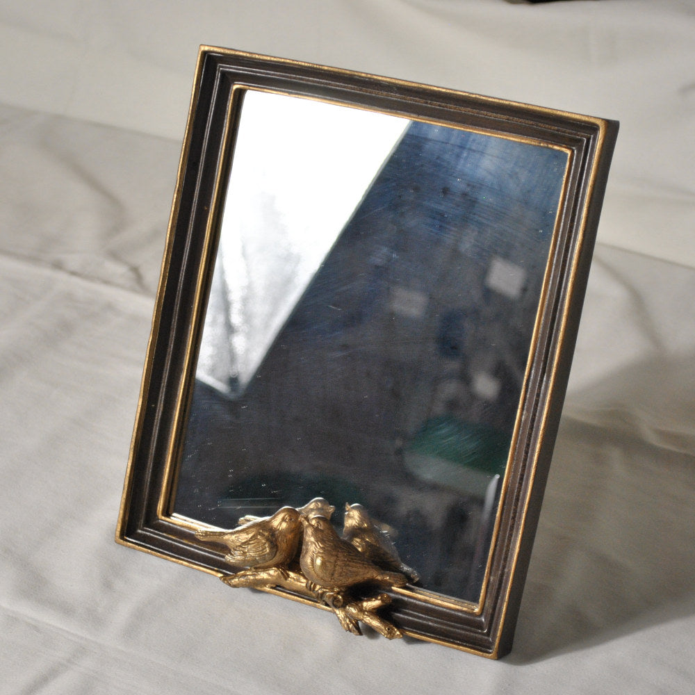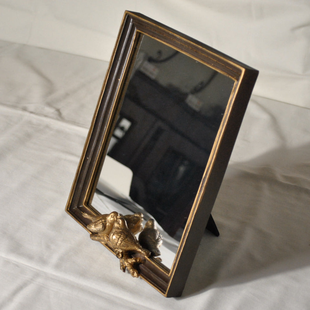 小鳥のレリーフが可愛いシックでエレガントなアンティーク風スタンドミラー(卓上鏡)です。