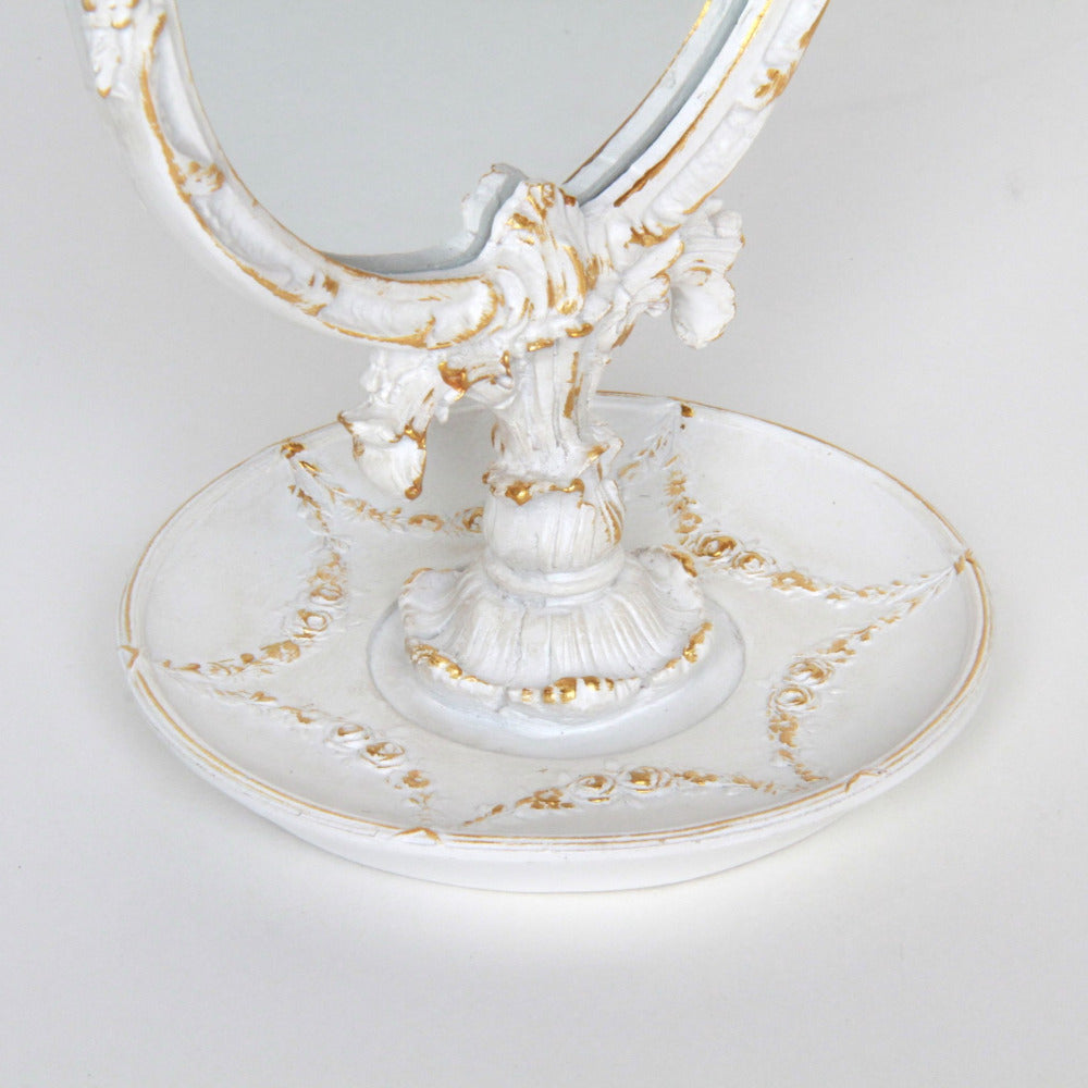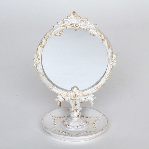 スタンドミラー 卓上ミラー ミラー 置き鏡 オシャレ アンティーク風 クラシック フレンチ ホワイト エレガント 姫家具 かわいい 883021WH