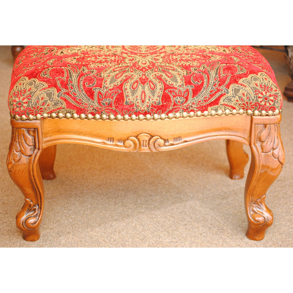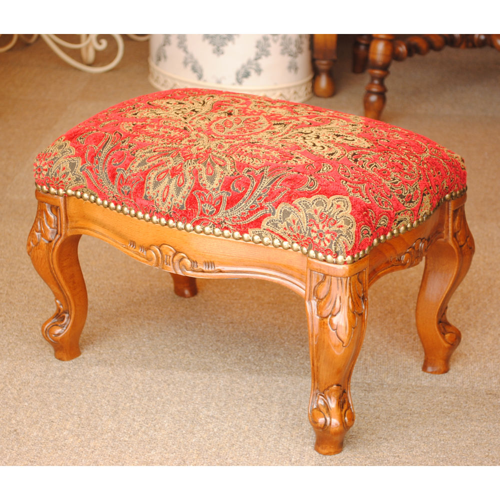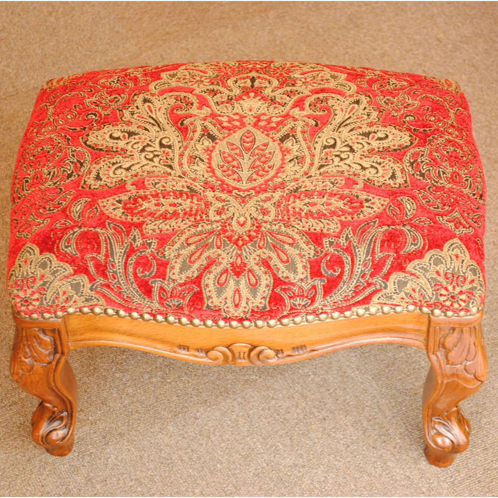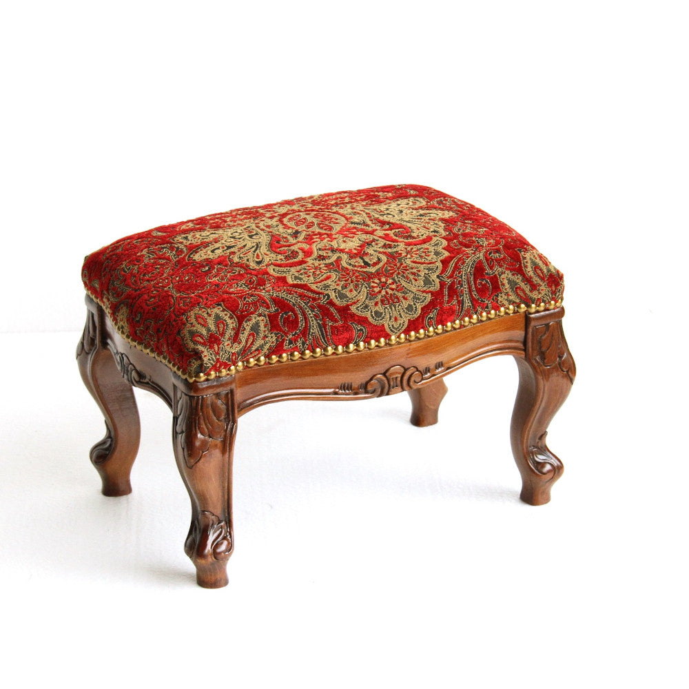 スツール フットスツール アンティーク調 長方形 赤 レッド おしゃれ ダマスク柄 ダマスクローズ ベルベット オットマン イタリア製 250443