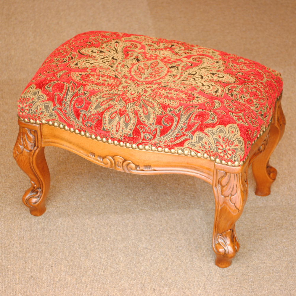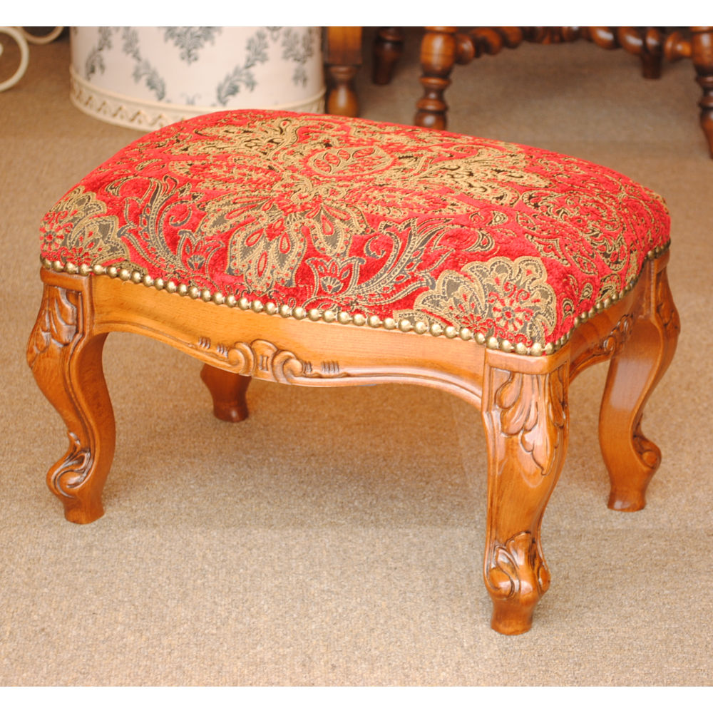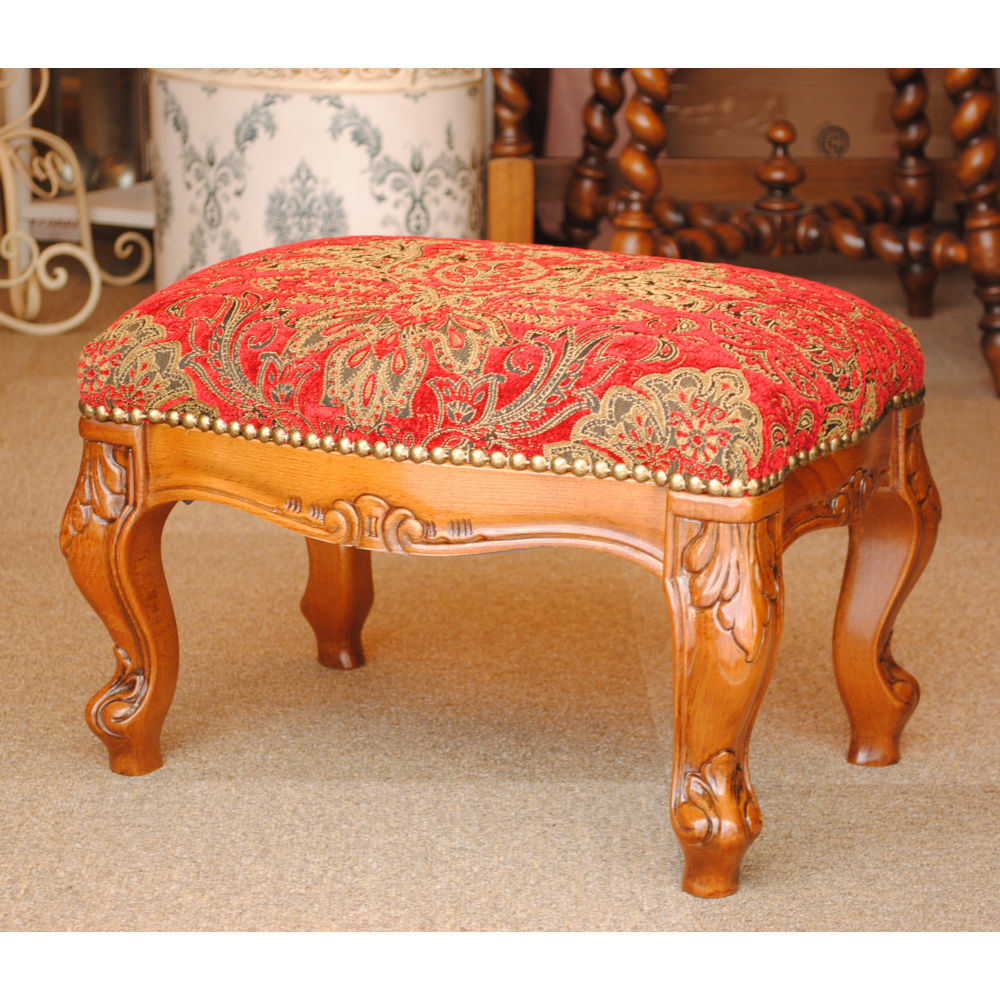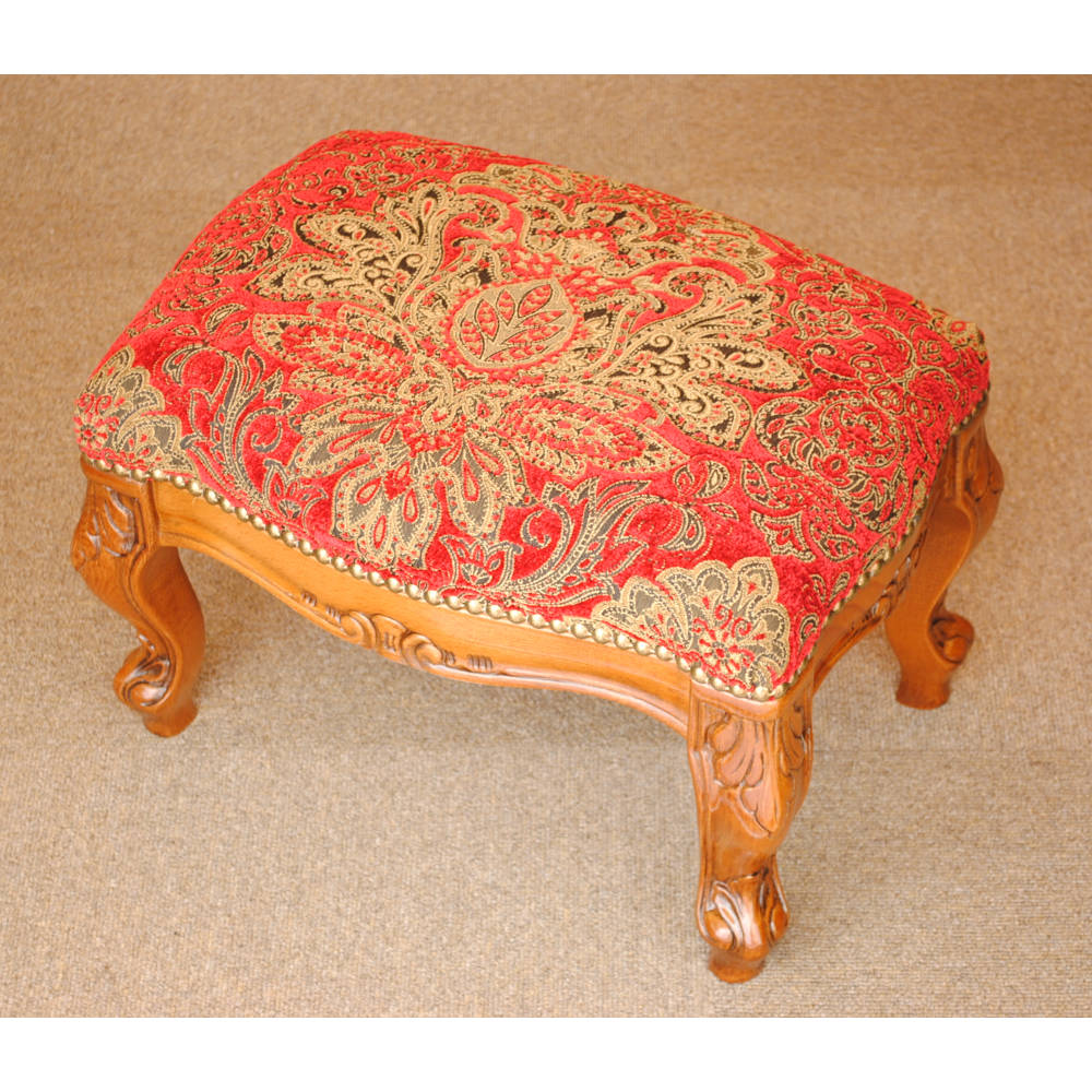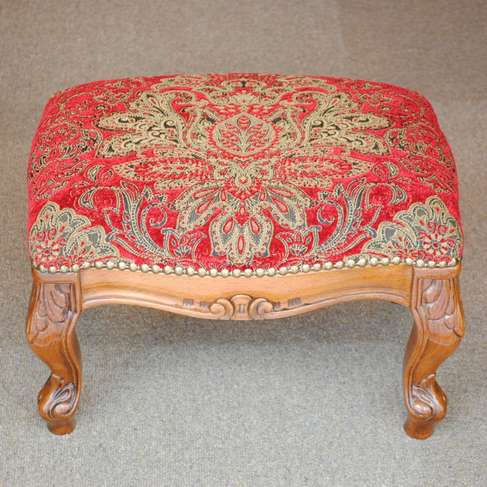 スツール フットスツール アンティーク調 長方形 赤 レッド おしゃれ ダマスク柄 ダマスクローズ ベルベット オットマン イタリア製 250443
