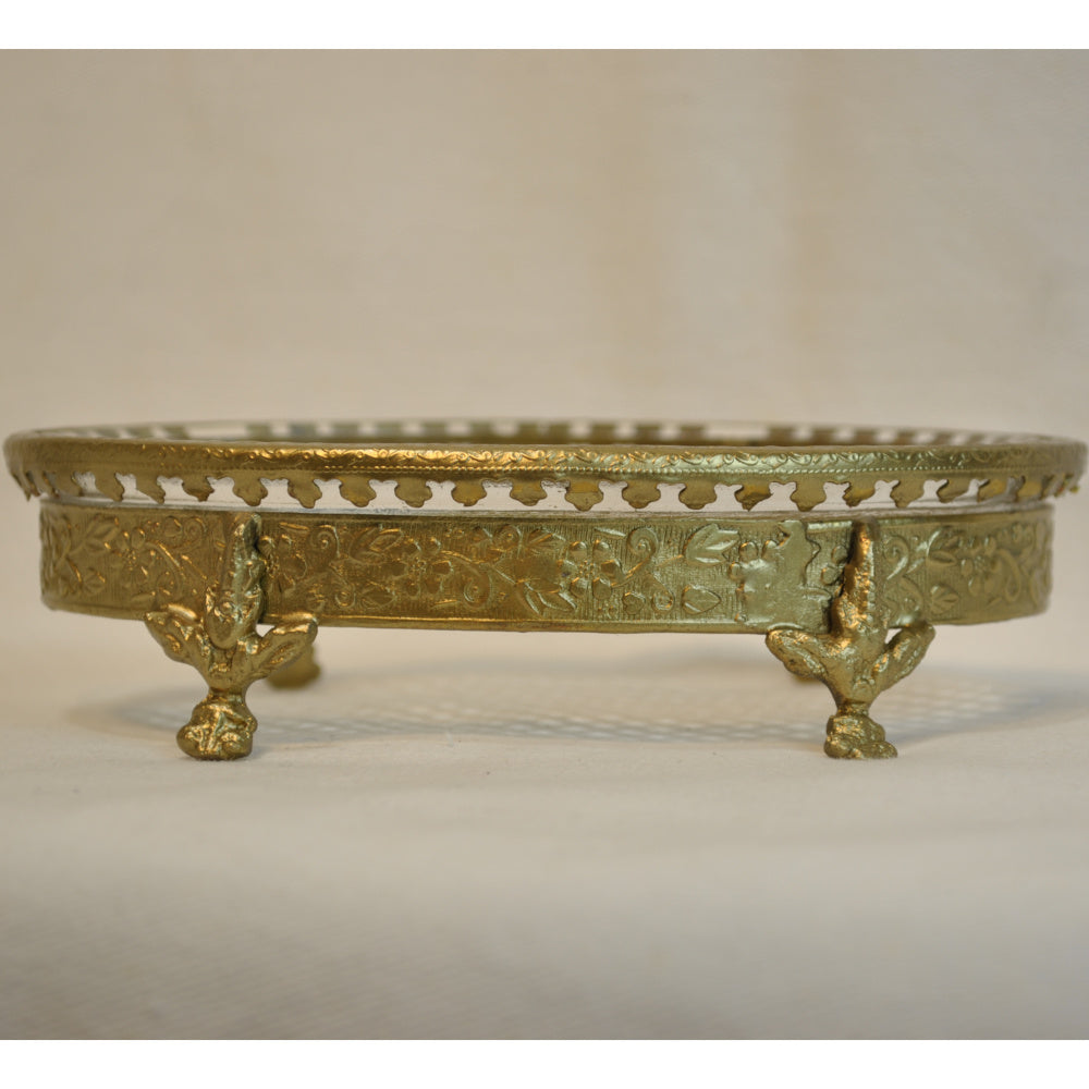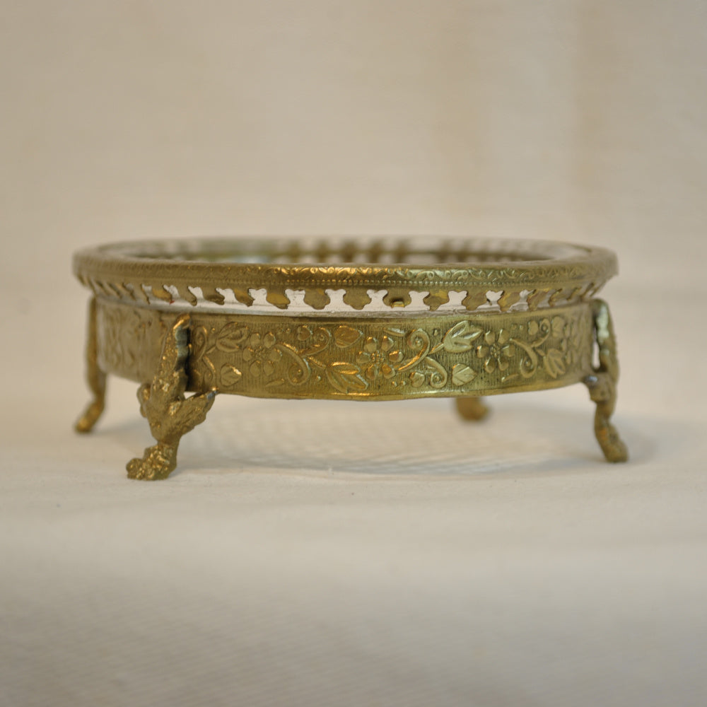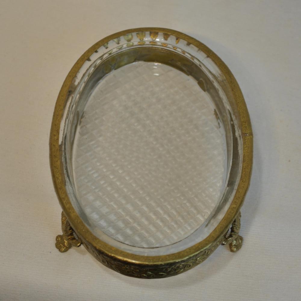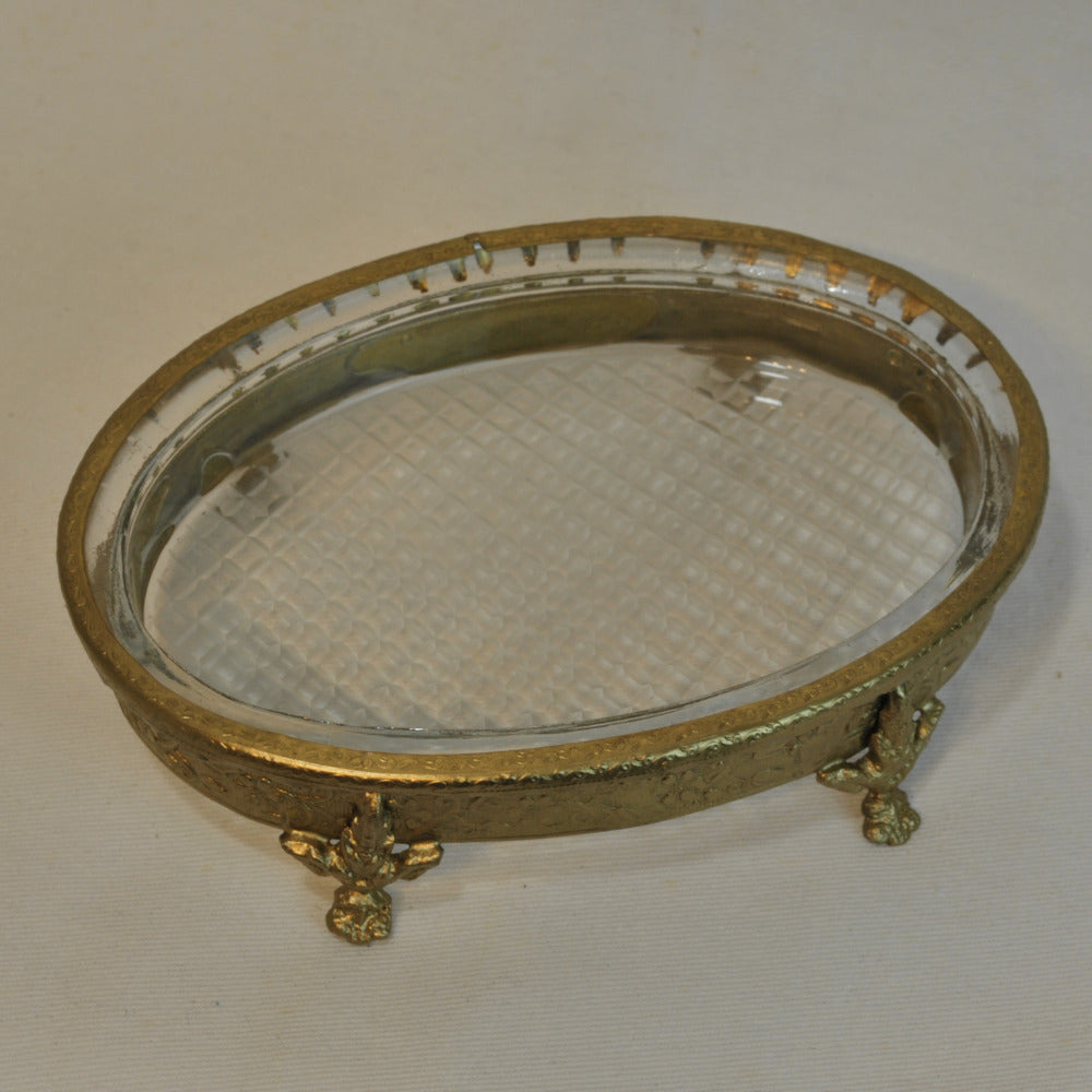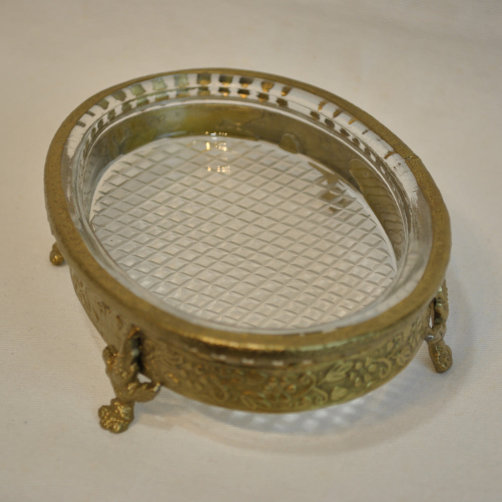 ソープディッシュ 石鹸置き グラスボウル 真鍮製 トレイ ガラストレイ 小物入れ アンティーク風ガラス器 真鍮雑貨 7347065