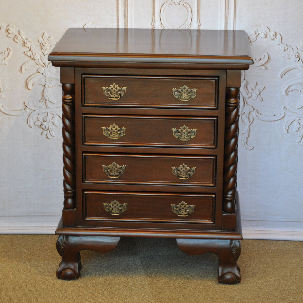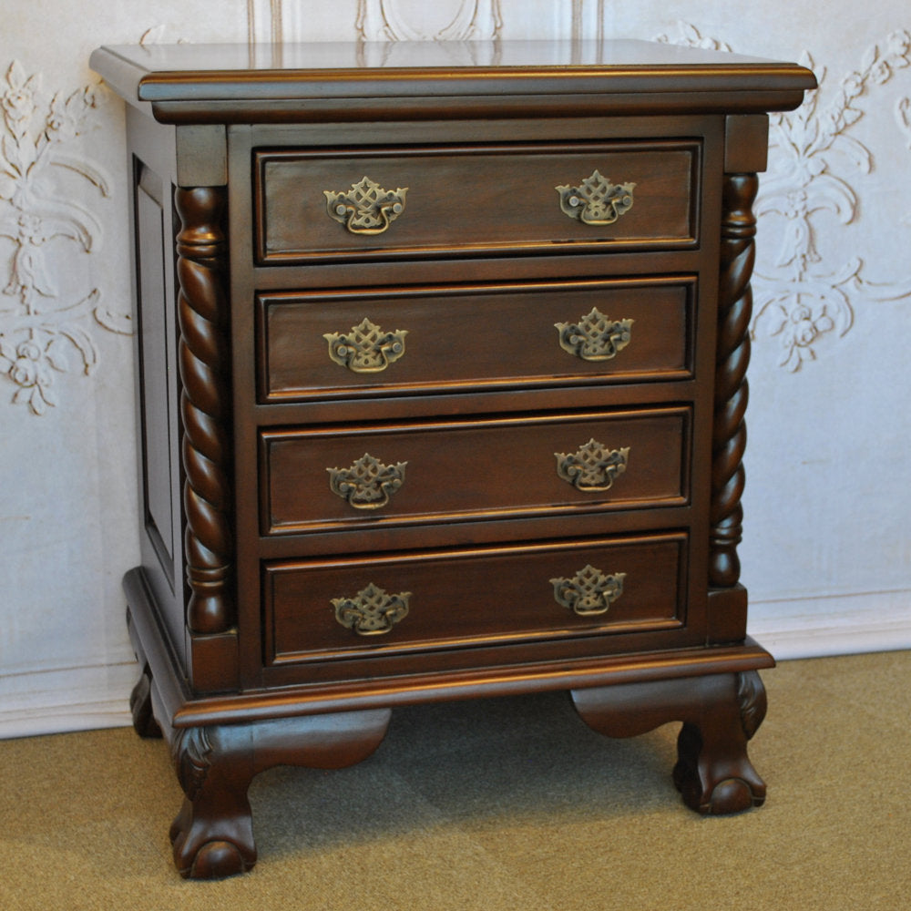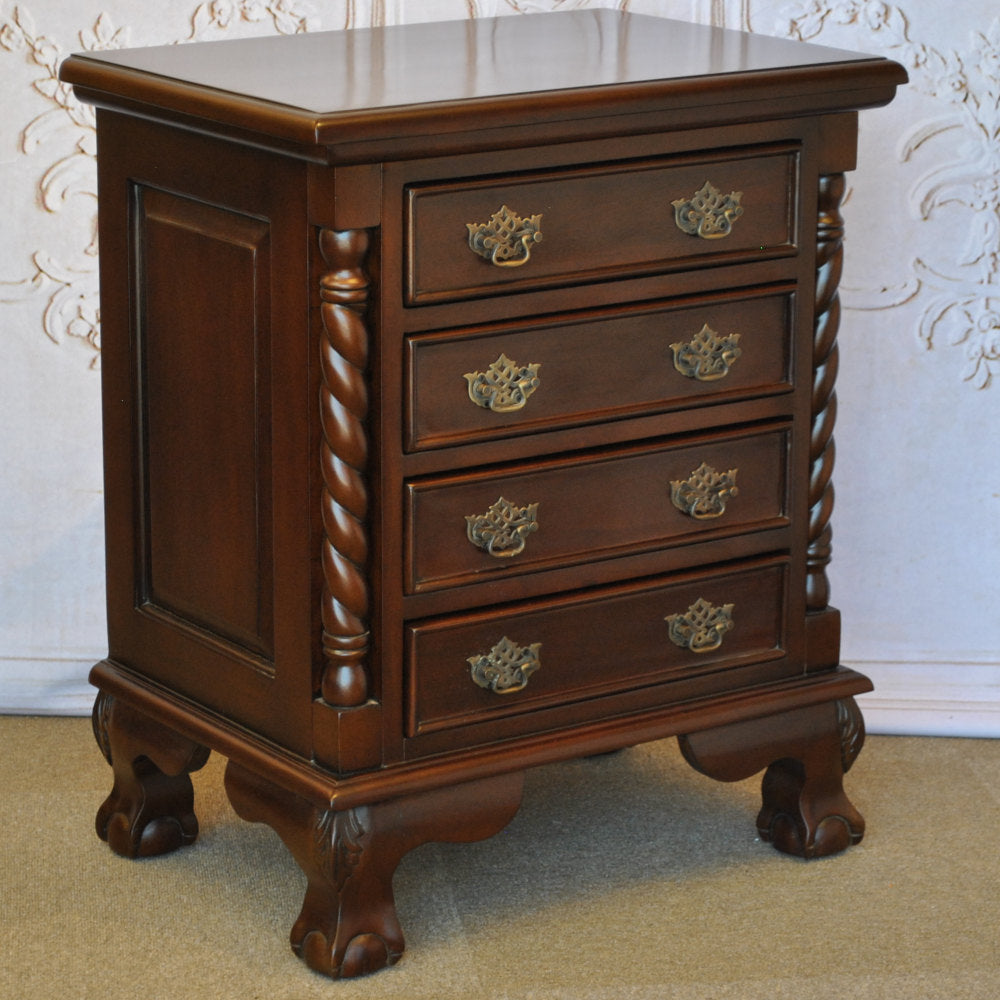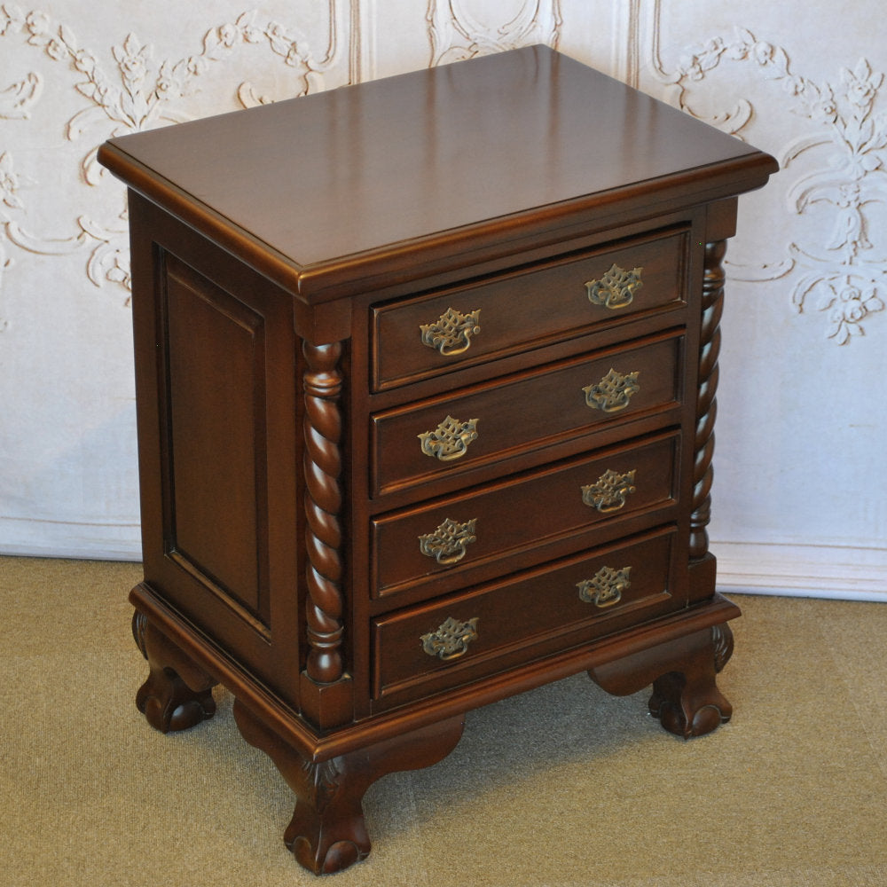 チェスト ナイトスタンドテーブル 4段チェスト ランプテーブル マホガニー家具 アンティーク風家具 アンティーク調 マホガニー無垢材 160002