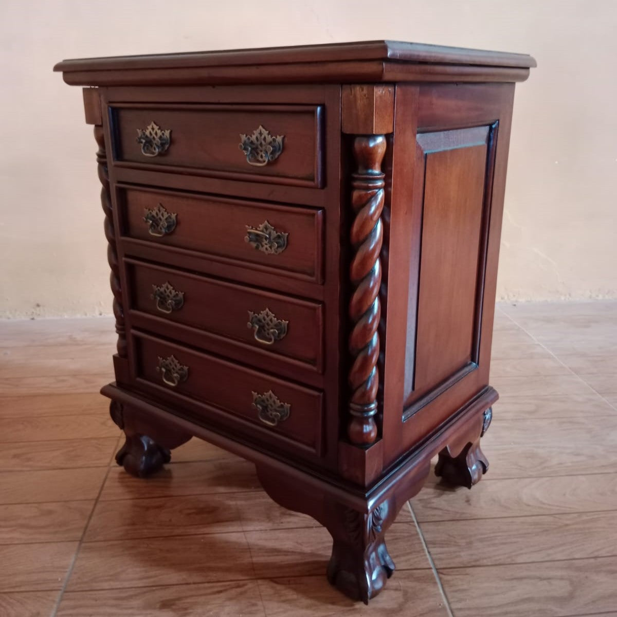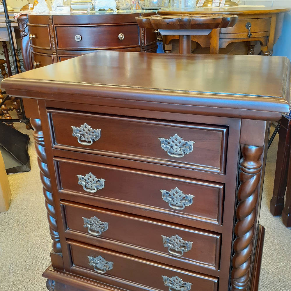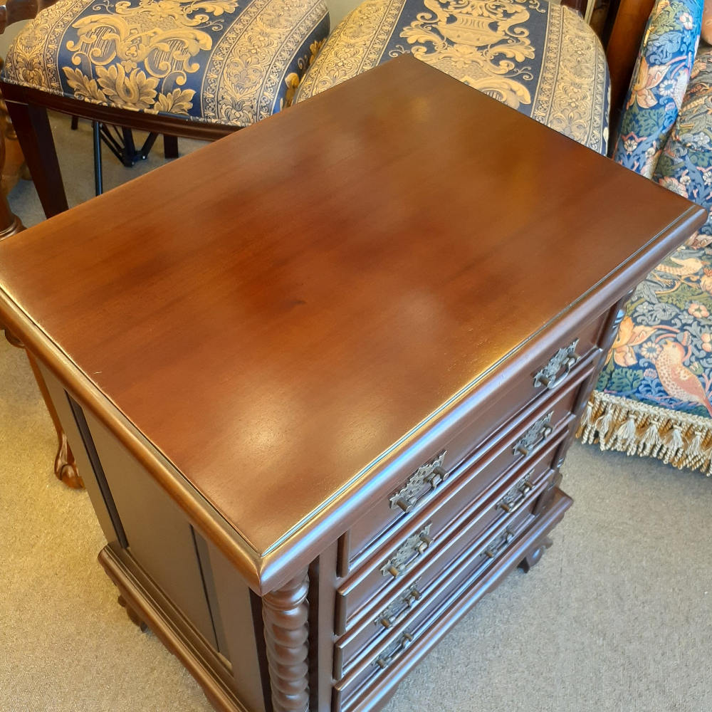 チェスト ナイトスタンドテーブル 4段チェスト ランプテーブル マホガニー家具 アンティーク風家具 アンティーク調 マホガニー無垢材 160002