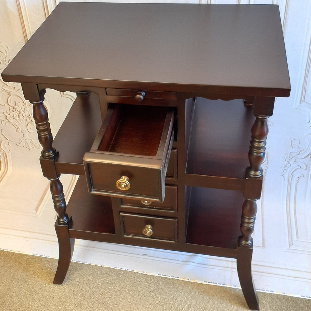 デザインはアンティーク家具レプリカですが、使い勝手の良い棚が付いたオシャレなサービステーブル。