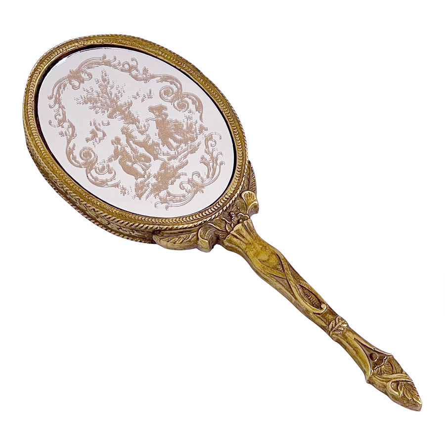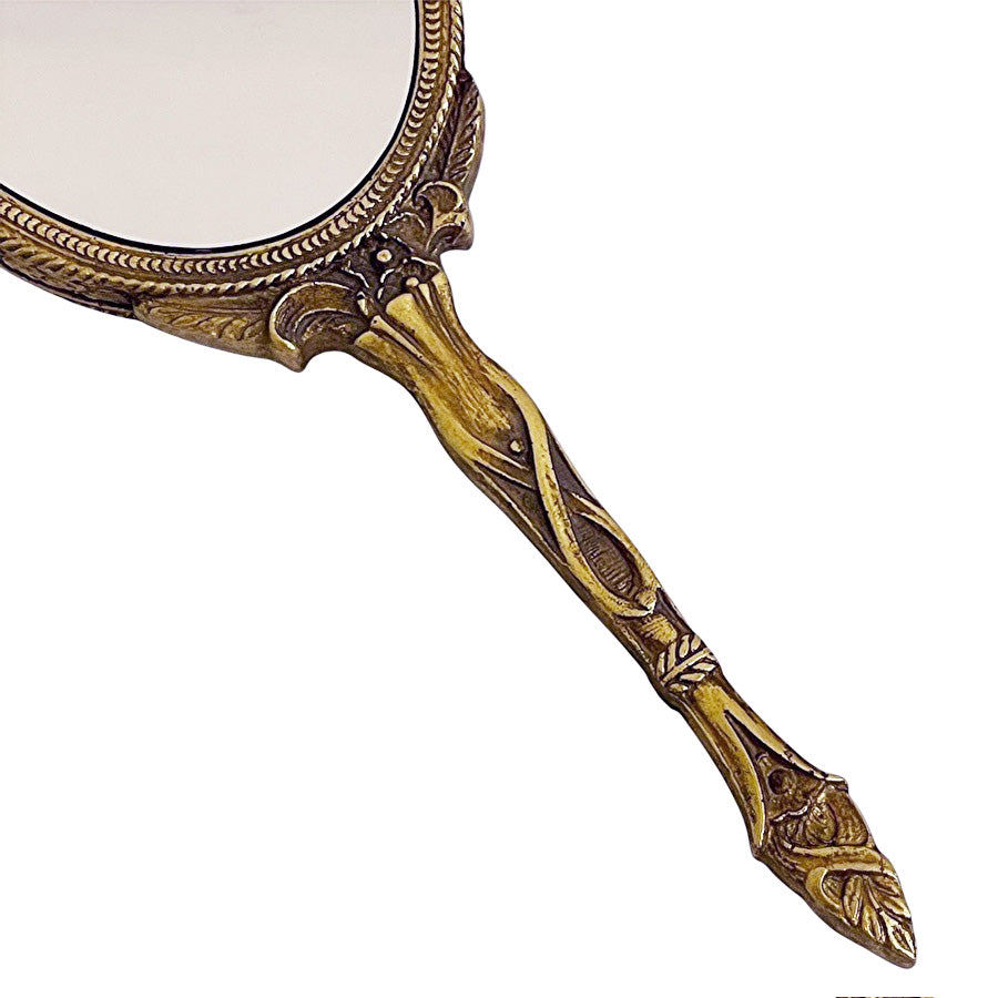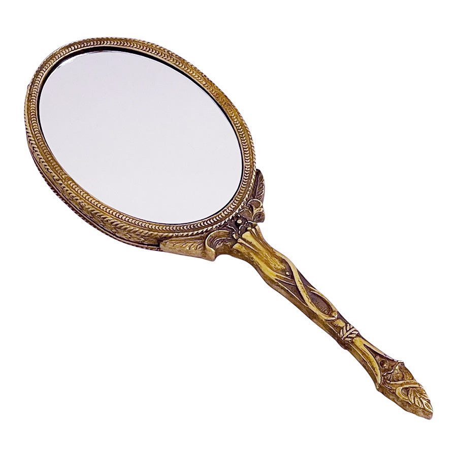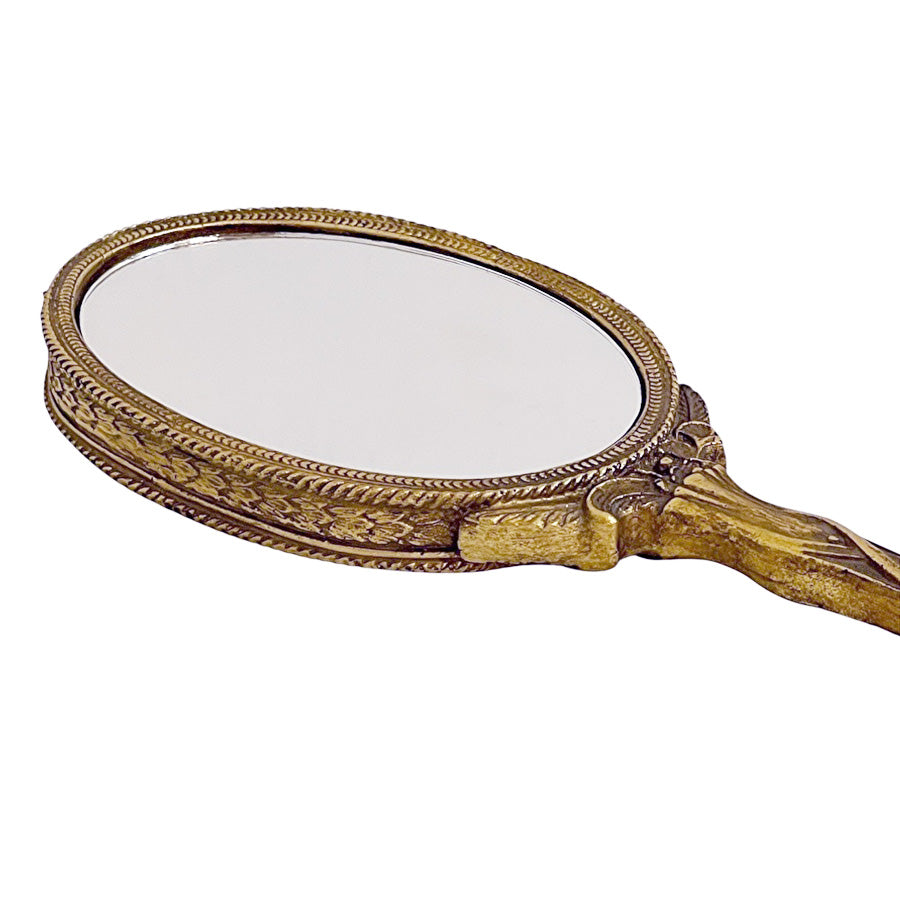 アンティーク仕上げのゴールドのハンドミラー(手鏡)です。