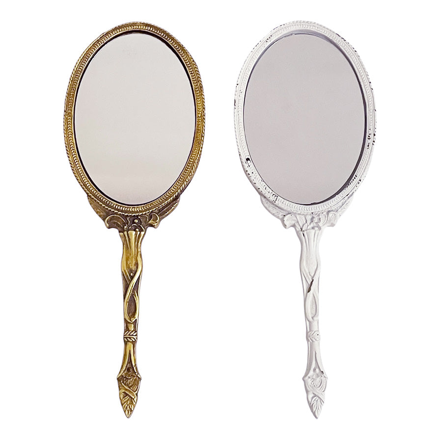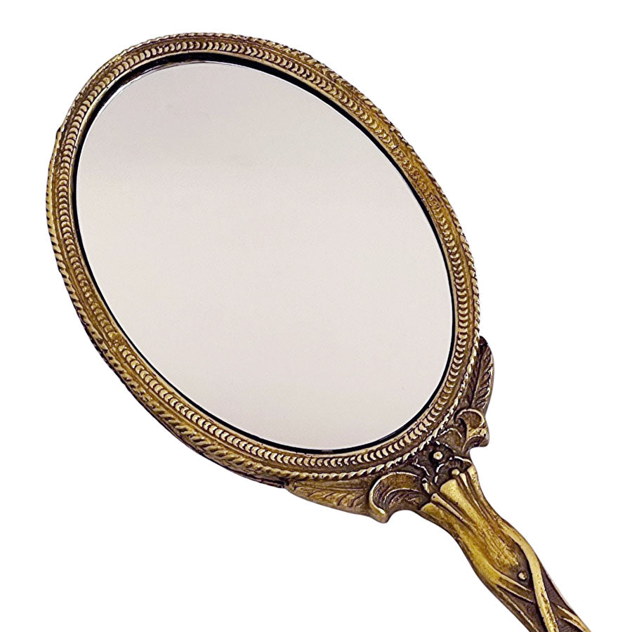 アンティーク仕上げのオーバル型の鏡面が付いたハンドミラー裏側も鏡面です。