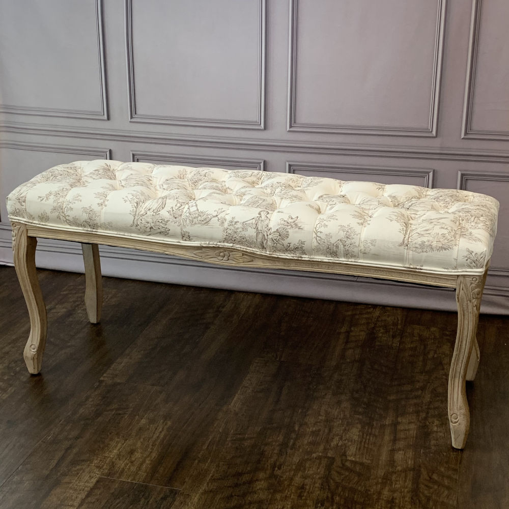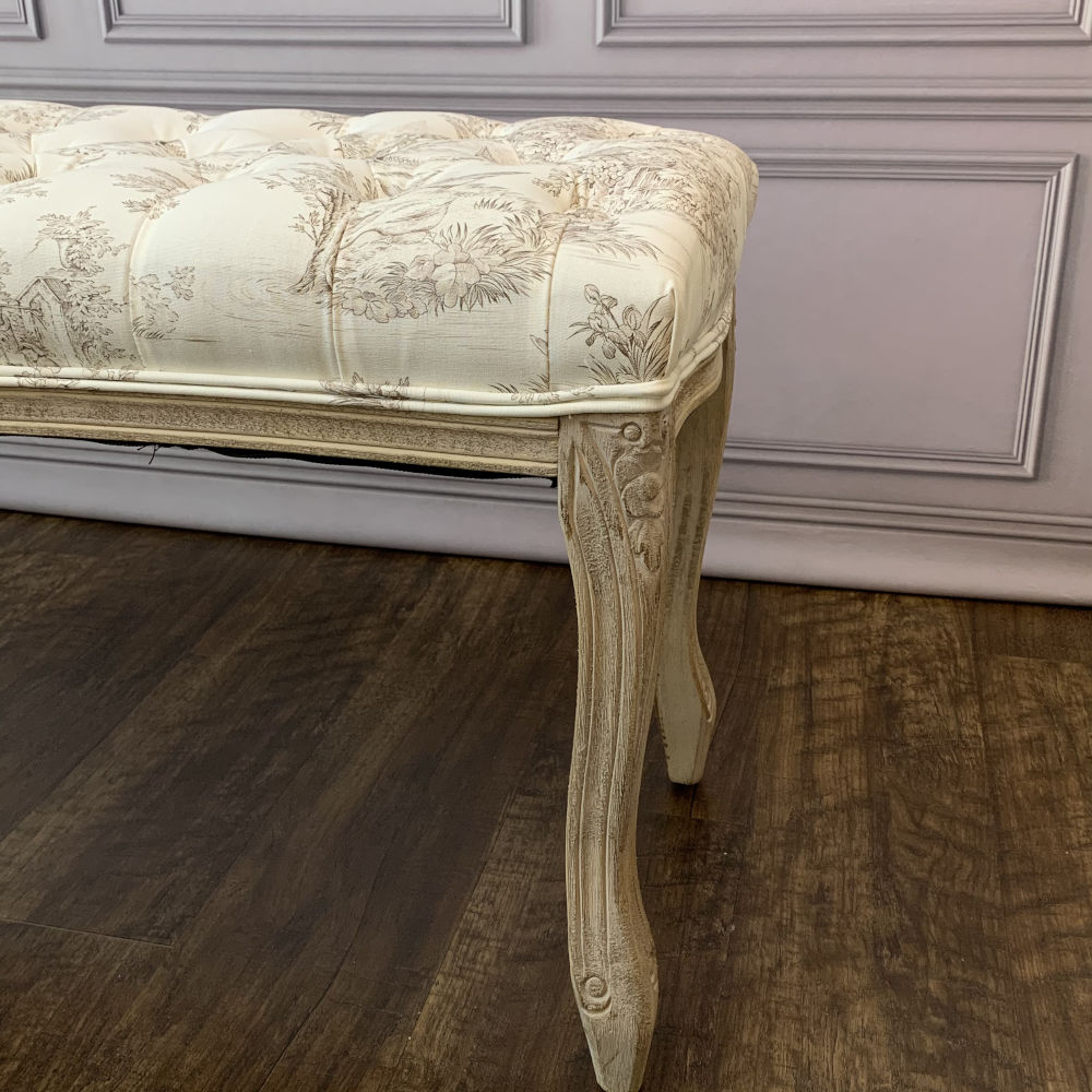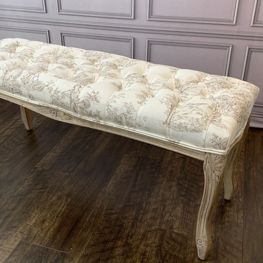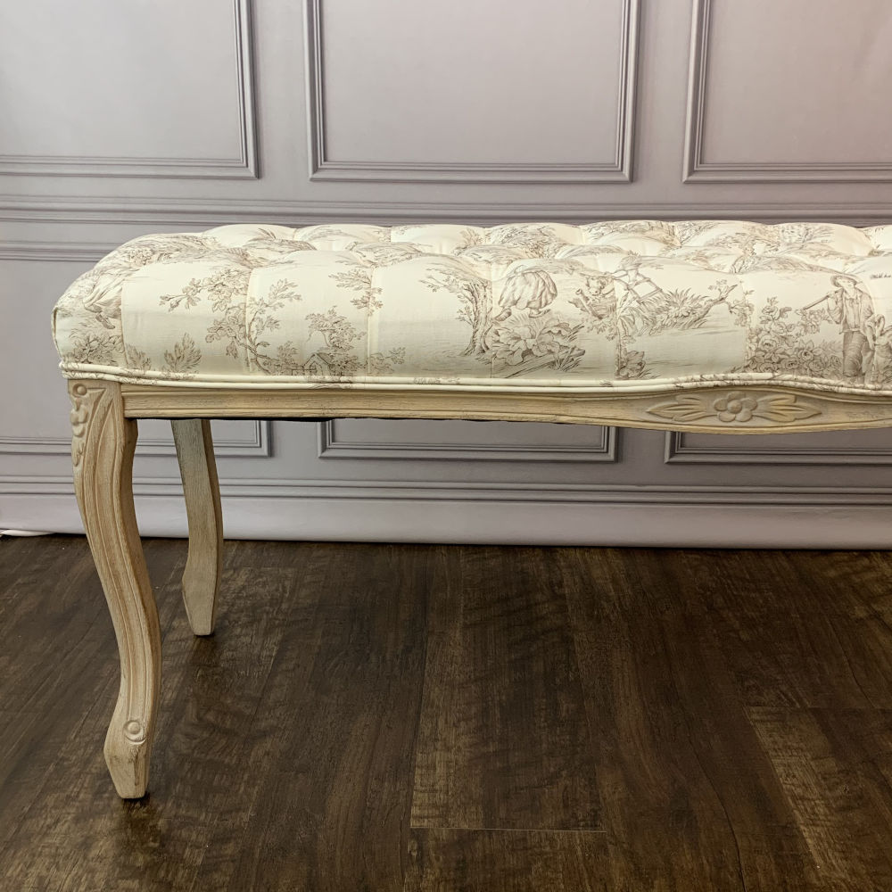ベンチ フランス スツール トワルドジュイ フレンチインテリア 椅子 チェア オフホワイト ベージュ ソファ フランス製生地 送料無料 17701BH-JY02