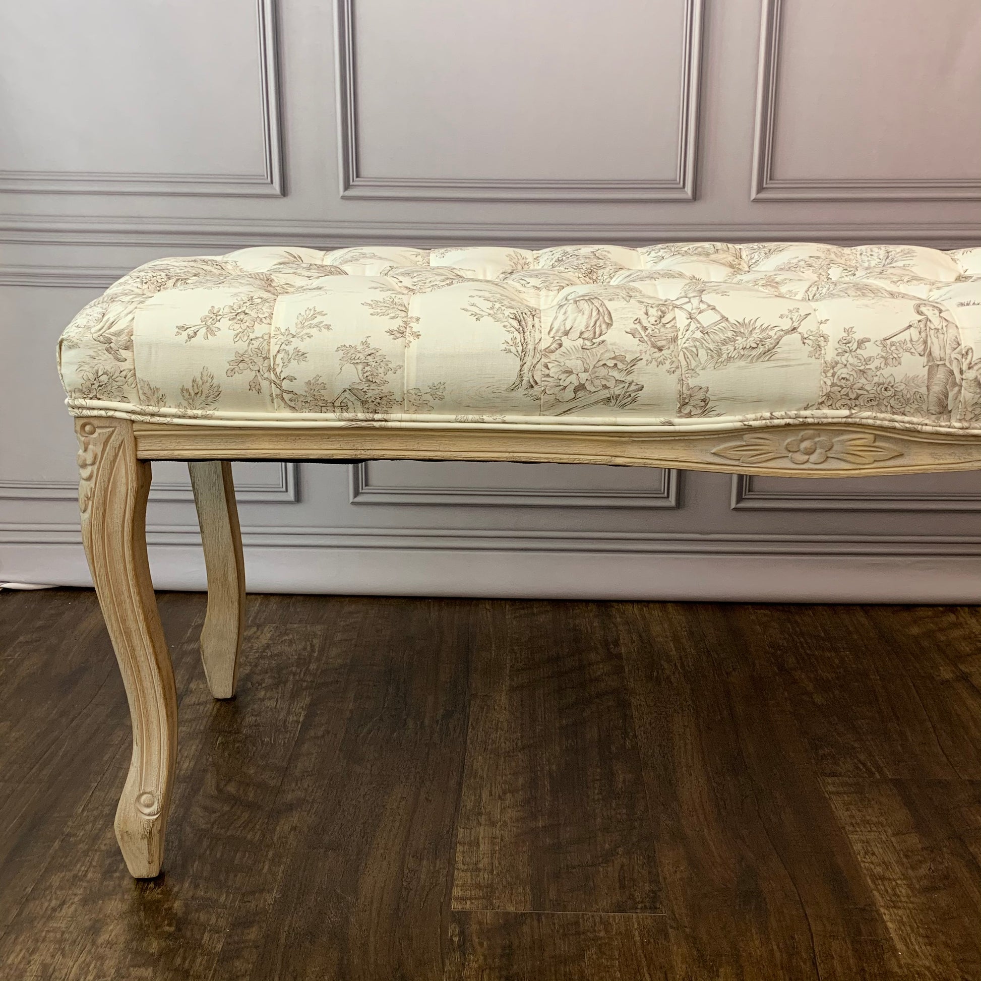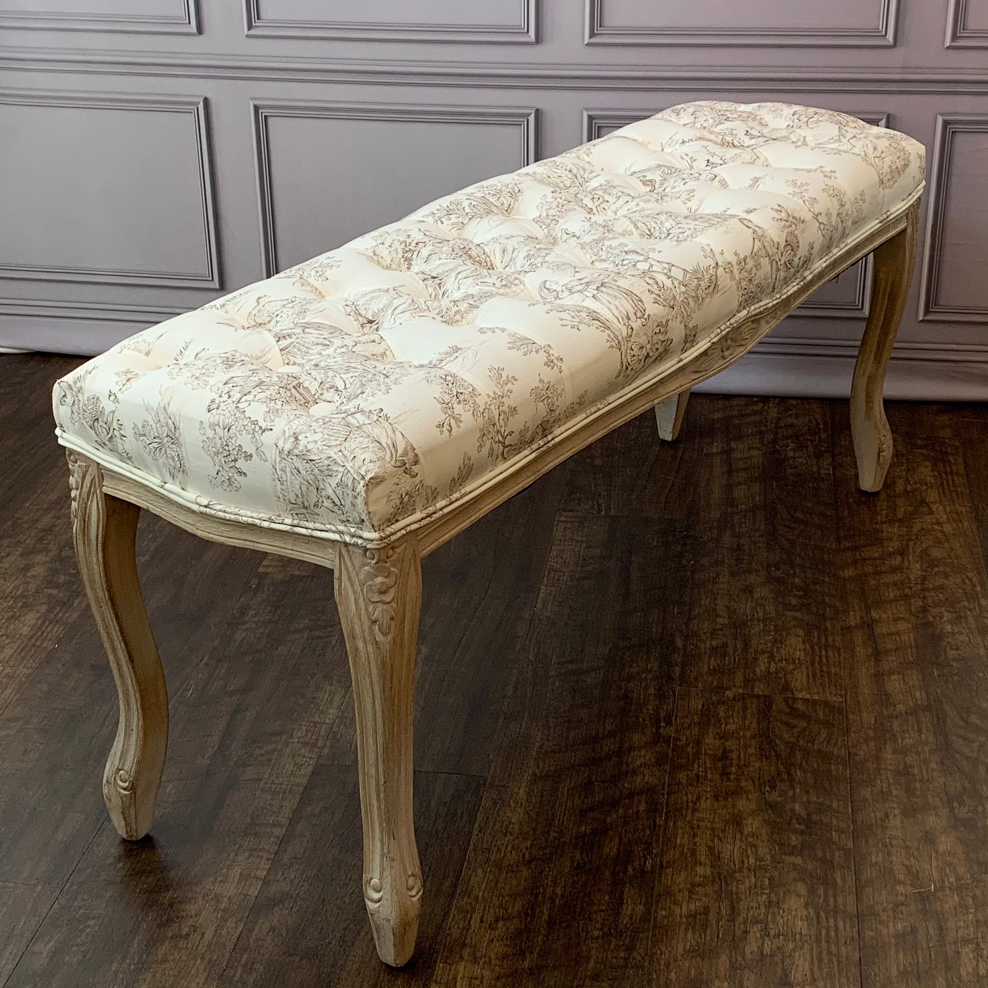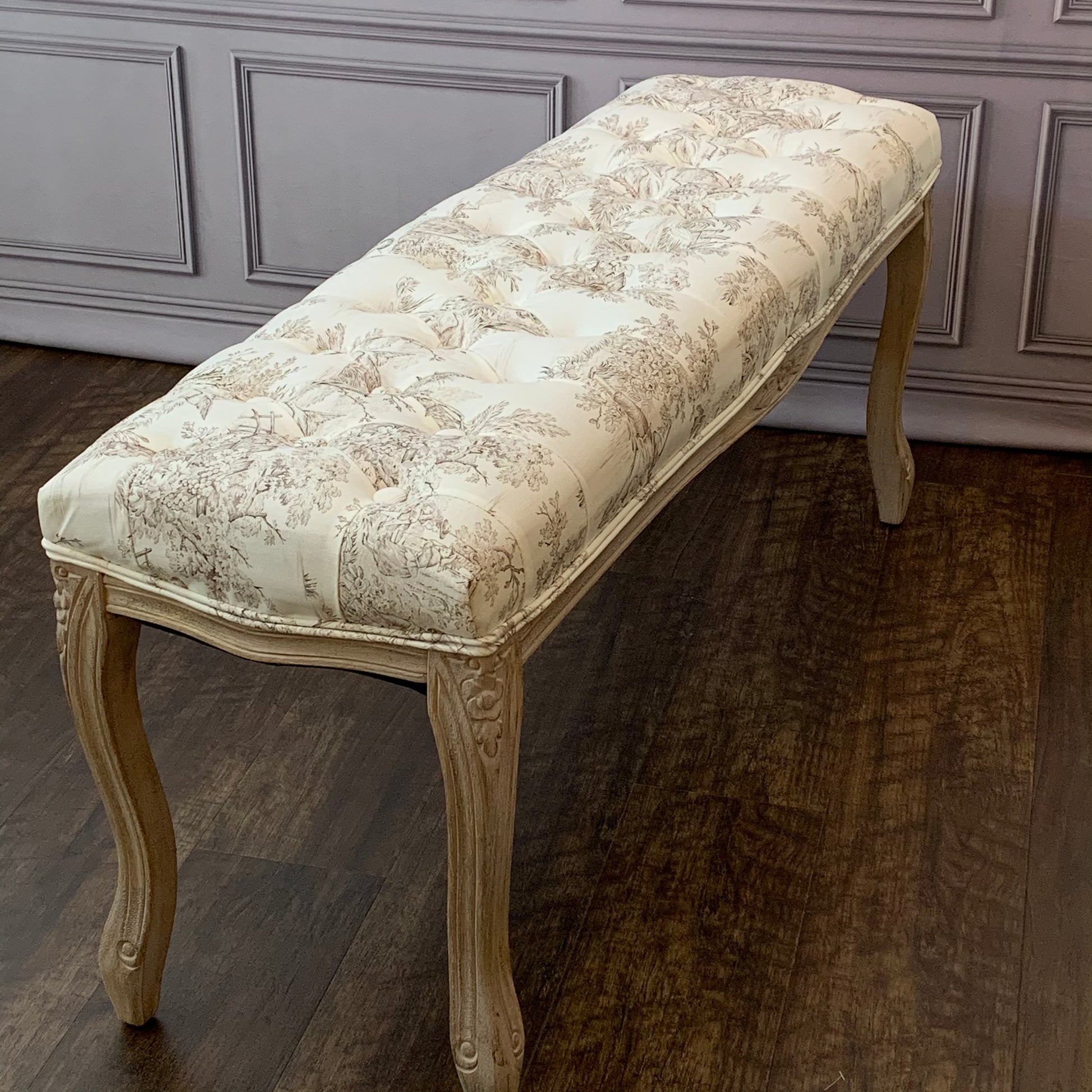 ベンチ フランス スツール トワルドジュイ フレンチインテリア 椅子 チェア オフホワイト ベージュ ソファ フランス製生地 送料無料 17701BH-JY02