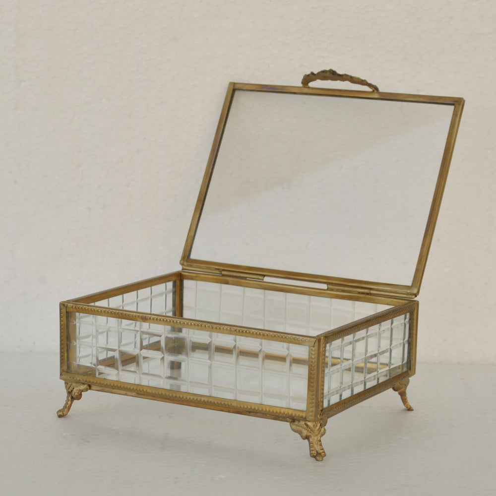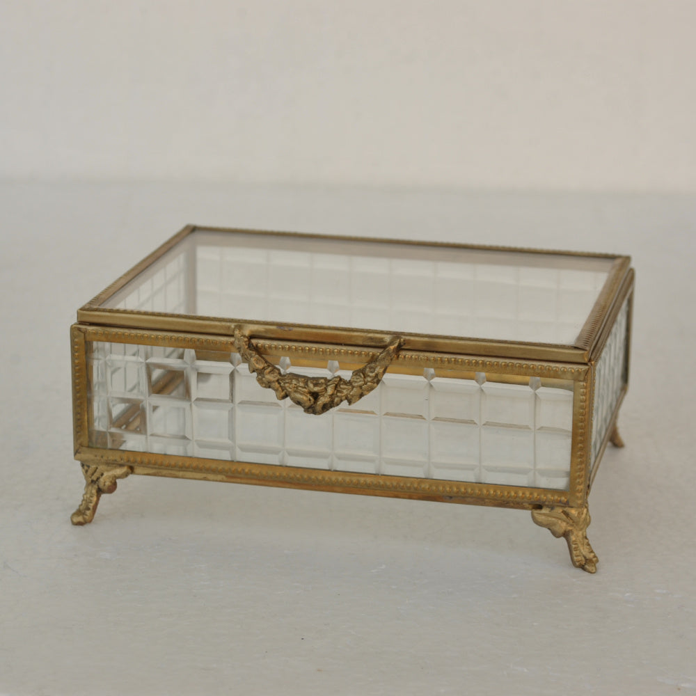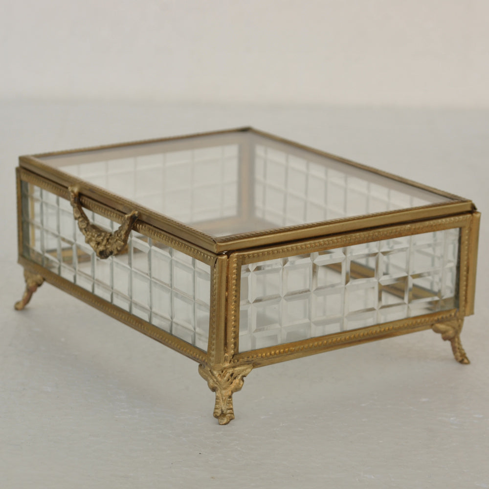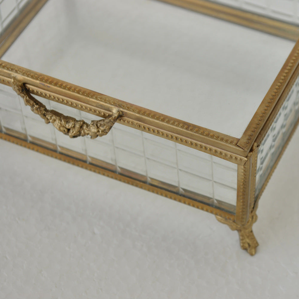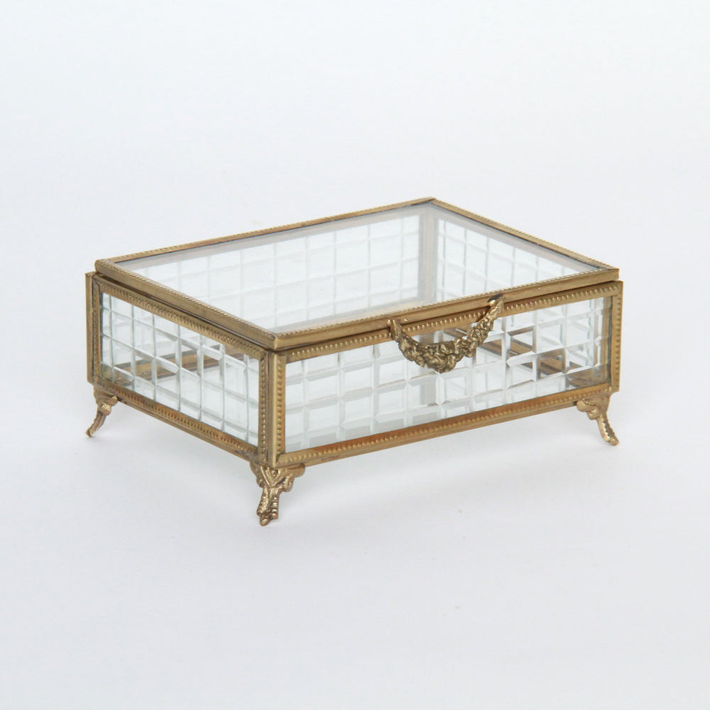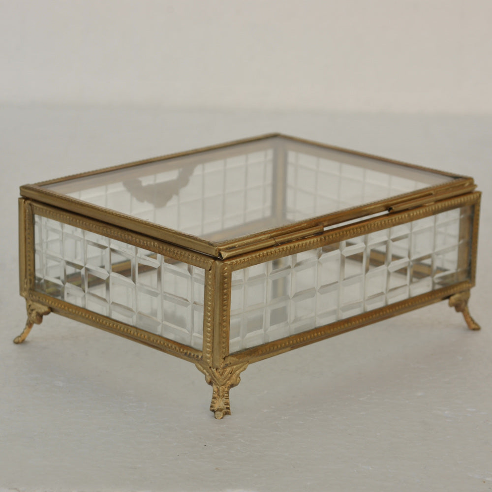 ボックス 蓋付小物入れ ガラスボックス 小物入れ 真鍮製 チェッカーガラスボックス ジュエリーケース アクセサリーボックス アンティーク風ガラス 7347098