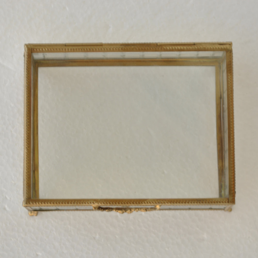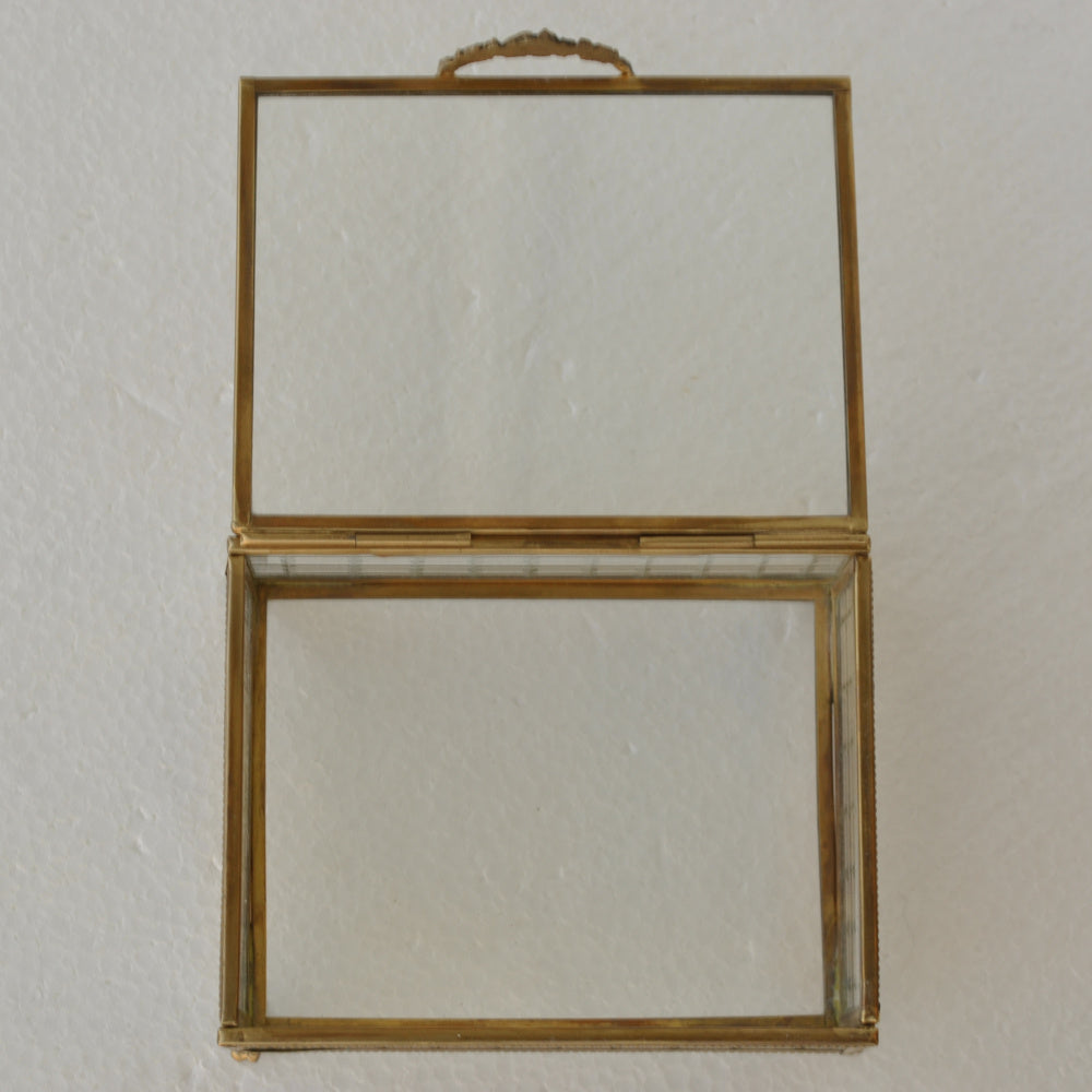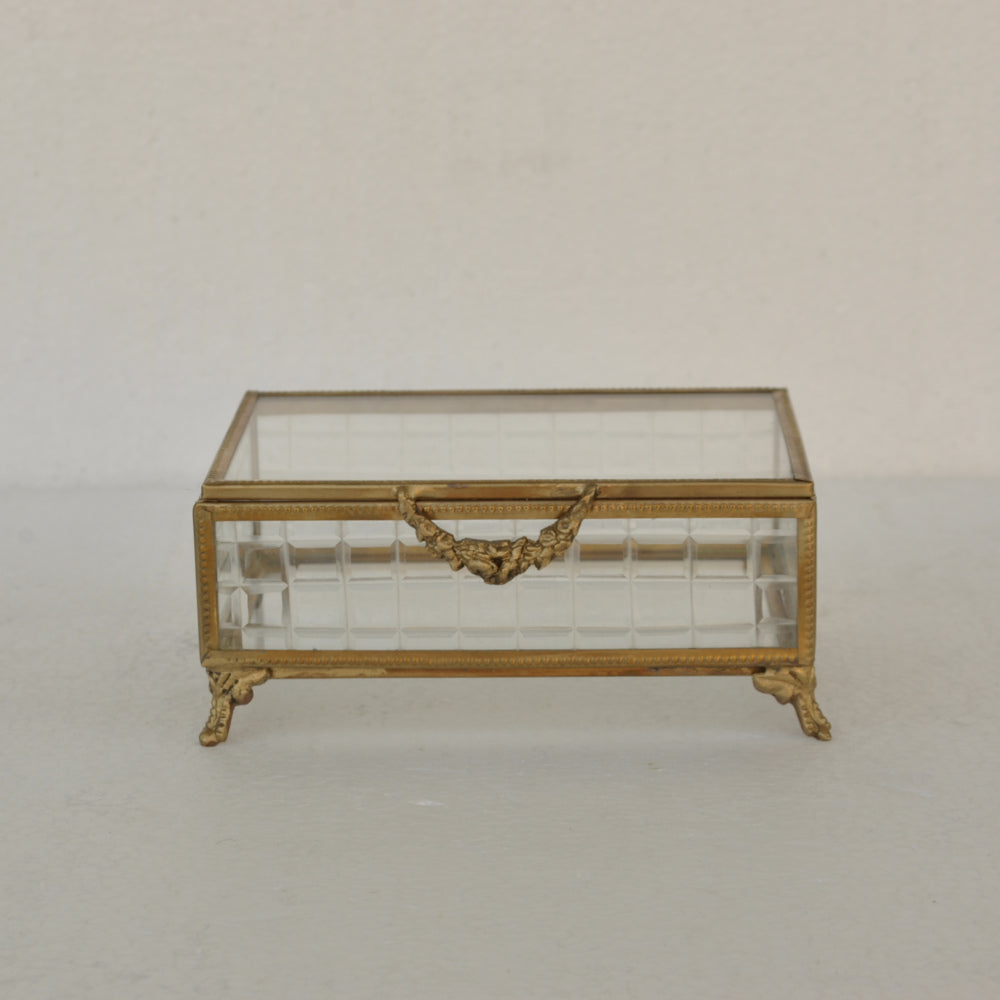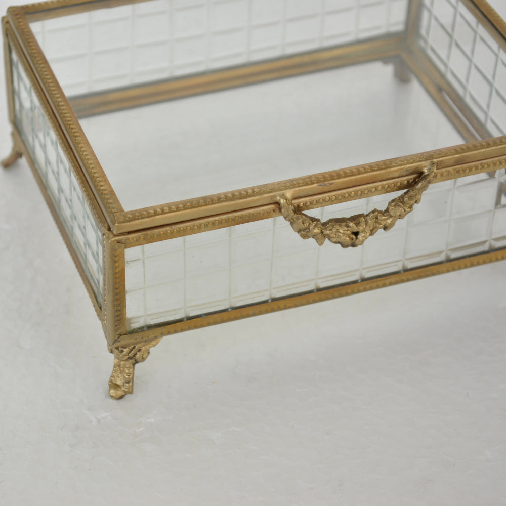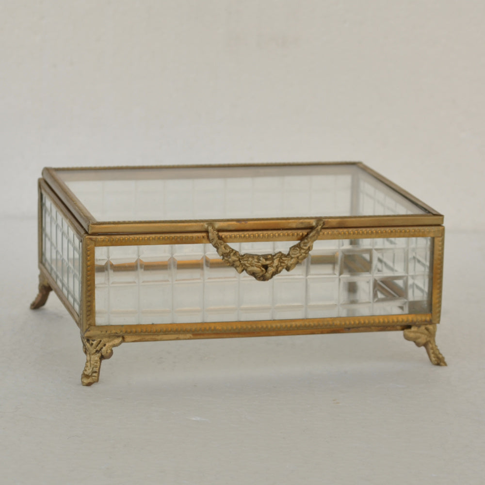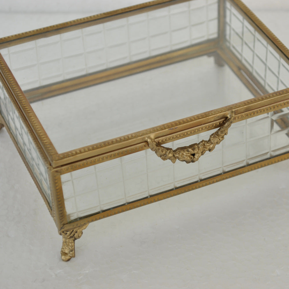 ボックス 蓋付小物入れ ガラスボックス 小物入れ 真鍮製 チェッカーガラスボックス ジュエリーケース アクセサリーボックス アンティーク風ガラス 7347098