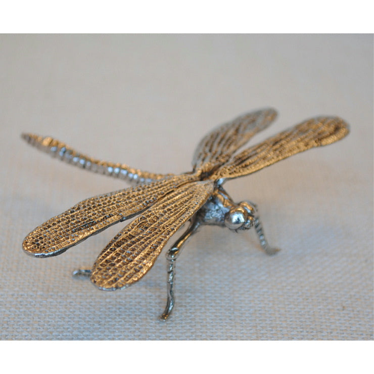 真鍮銀(シルバー)の素材感やの特徴を十分に生かした伝統的職人技術で仕上げらたアンティークシルバーの蜻蛉(トンボ)のフィギアです。