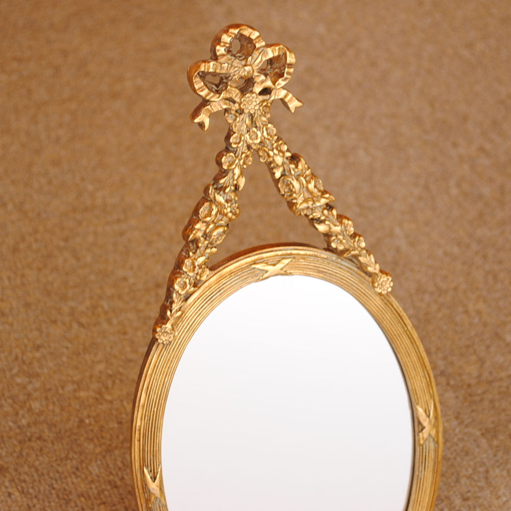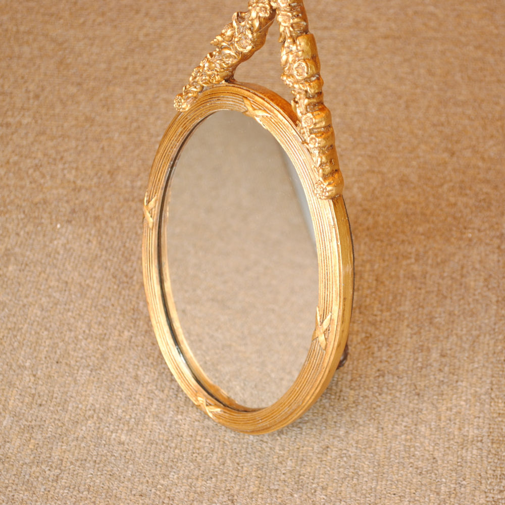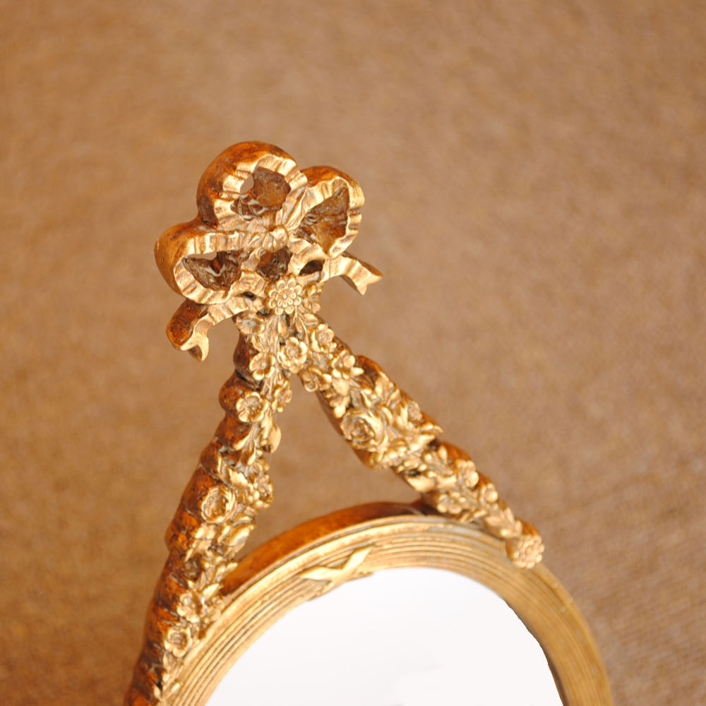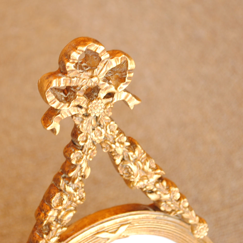 壁掛け鏡 リボン デコレーションミラー ゴールドミラー 鏡 かわいい 壁掛け アンティーク風 フレンチ風 フランス風 883019 GD