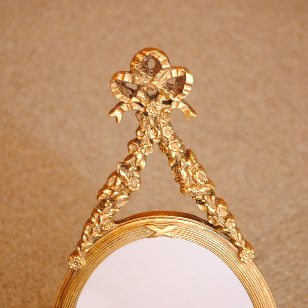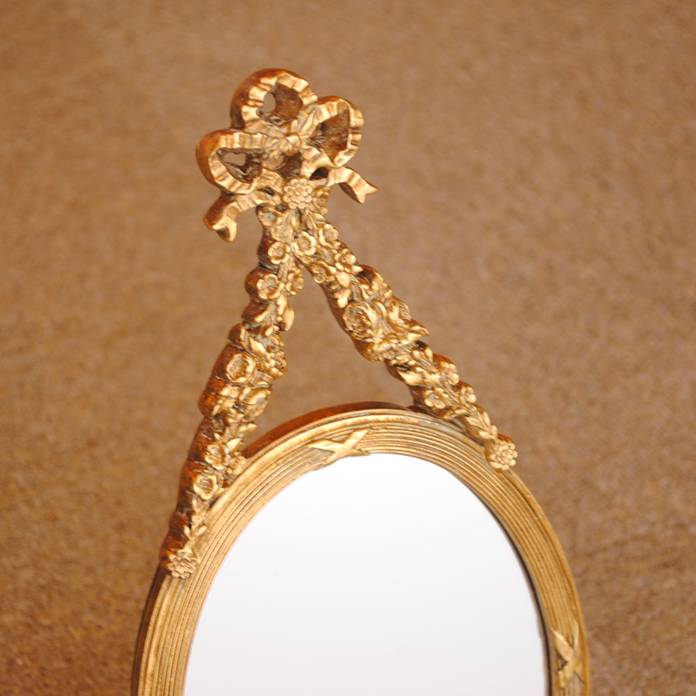 リボンとお花の飾りが可愛いアンティーク調でのおしゃれなデザインのウォールミラー。