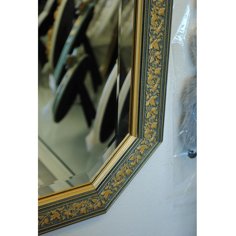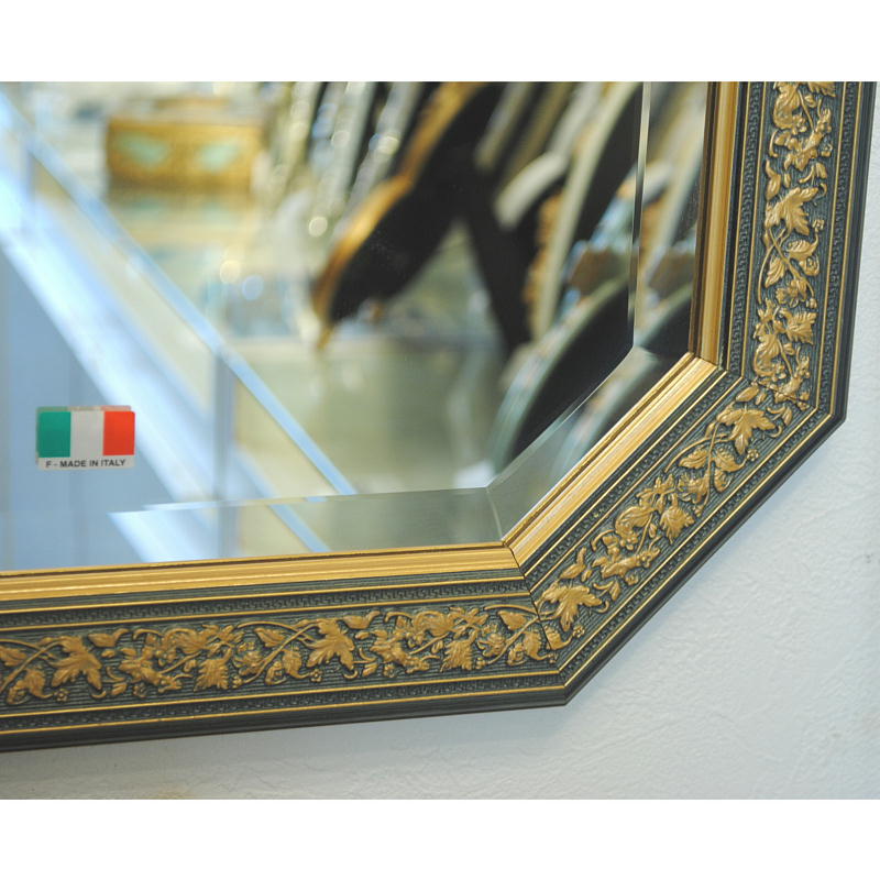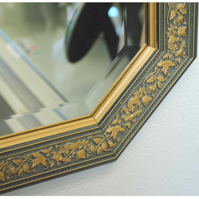 姿見 ウォールミラー おしゃれ 鏡 壁掛け 八角形 木製 イタリアンブルー 緑 ミラー OT アンティーク イタリア製 ベルトーチ BERTOZZI 808407