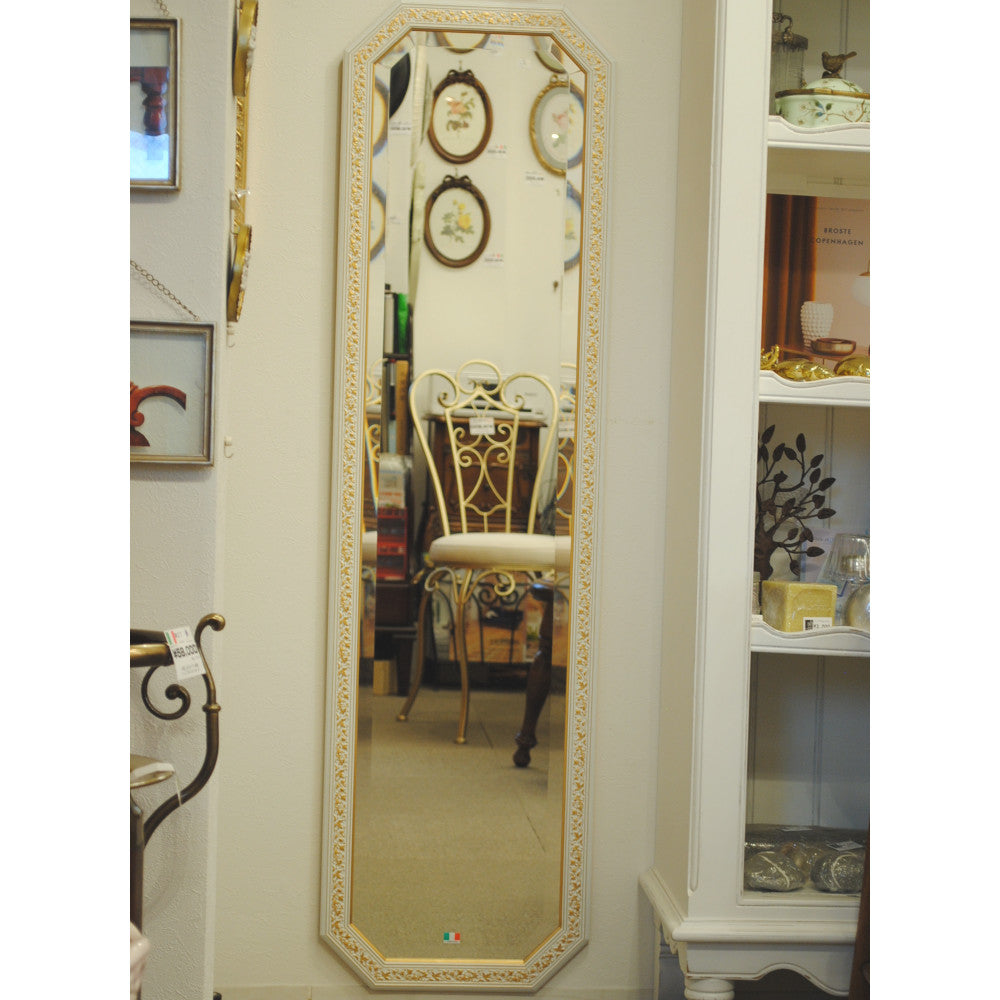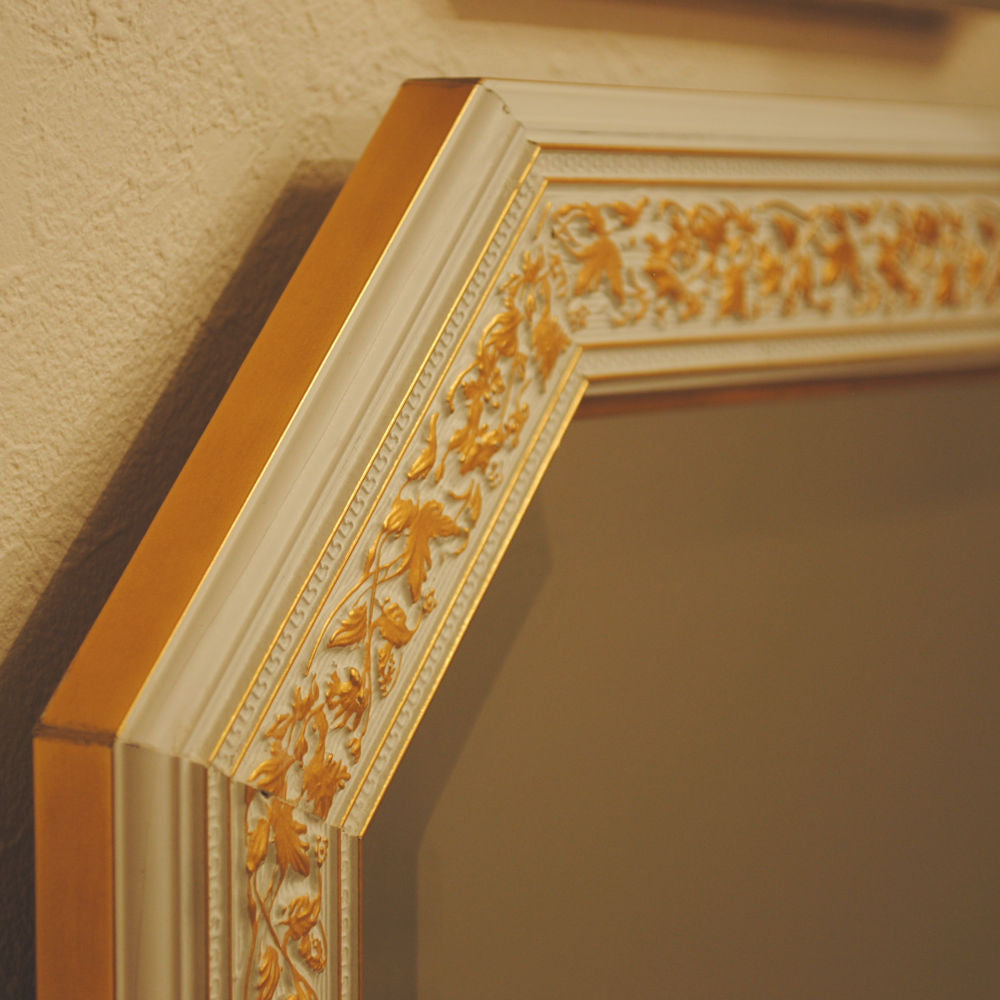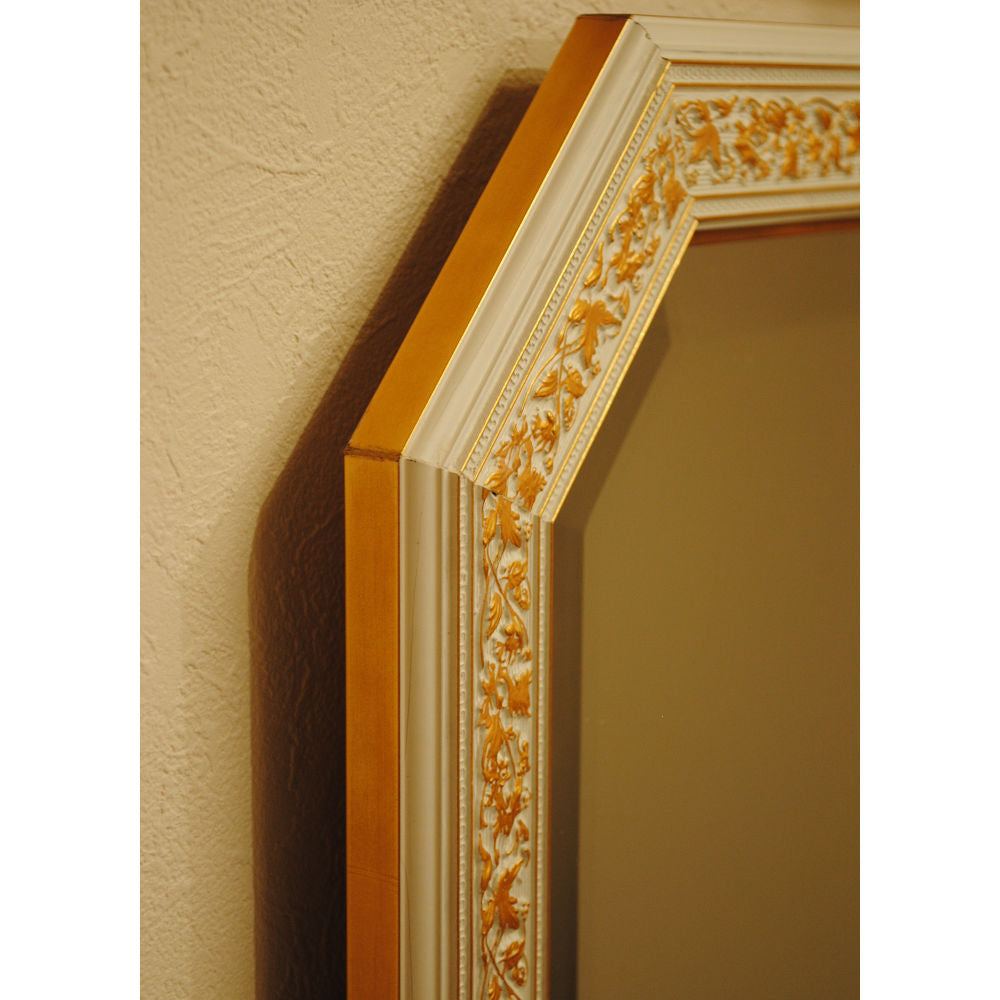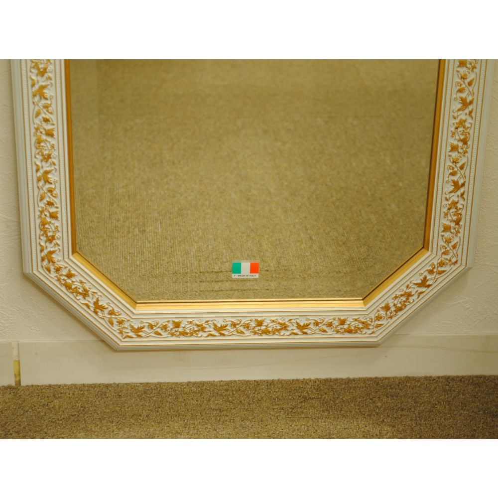 姿見 ウォールミラー おしゃれ 鏡 壁掛け 八角形 木製 白 ホワイト ゴールド ミラー OT アンティーク イタリア製 ベルトーチ BERTOZZI 808837