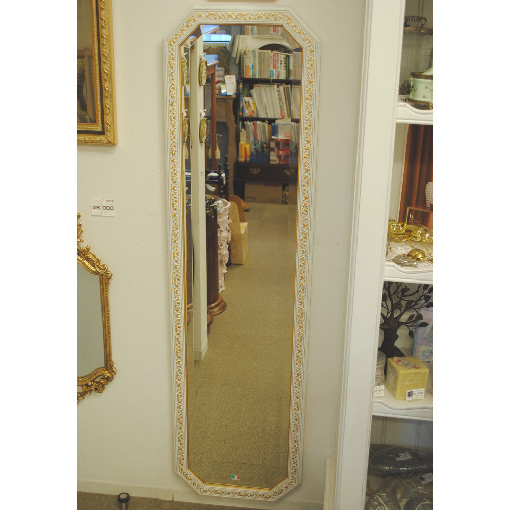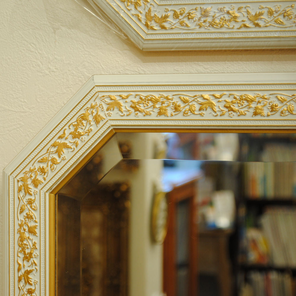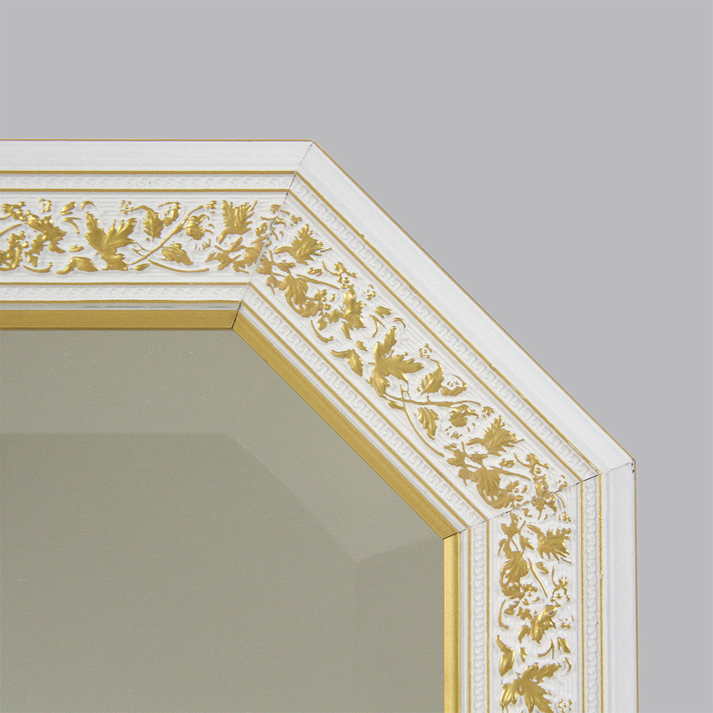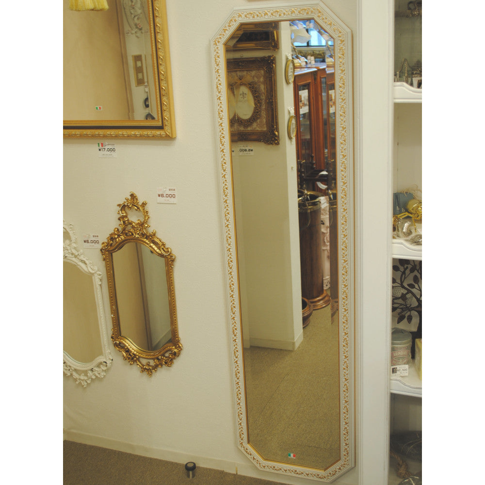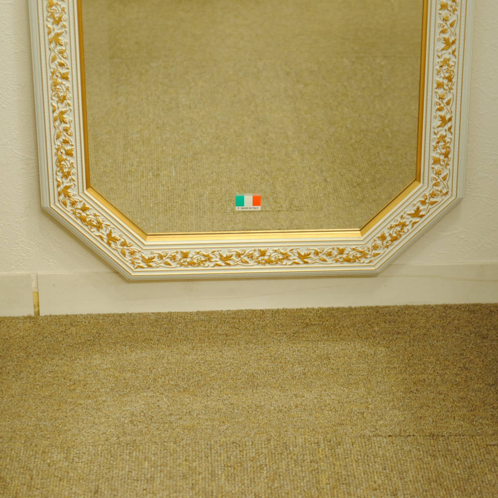 姿見 ウォールミラー おしゃれ 鏡 壁掛け 八角形 木製 白 ホワイト ゴールド ミラー OT アンティーク イタリア製 ベルトーチ BERTOZZI 808837