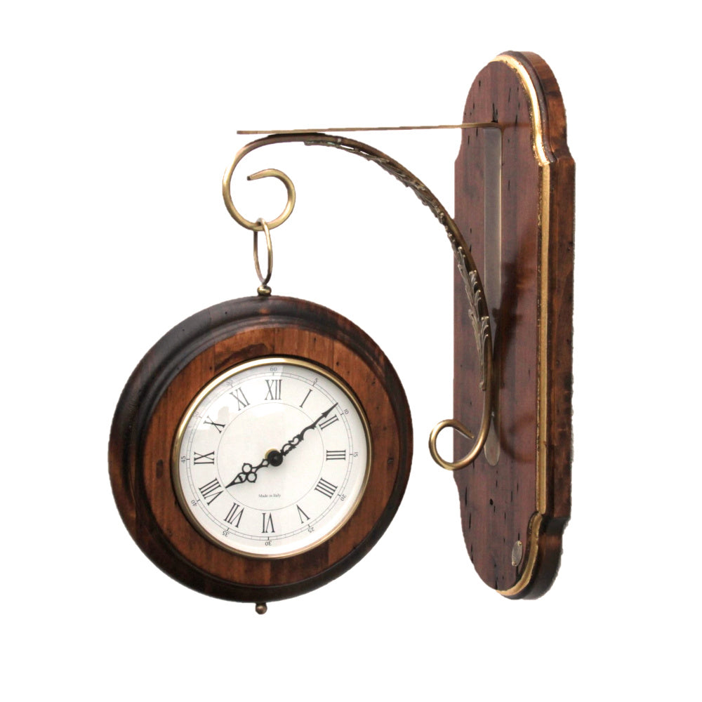 クラッシックな駅舎のホームに掛っていた両面時計を再現してデザインされたカパーニの古木と真鍮製掛け時計です。