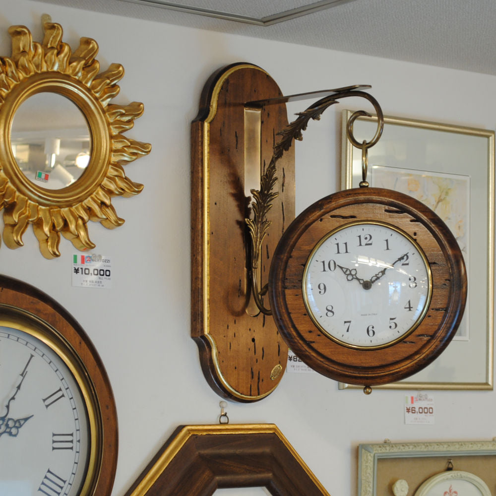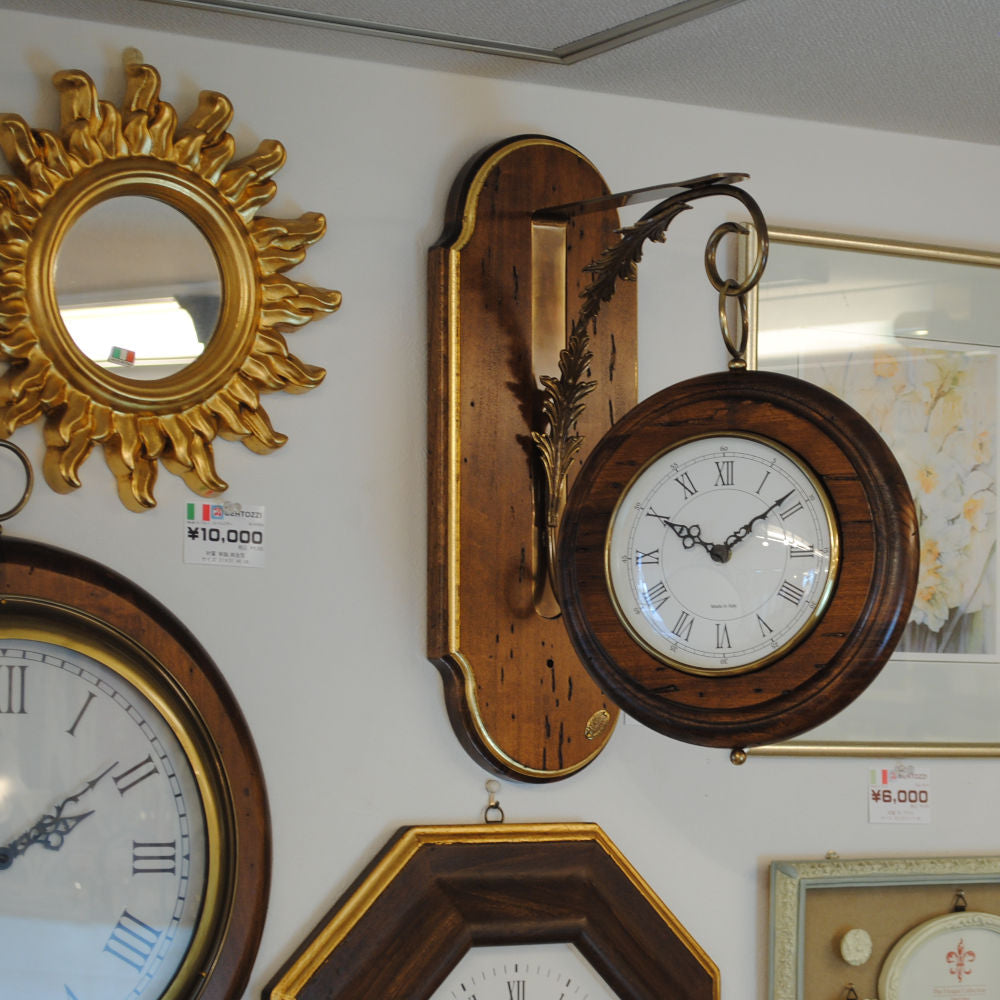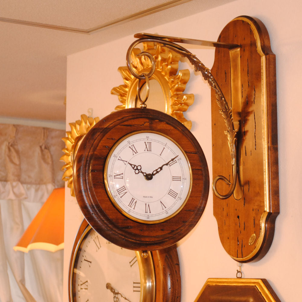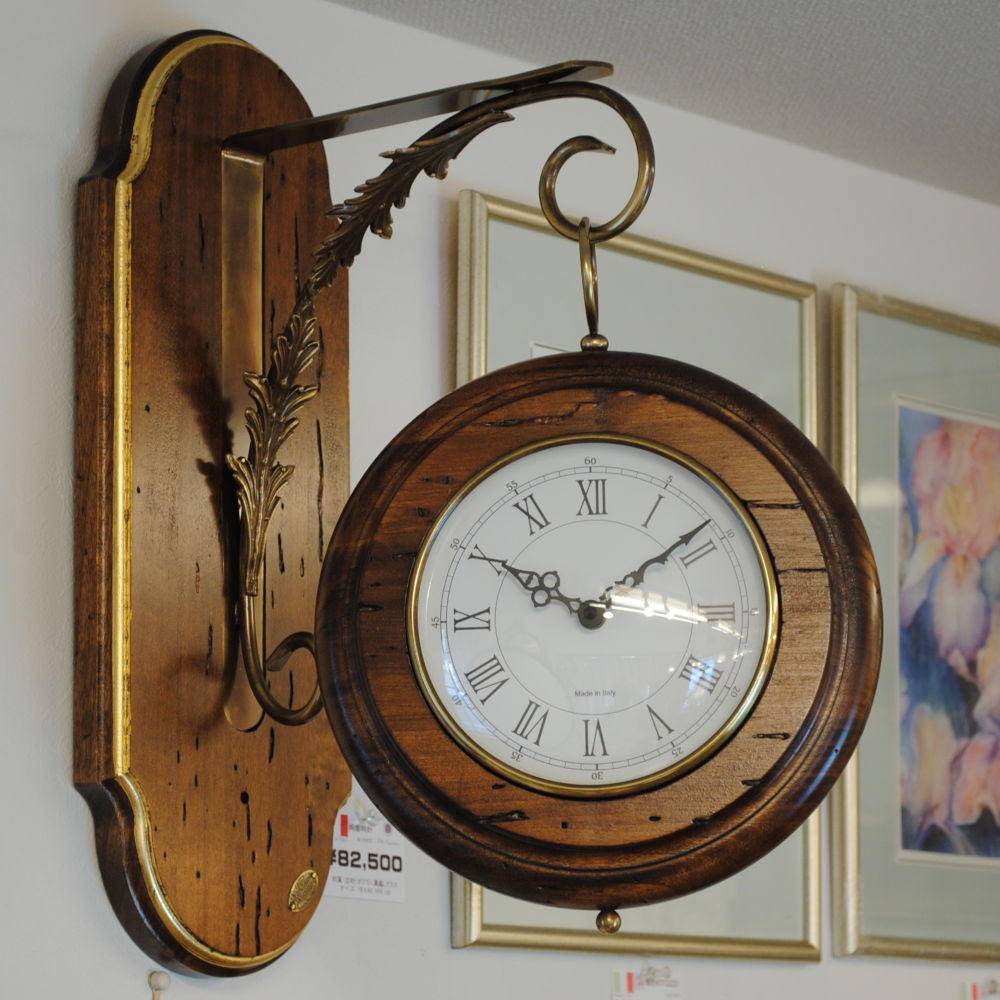 時計 オシャレ 壁掛け時計 両面文字盤 両面時計 駅舎時計 ステーションクロック 古木 イタリア製 掛時計 真鍮 丸 ウォールクロック カパーニ CAPANNI 301222