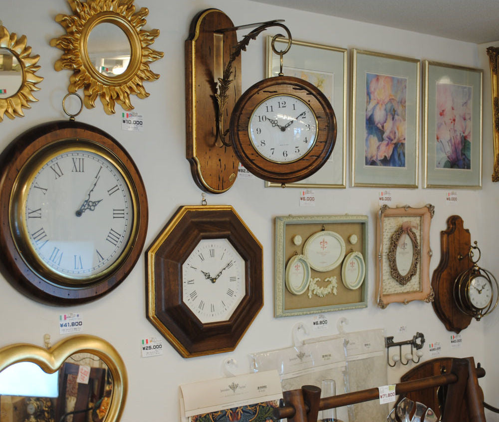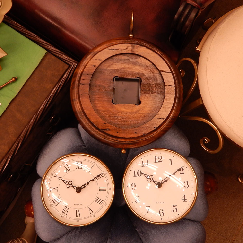 ポプラの古木と真鍮の枠に文字盤とガラス風防のクラシックインテリアスタイル。